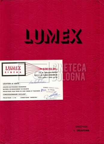 – Un tariffario per il noleggio di materiale della ‘Lumex Cinema’, con allegato un biglietto da visita (1976);