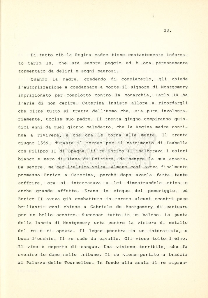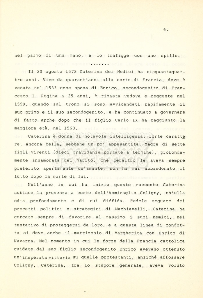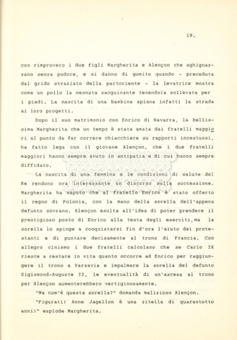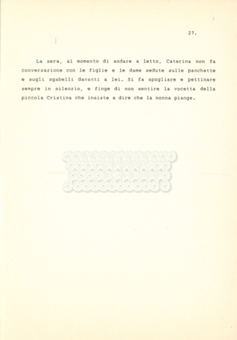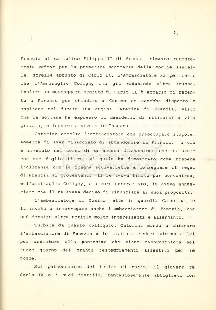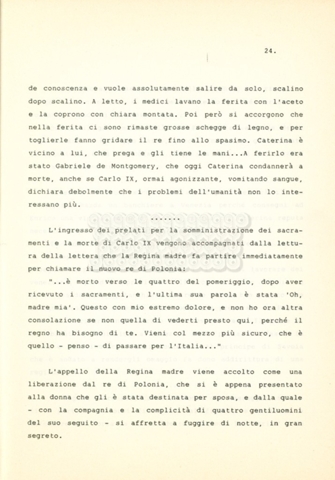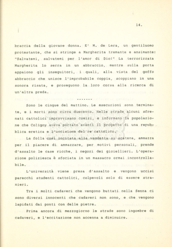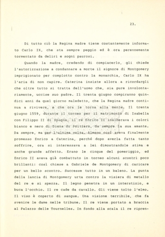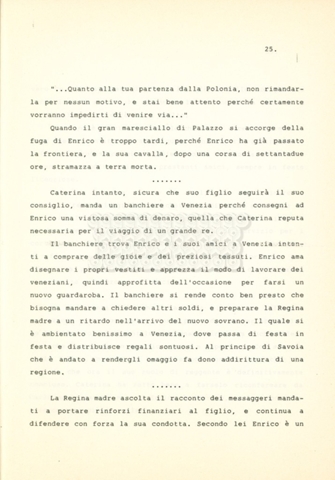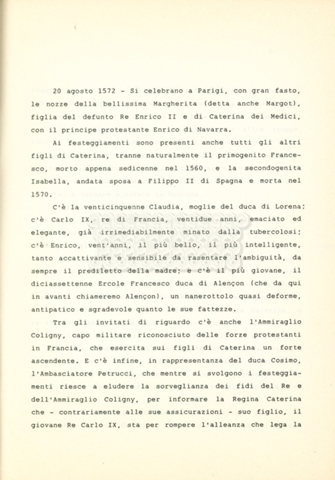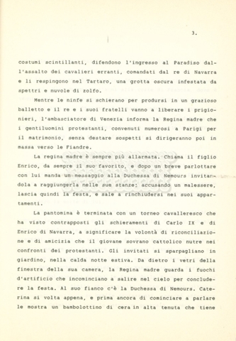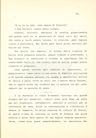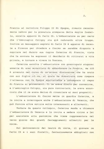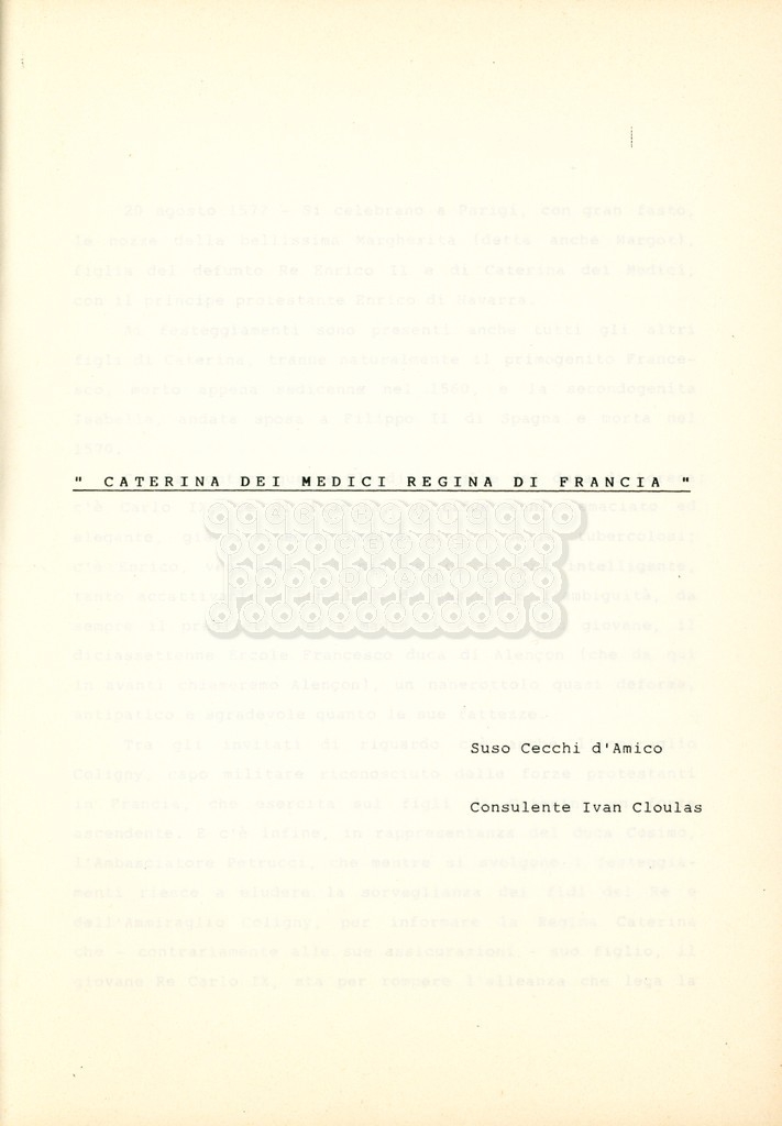 Torna alla banca dati “Caterina dei Medici regina di Francia” Documento storico Archivio Suso Cecchi d’Amico / Film e serie televisive non realizzate / Storie dei Medici Ambiti e contenuto Trattasi del soggetto per il quarto episodio della serie. L’autrice è Suso Cecchi d’Amico e viene segnalata la consulenza di Ivan Coulas. Informazioni archivistiche Cronologia: [1979 – 1989] Numero di ordinamento definitivo: 179 Numero di ordinamento provvisorio: 2.150 Descrizione fisica: volume pp. 27 Immagini digitalizzate Documenti correlati Vai alla banca dati DOCUMENTO STORICO “Storie dei Medici – primo episodio” DOCUMENTO STORICO “Lorenzo dei Medici detto il Magnifico” DOCUMENTO STORICO “Leone X e Clemente VII, papi dei Medici” DOCUMENTO STORICO “Cosimo I dei Medici” DOCUMENTO STORICO “Cosimo Medici” DOCUMENTO STORICO “Maria dei Medici regina di Francia” DOCUMENTO STORICO “Cosimo III e gli ultimi Medici”