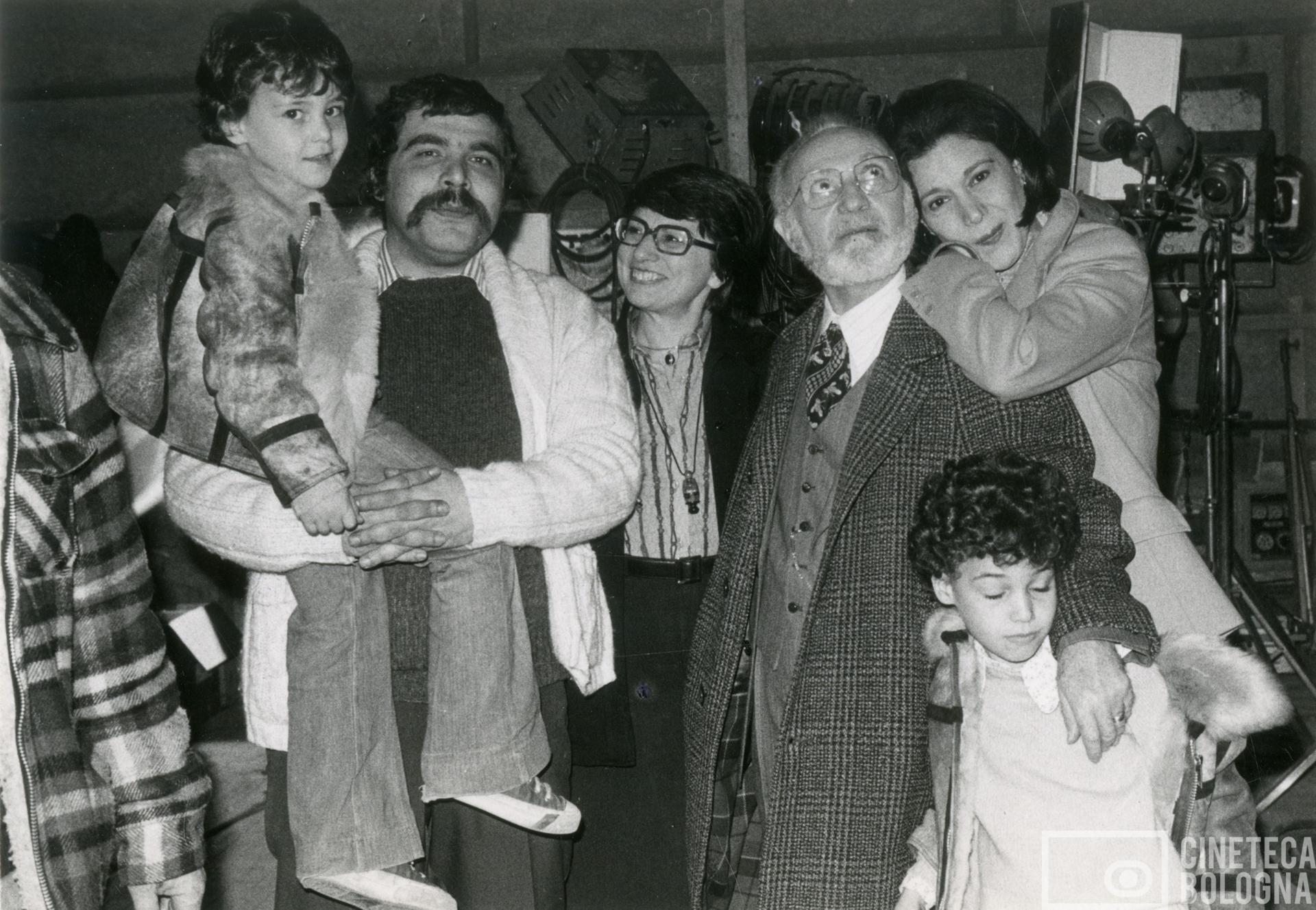 Cinecittà. George Pan Cosmatos, Mara Blasetti, Lee Strasberg, Anna Strasberg con i loro figli durante le riprese del film Cassandra Crossing