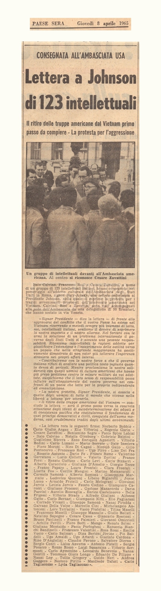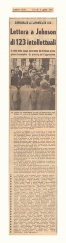 – Articoli dedicati alla lettera di protesta firmata da 123 intellettuali italiani contro l’intervento militare americano in Vietnam;
