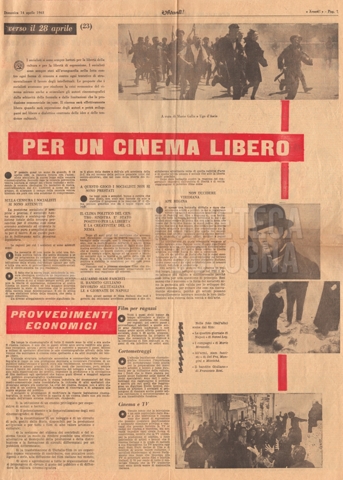 – “Questione cinema”, a. I, 5 gennaio 1968, n. 2.