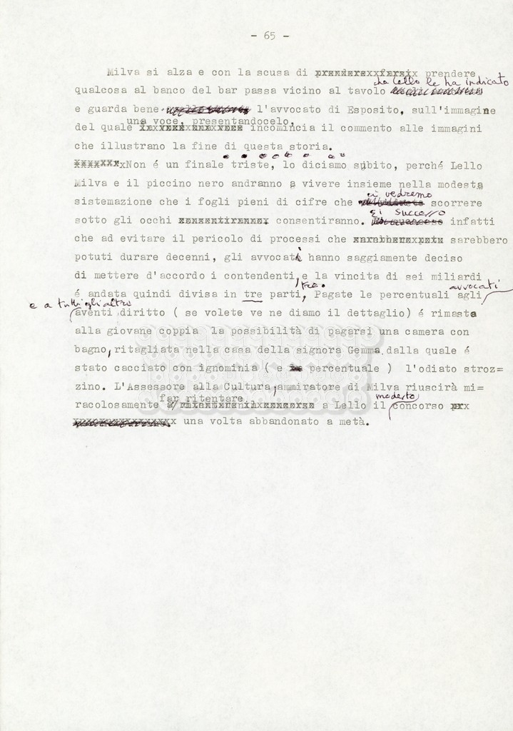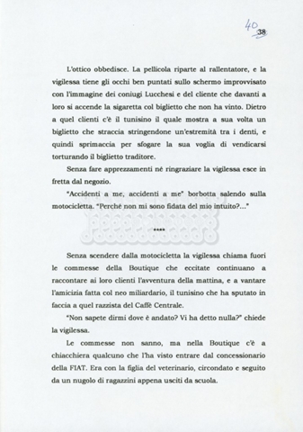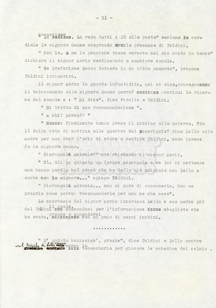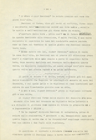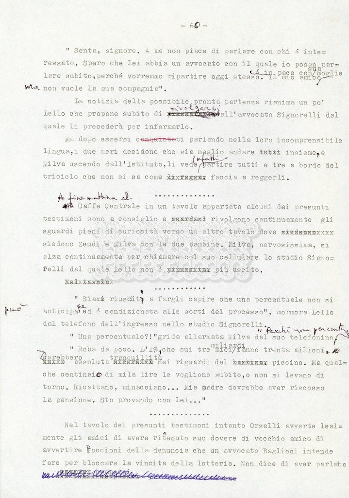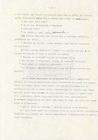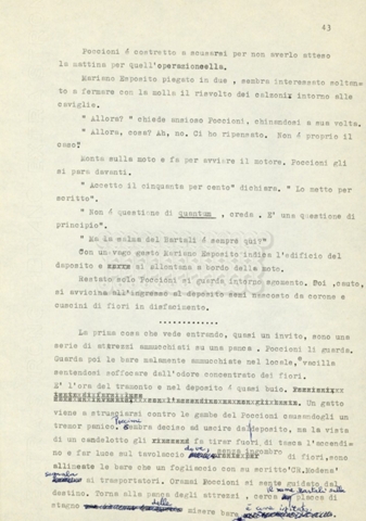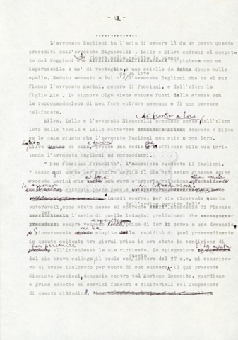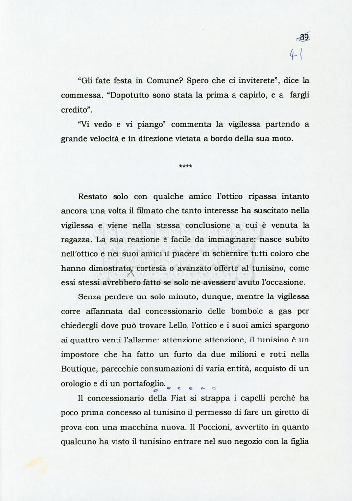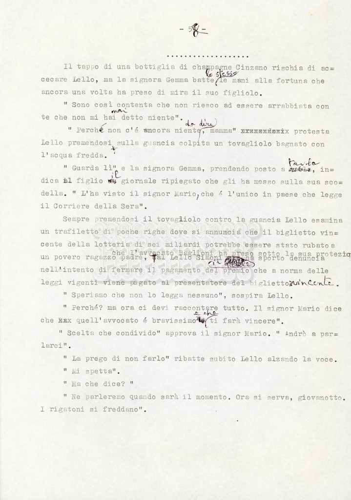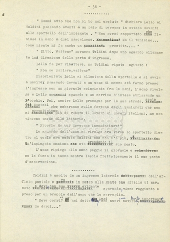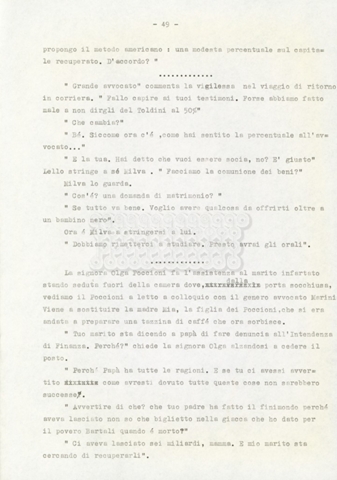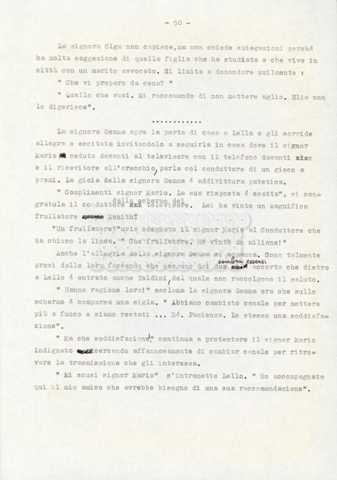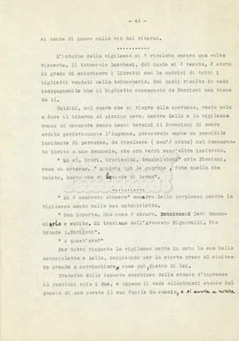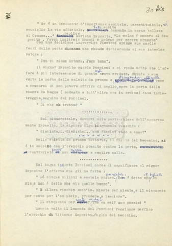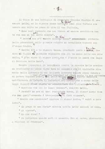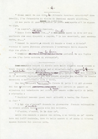 Trattasi di un soggetto di Leo Benvenuti, Suso Cecchi d’Amico, Piero De Bernardi e Mario Monicelli. Il soggetto è incompleto poiché sono presenti solo le pp. 30-65, con moltissime correzioni mss. La copia non riporta il titolo, ma è riconducibile alla miniserie televisiva in due puntate Come quando fuori piove (2000).
