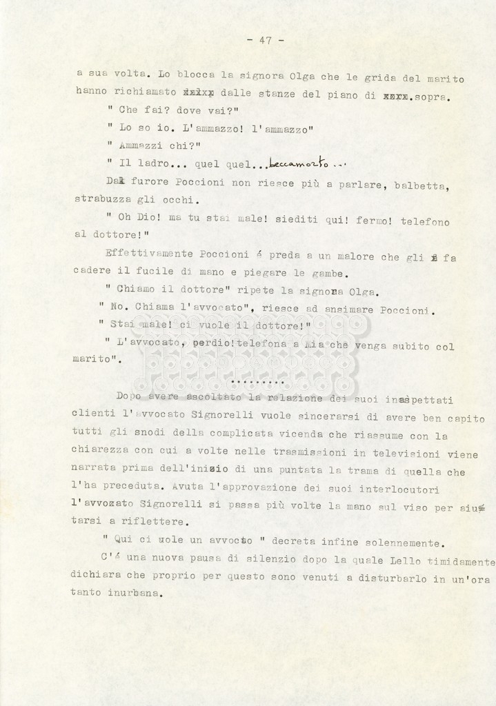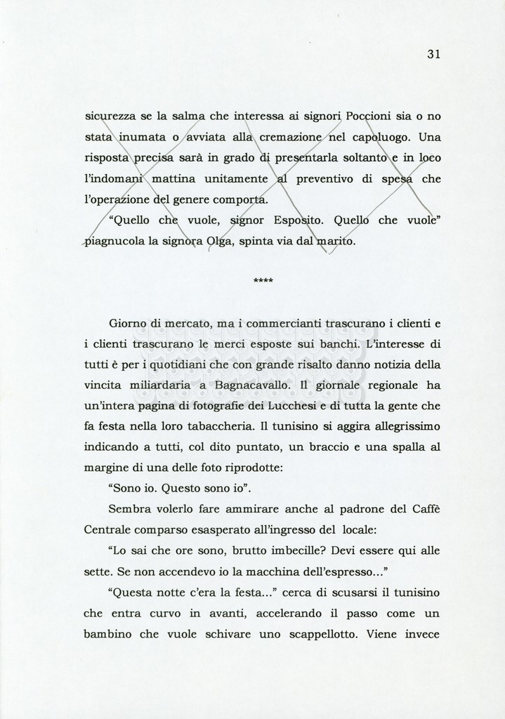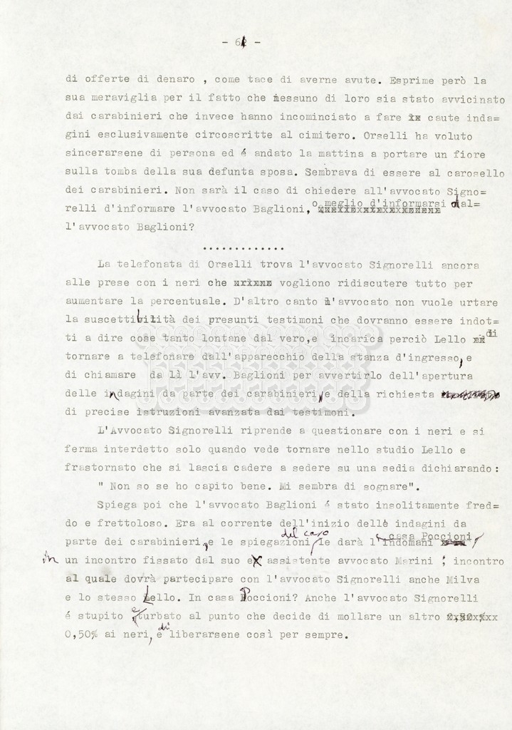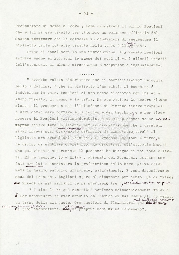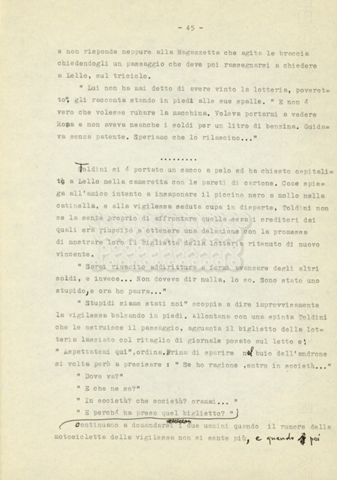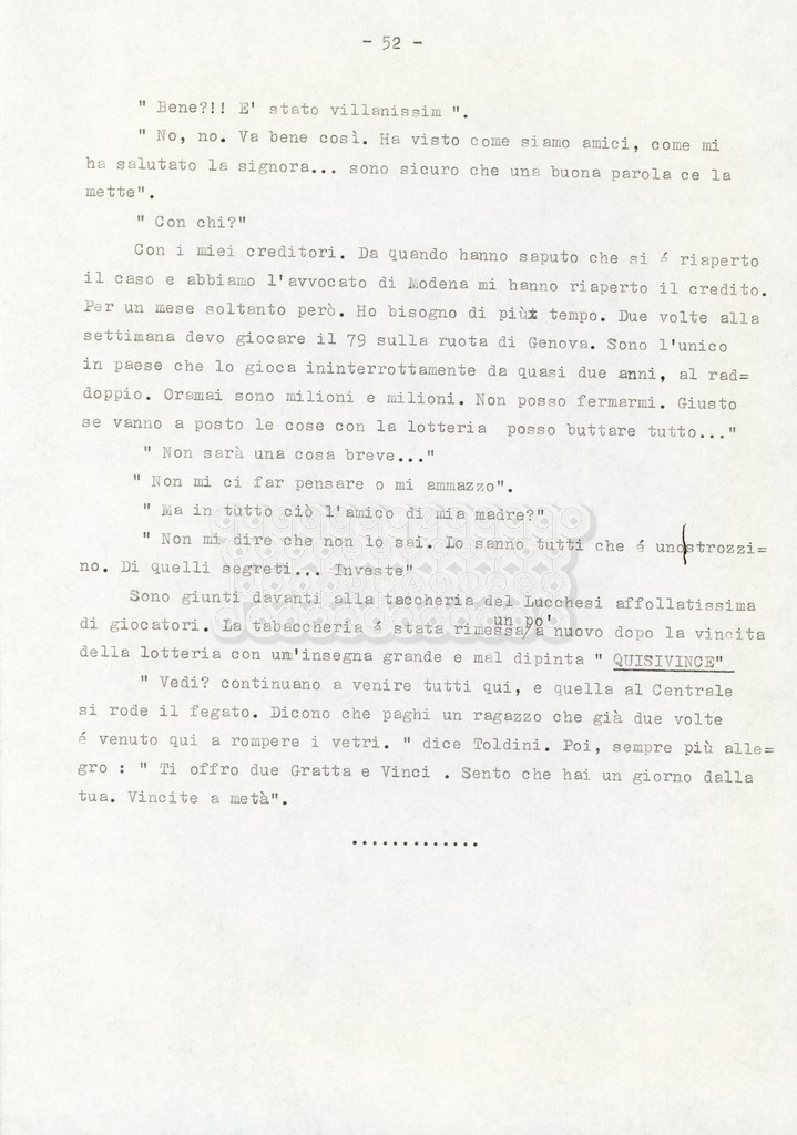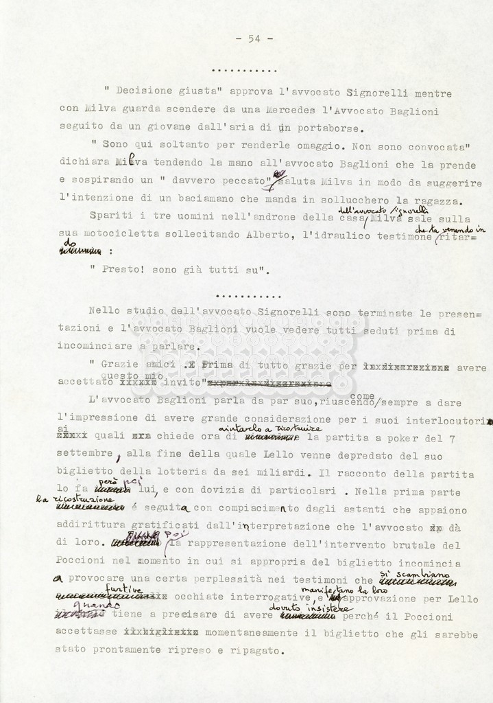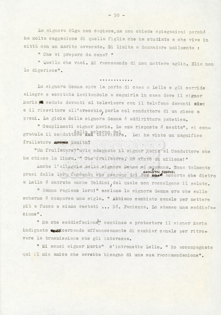 Trattasi di un soggetto di Leo Benvenuti, Suso Cecchi d’Amico, Piero De Bernardi e Mario Monicelli. Il soggetto è incompleto poiché sono presenti solo le pp. 30-65, con moltissime correzioni mss. La copia non riporta il titolo, ma è riconducibile alla miniserie televisiva in due puntate Come quando fuori piove (2000).