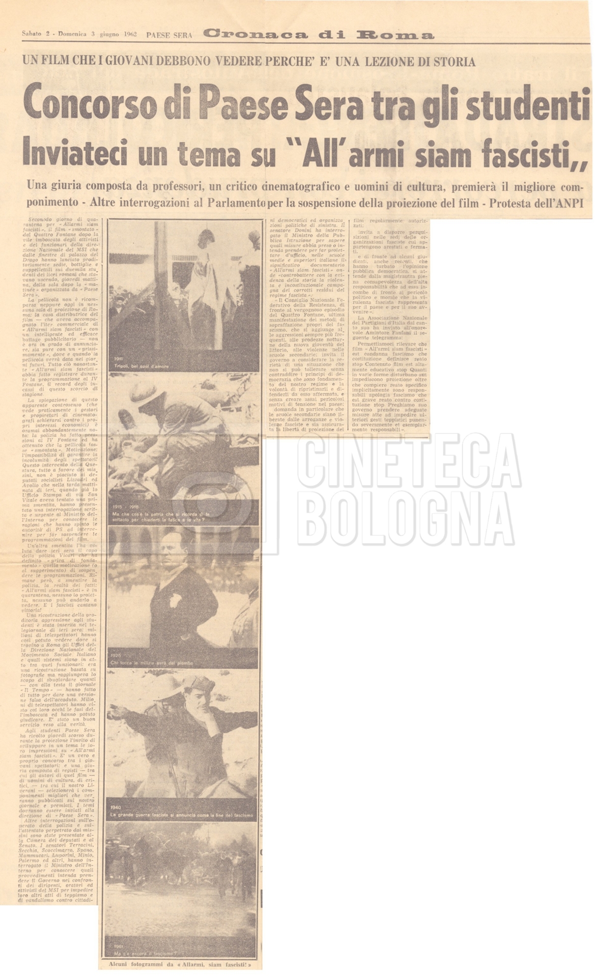 Contiene rassegna stampa a proposito dei concorsi indetti dai giornali “Paese Sera” e “Il Paese” riguardanti il film.