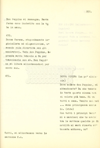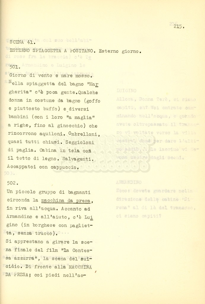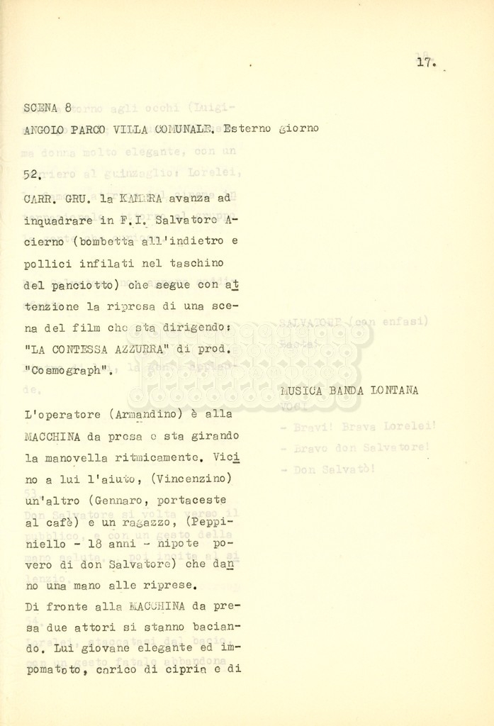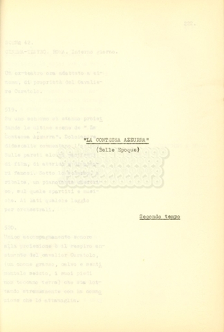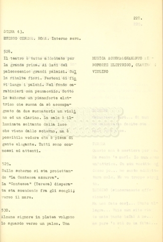 Si tratta di una sceneggiatura di Suso Cecchi d'Amico, Claudio Gora e Luigi Bazzoni. La regia del film La contessa azzurra (1960) è di Claudio Gora e nella pellicola vengono accreditati alla sceneggiatura gli stessi tre autori di cui sopra.