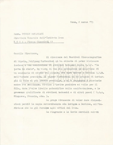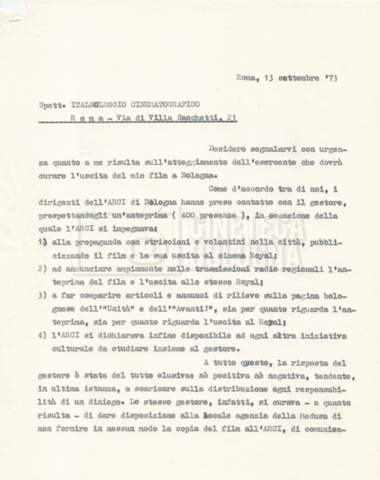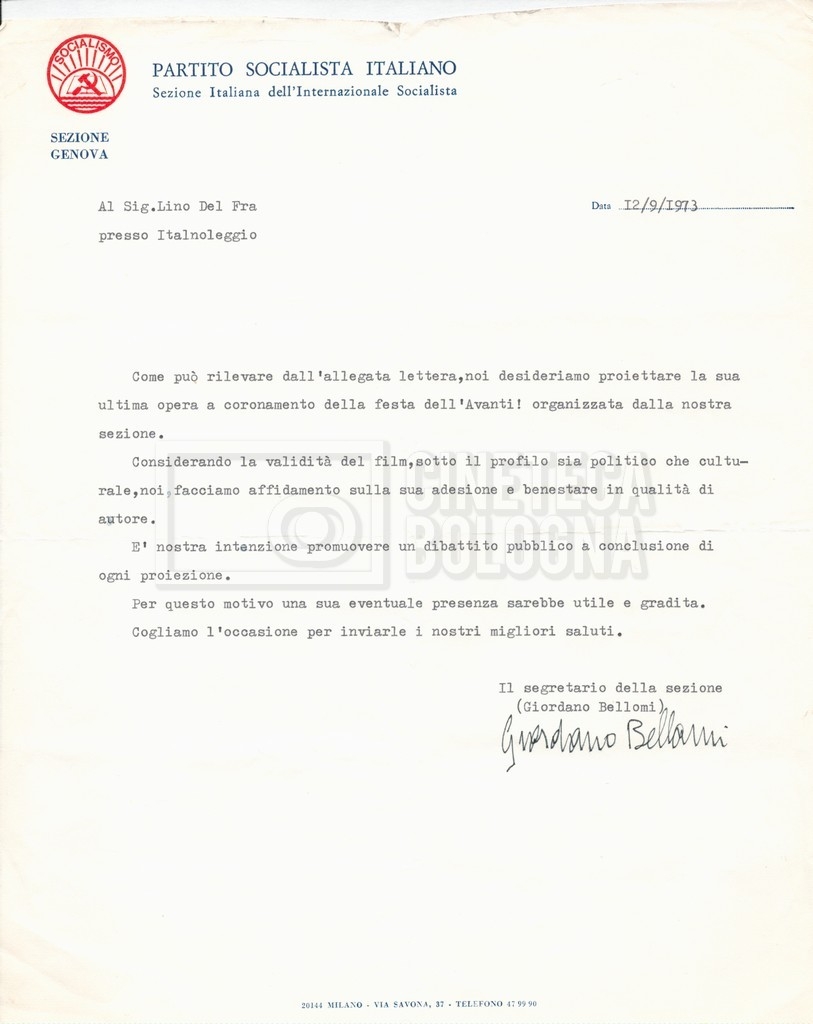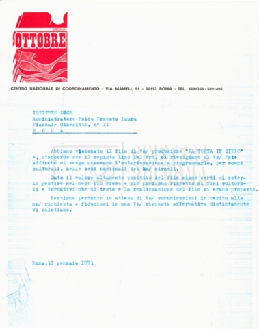 – “Luci e ombre”: contiene corrispondenza con il Circolo Ottobre’, L”Istituto Luce’, Wolfgang Harkenthal, direttore del ‘Festival internazionale del documentario’ di Lipsia, la ‘Italnoleggio’ e la sezione di Genova del PSI;
