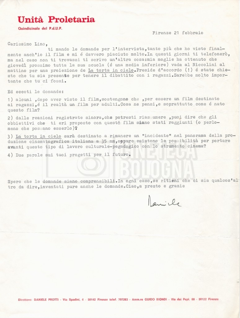 – “Lettera di Daniele Protti”.