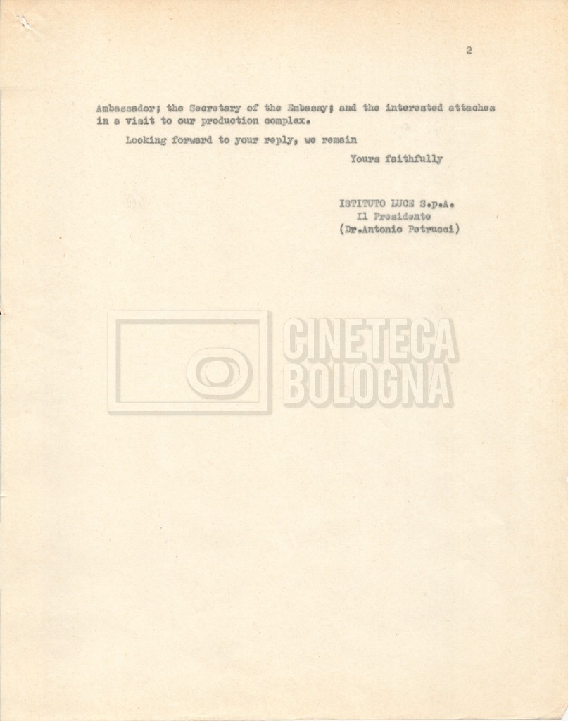 – Carteggio con la società ‘Imprese italiane all’estero (IMPRESIT) riguardante il possibile supporto alla realizzazione del documentari da parte della società, in particolare nella fornitura delle informazioni sulle attività imprenditoriali italiane in Iran (19 agosto 1966);