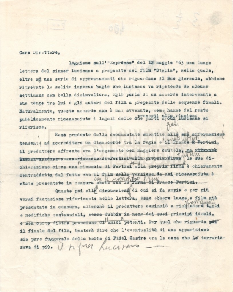 “Corrispondenza Fortini; Rottura con Lucisano; Lettera di Trockji accolto come esule in Messico”