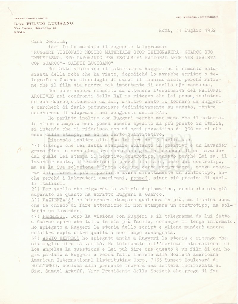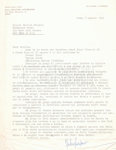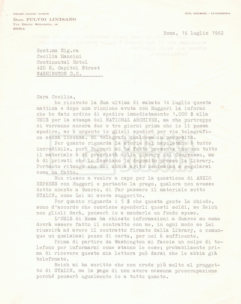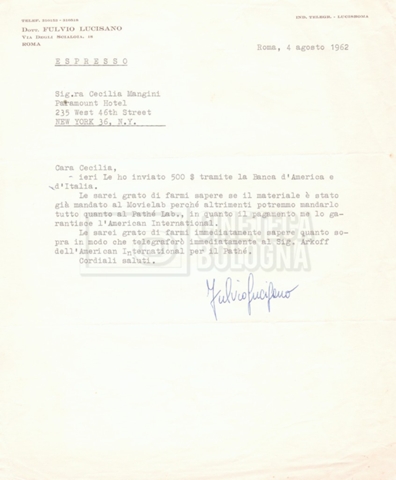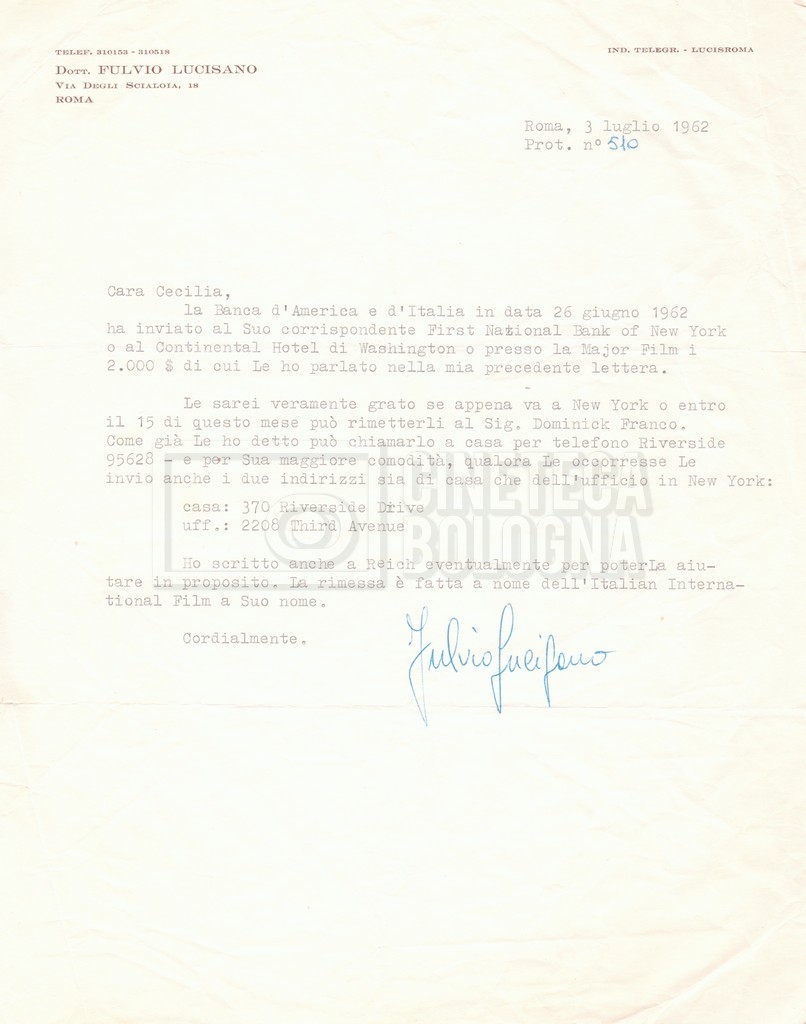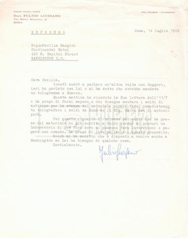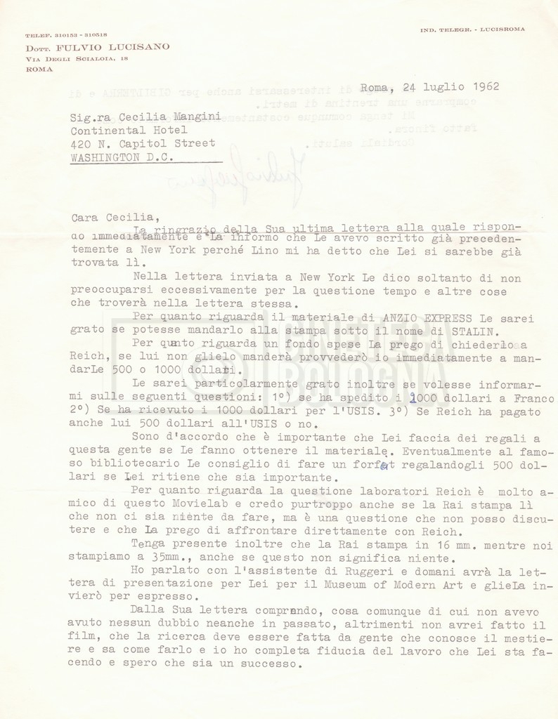 DOCUMENTO STORICO “Corrispondenza Fortini; Rottura con Lucisano; Lettera di Trockji accolto come esule in Messico”