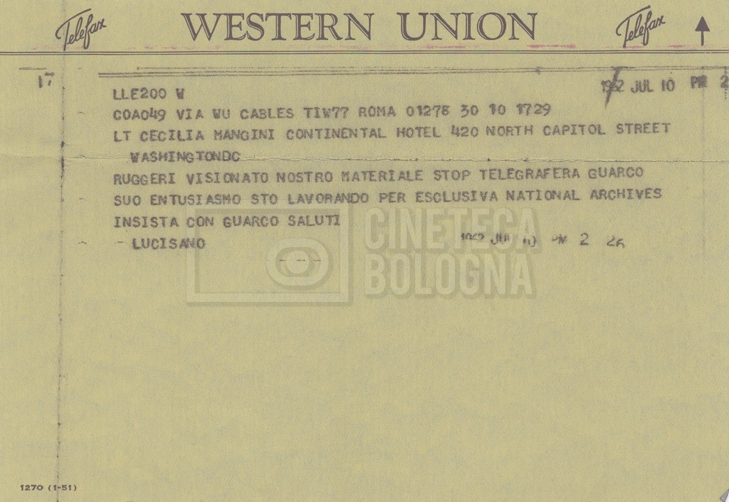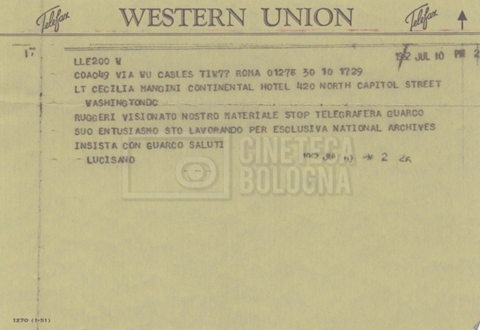DOCUMENTO STORICO “Telegrammi di Fortini (gli originali a Siena). L’originale è stato ritrovato poco tempo fa dentro un libro”