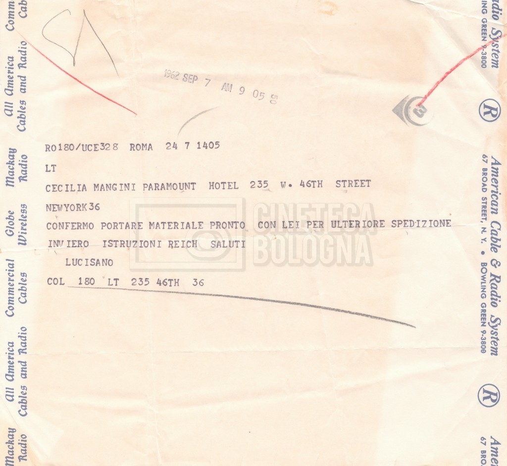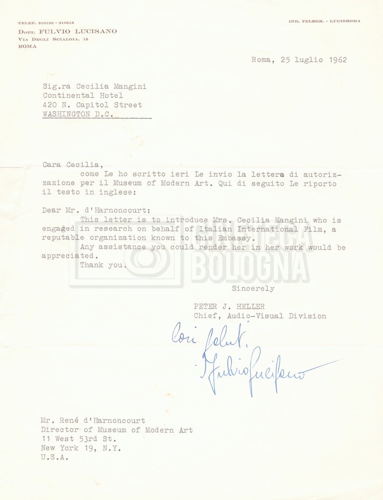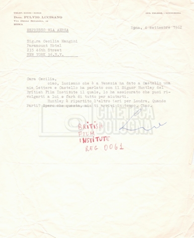 DOCUMENTO STORICO “Lettere di Lino Del Fra a Cecilia Mangini (in ‘United States of America’ e in Inghilterra)”