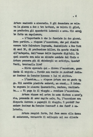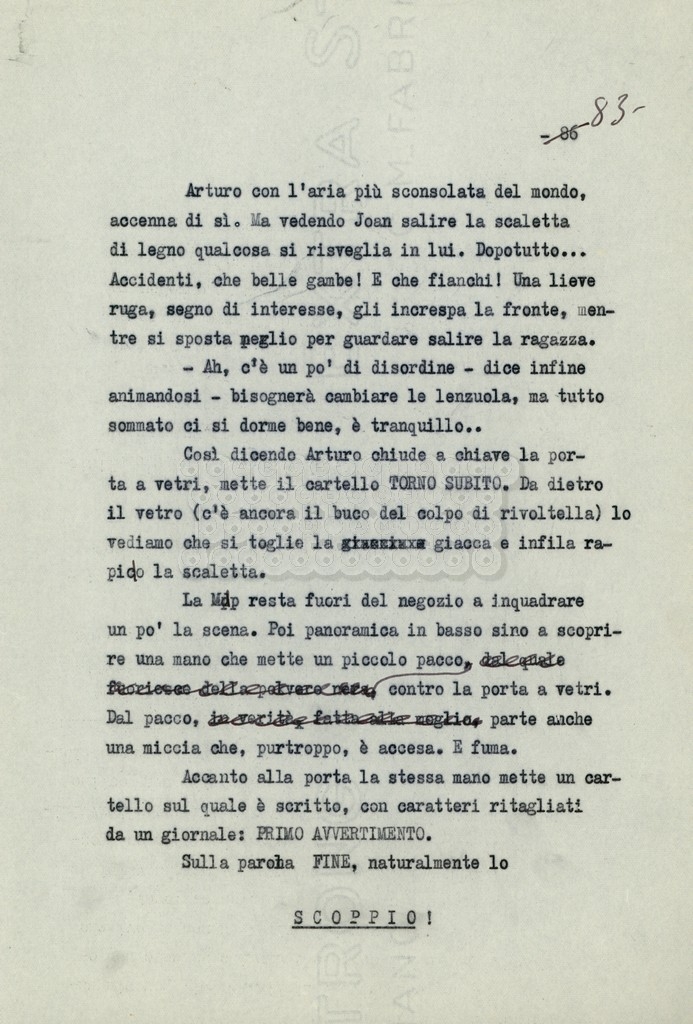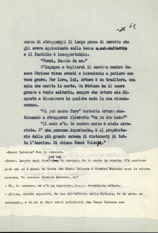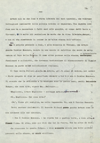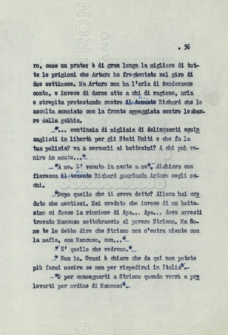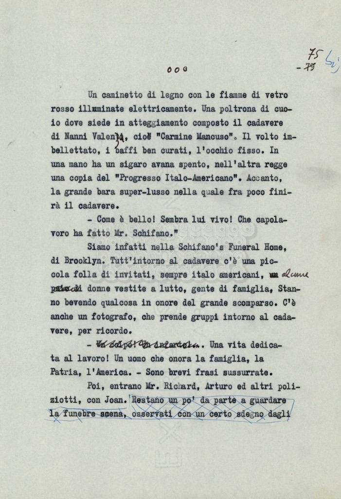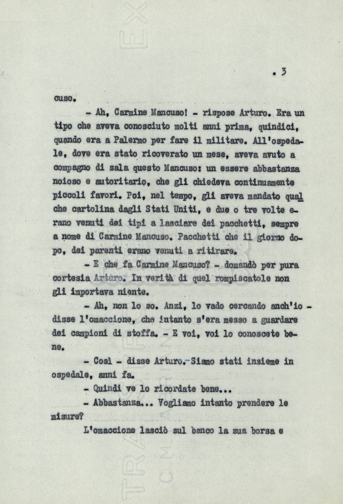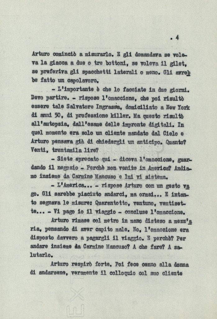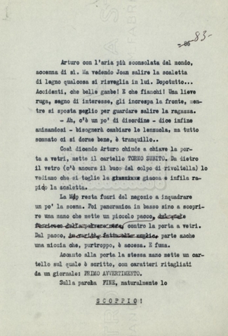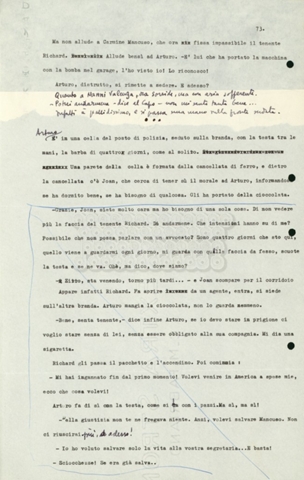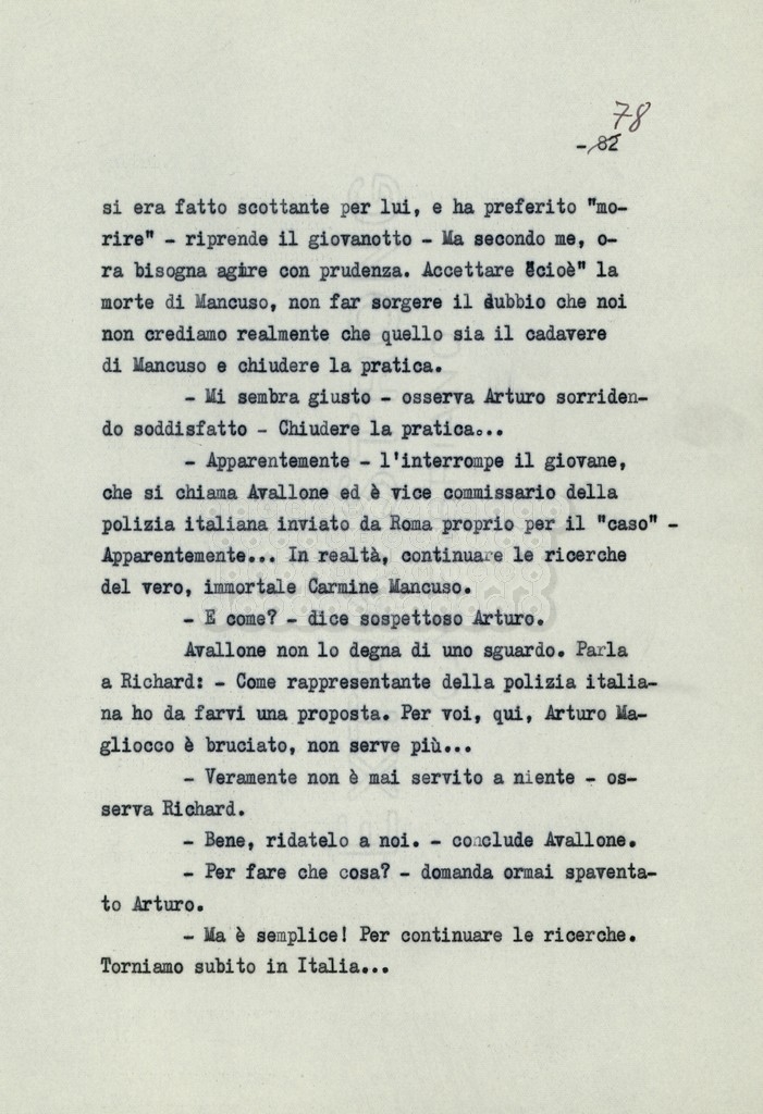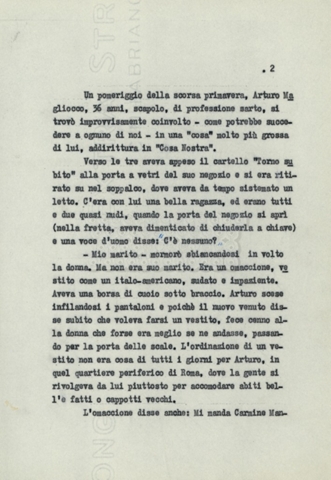 Torna alla banca dati “Cosa nostra” Documento storico Archivio Suso Cecchi d’Amico / Film e serie televisive non realizzate / Cosa nostra Ambiti e contenuto Trattasi di un trattamento, non firmato, di Suso Cecchi d’Amico e Ennio Flaiano. Presenta molte note mss. di Suso Cecchi d’Amico e di Ennio Flaiano e sul frontespizio appare l’appunto ms. "Carmine Mancuso". Informazioni archivistiche Cronologia: [1963 – 1964] Numero di ordinamento definitivo: 124 Numero di ordinamento provvisorio: 2.16 Descrizione fisica: volume pp. 83 Immagini digitalizzate Documenti correlati Vai alla banca dati DOCUMENTO STORICO “Farsi i fatti suoi” DOCUMENTO STORICO “Mind Your Own Business” DOCUMENTO STORICO “Cosa nostra” DOCUMENTO STORICO “Cosa nostra” DOCUMENTO STORICO “Cosa nostra”