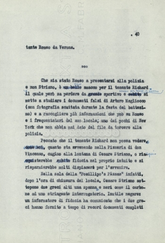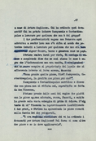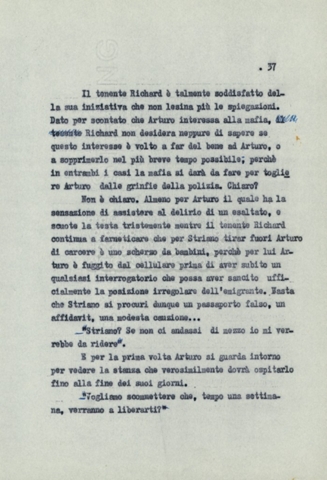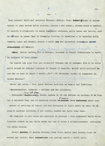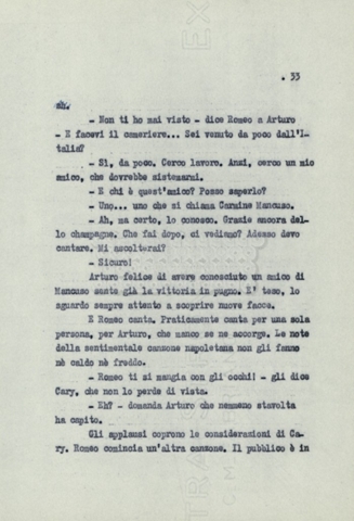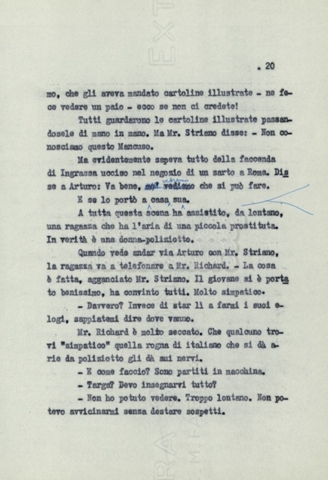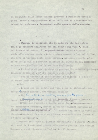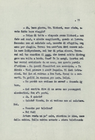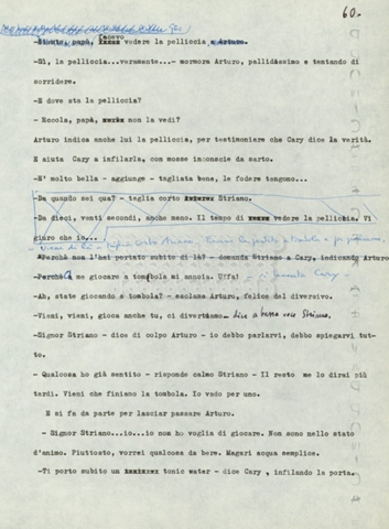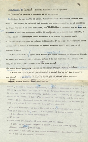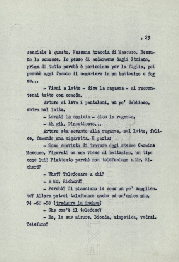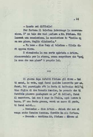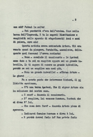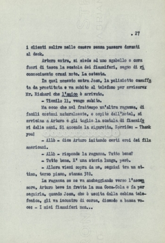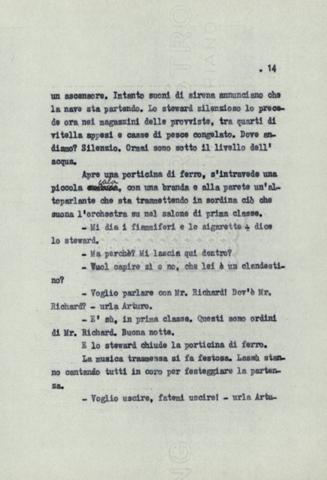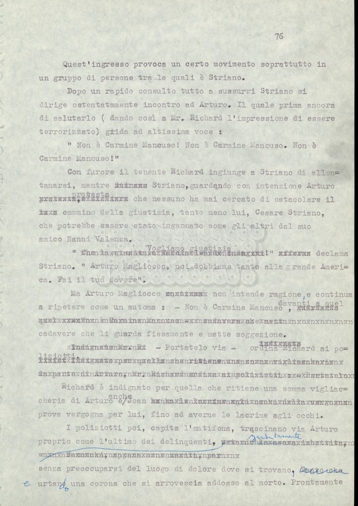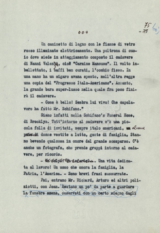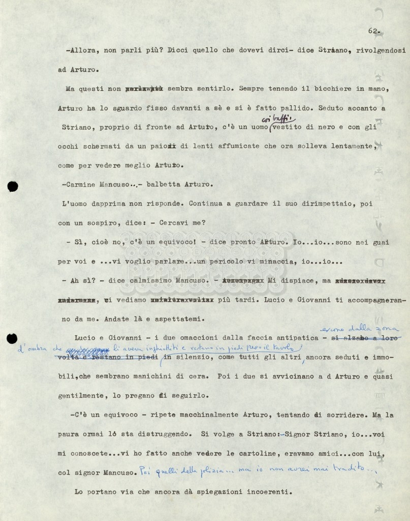 Torna alla banca dati “Cosa nostra” Documento storico Archivio Suso Cecchi d’Amico / Film e serie televisive non realizzate / Cosa nostra Ambiti e contenuto Trattasi di un trattamento, non firmato, di Suso Cecchi d’Amico e Ennio Flaiano. Presenta molte note mss. di Suso Cecchi d’Amico e di Ennio Flaiano e sul frontespizio appare l’appunto ms. "Carmine Mancuso". Informazioni archivistiche Cronologia: [1963 – 1964] Numero di ordinamento definitivo: 124 Numero di ordinamento provvisorio: 2.16 Descrizione fisica: volume pp. 83 Immagini digitalizzate Documenti correlati Vai alla banca dati DOCUMENTO STORICO “Farsi i fatti suoi” DOCUMENTO STORICO “Mind Your Own Business” DOCUMENTO STORICO “Cosa nostra” DOCUMENTO STORICO “Cosa nostra” DOCUMENTO STORICO “Cosa nostra”