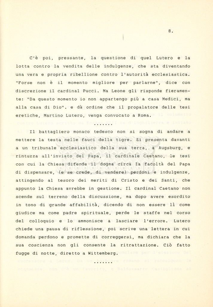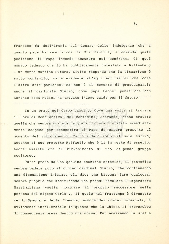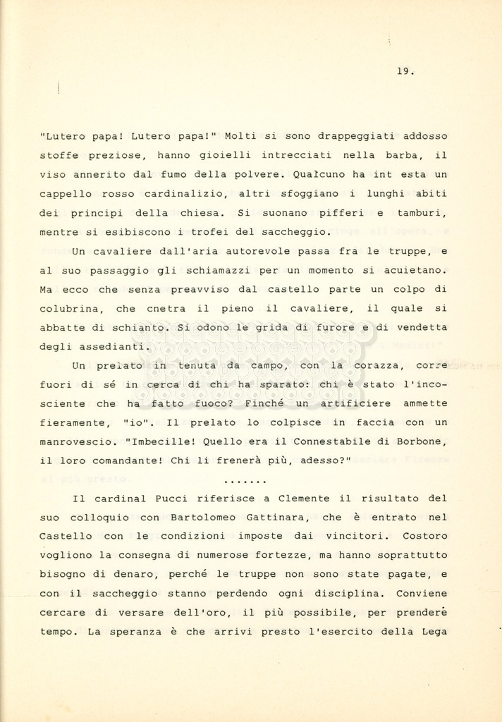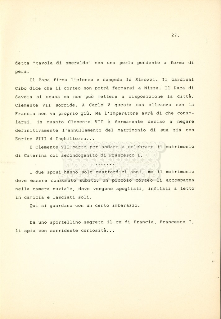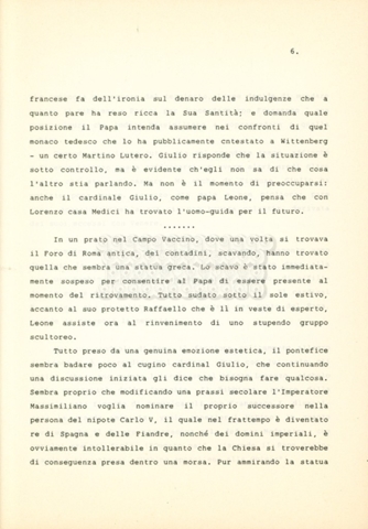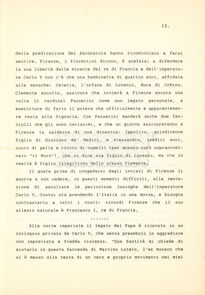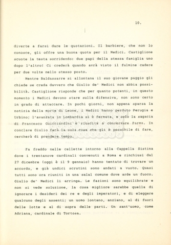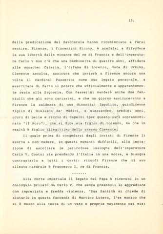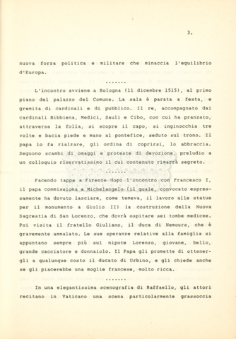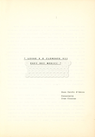 Torna alla banca dati “Cosimo I dei Medici” Documento storico Archivio Suso Cecchi d’Amico / Film e serie televisive non realizzate / Storie dei Medici Ambiti e contenuto Trattasi del soggetto per il terzo episodio della serie. L’autrice è Suso Cecchi d’Amico e viene segnalata la consulenza di Ivan Coulas. Informazioni archivistiche Cronologia: [1979 – 1989] Numero di ordinamento definitivo: 177 Numero di ordinamento provvisorio: 2.149 Descrizione fisica: volume pp. 27 Immagini digitalizzate Documenti correlati Vai alla banca dati DOCUMENTO STORICO “Storie dei Medici – primo episodio” DOCUMENTO STORICO “Lorenzo dei Medici detto il Magnifico” DOCUMENTO STORICO “Leone X e Clemente VII, papi dei Medici” DOCUMENTO STORICO “Cosimo Medici” DOCUMENTO STORICO “Caterina dei Medici regina di Francia” DOCUMENTO STORICO “Maria dei Medici regina di Francia” DOCUMENTO STORICO “Cosimo III e gli ultimi Medici”