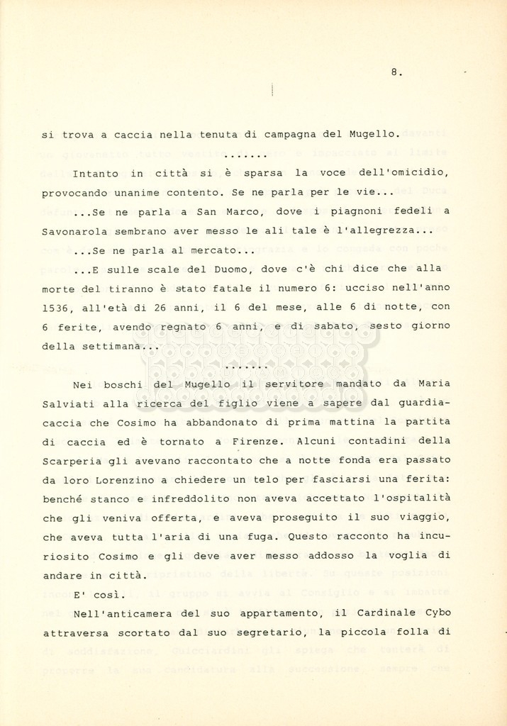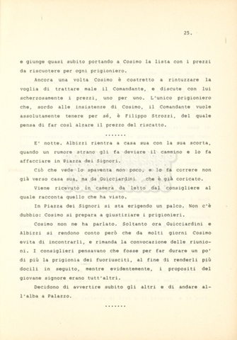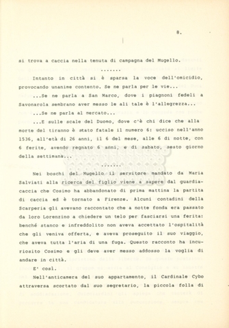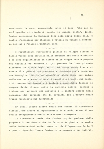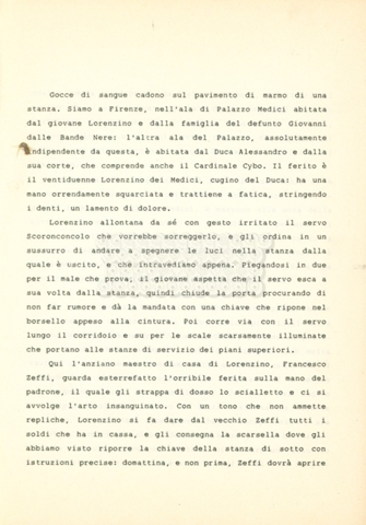 Torna alla banca dati “Cosimo Medici” Documento storico Archivio Suso Cecchi d’Amico / Film e serie televisive non realizzate / Storie dei Medici Ambiti e contenuto Trattasi di un soggetto di Suso Cecchi d’Amico. Si segnala, in allegato, la traduzione in inglese del soggetto, il cui titolo viene tradotto con "Cosimo the First Grand-Duke of Tuscany". Informazioni archivistiche Cronologia: [1979 – 1989] Numero di ordinamento definitivo: 178 Numero di ordinamento provvisorio: 2.18 Descrizione fisica: volume pp. 6 cc. 11 Immagini digitalizzate Documenti correlati Vai alla banca dati DOCUMENTO STORICO “Storie dei Medici – primo episodio” DOCUMENTO STORICO “Lorenzo dei Medici detto il Magnifico” DOCUMENTO STORICO “Leone X e Clemente VII, papi dei Medici” DOCUMENTO STORICO “Cosimo I dei Medici” DOCUMENTO STORICO “Caterina dei Medici regina di Francia” DOCUMENTO STORICO “Maria dei Medici regina di Francia” DOCUMENTO STORICO “Cosimo III e gli ultimi Medici”