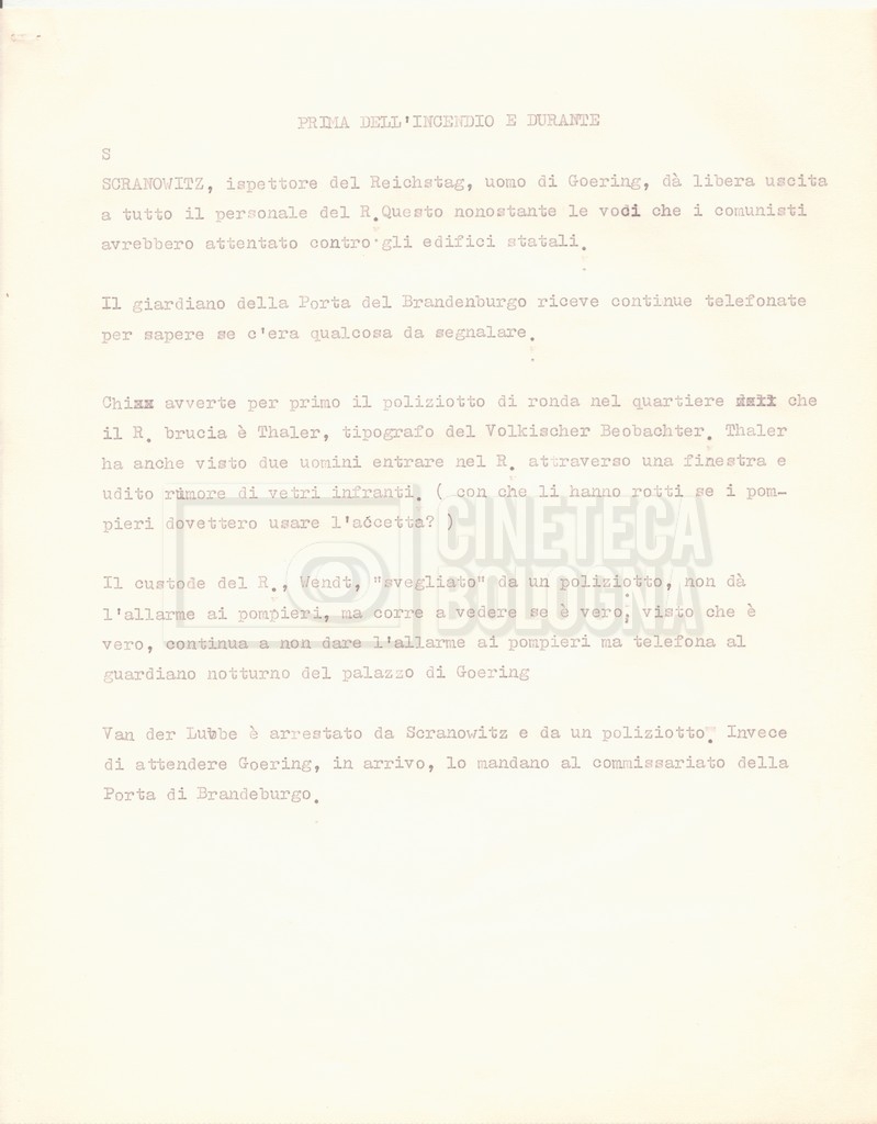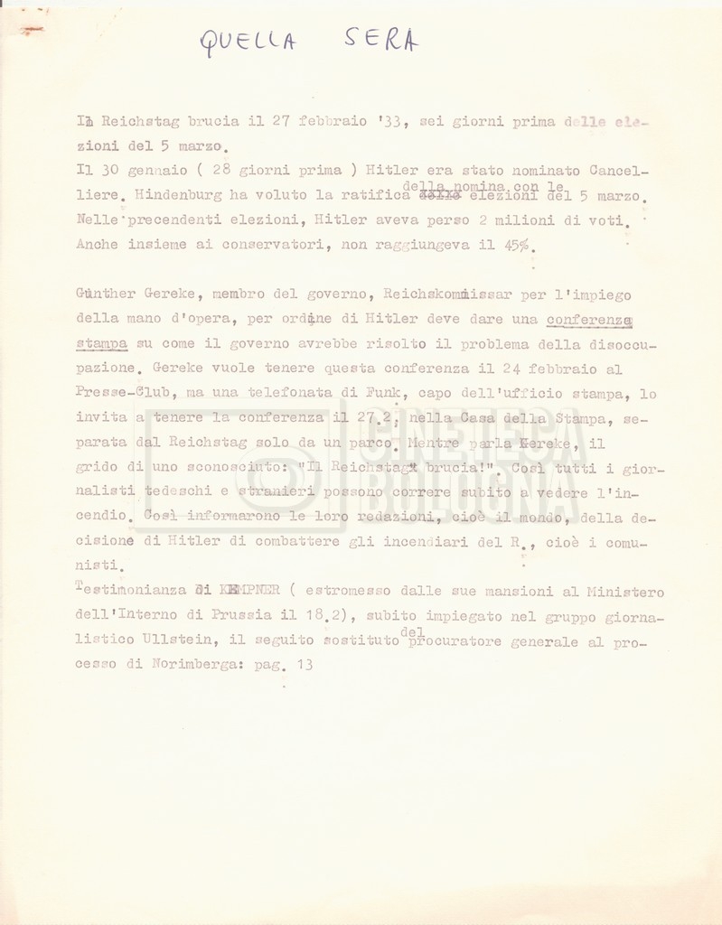 DOCUMENTO STORICO “Mie considerazioni sui cambiamenti apportati da Mario Gallo a ‘L’incendio del Reichstag’”