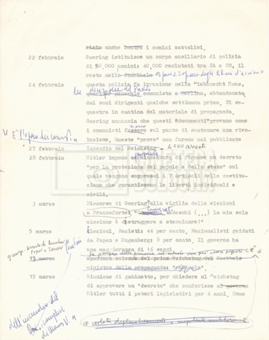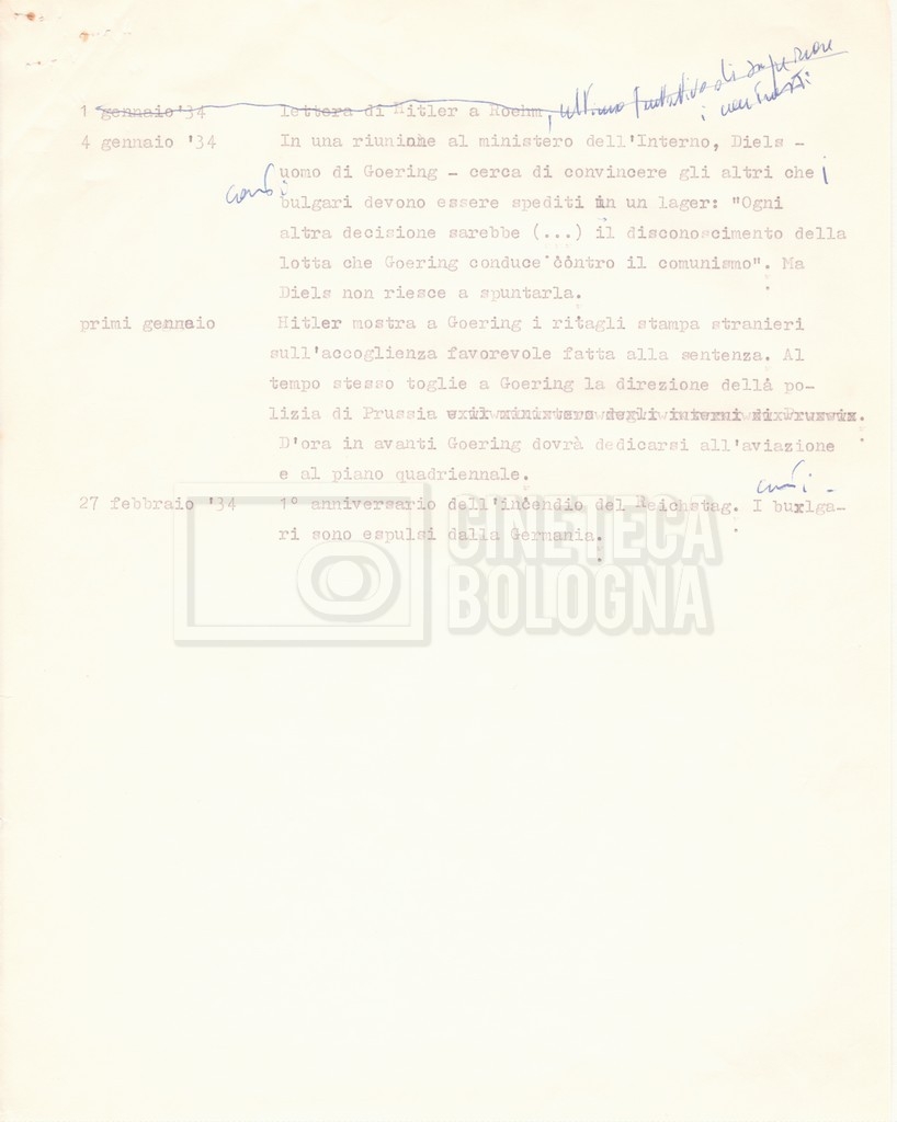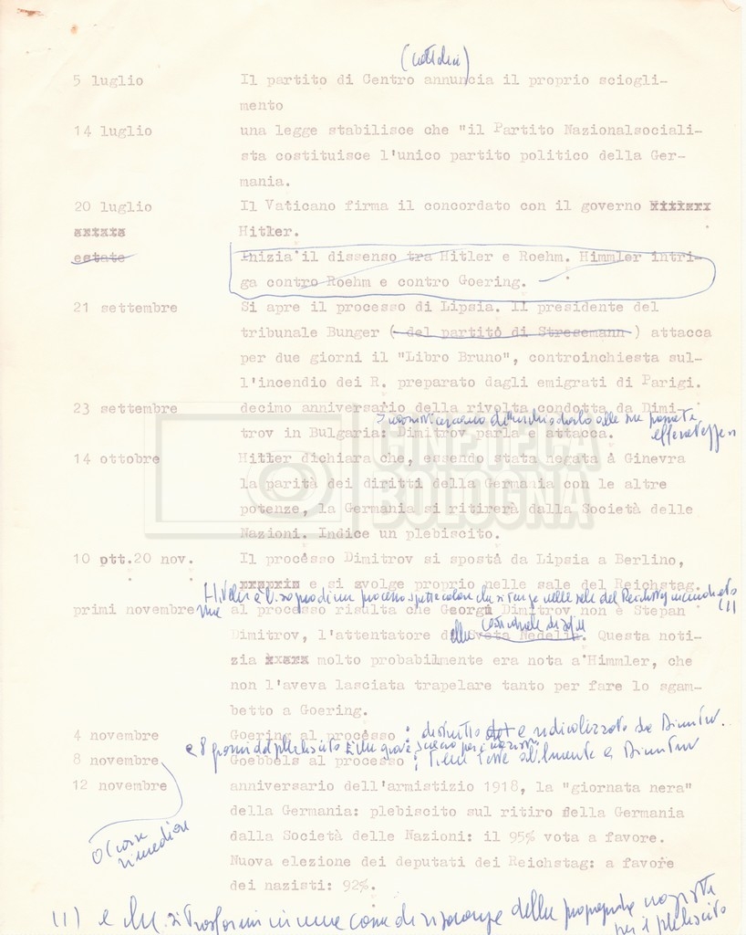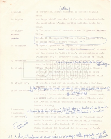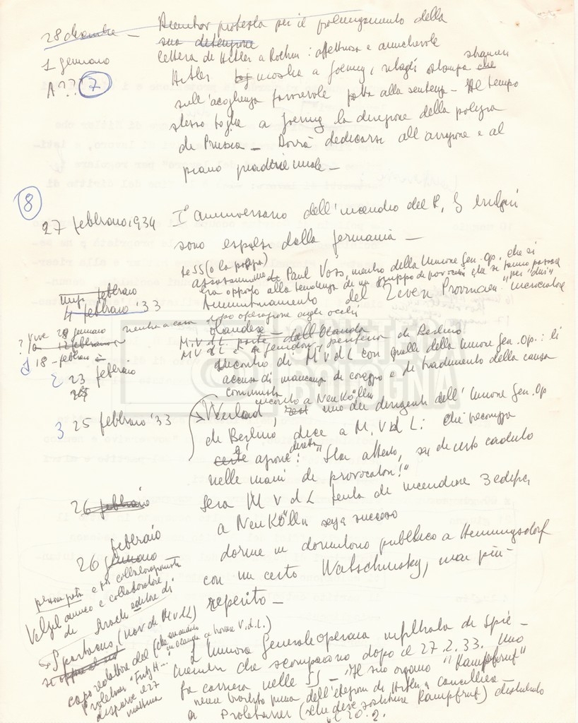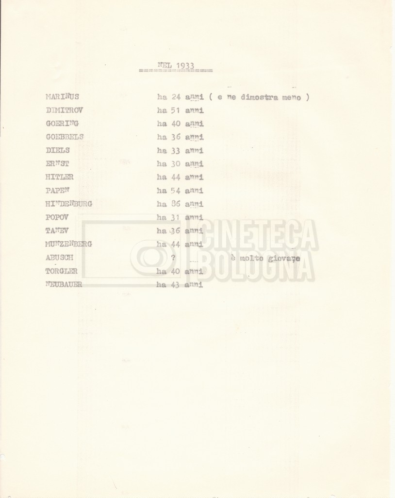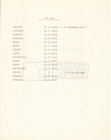DOCUMENTO STORICO “Appunti su personaggi; Marinus Van Der Lubbe; Dimitrov; Hitler; Goering; Goebbels; Neubauer”