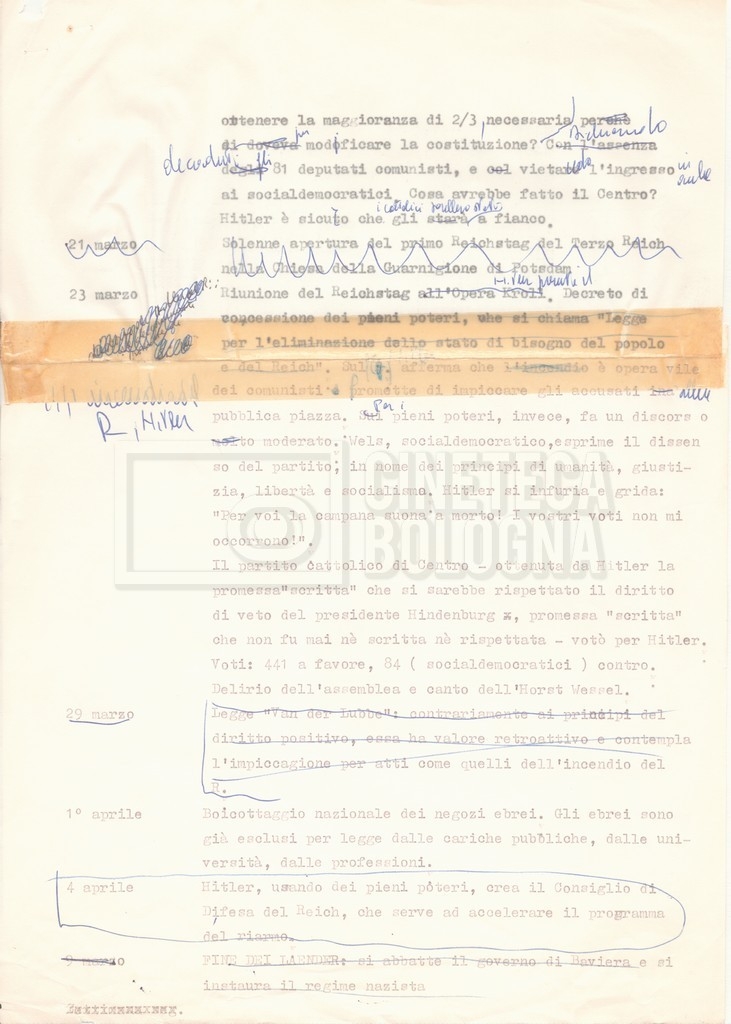 DOCUMENTO STORICO “Fotocopie dagli atti del processo di Lipsia; seduta del Reichstag 23.3.1933 all’Opera Kroll (Institut fur Zeitgeschichte di Monaco)”