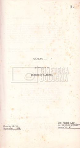 Torna alla banca dati “Darling” Documento storico Fondo Mara Blasetti / “Film Mara girati” / Darling Ambiti e contenuto L’autore è Frederic Raphael. Informazioni archivistiche Cronologia: settembre 1964 Numero di ordinamento definitivo: 1.10.3 Numero di ordinamento provvisorio: M1.1 Descrizione fisica: volume Immagini digitalizzate Informazioni sul film titolo originale: Darling regia: Schlesinger, John anno: 1965 paese di produzione: Regno Unito lingua principale: inglese Documenti correlati Vai alla banca dati DOCUMENTO STORICO “Cast e unit lists” DOCUMENTO STORICO Gestione delle riprese e corrispondenza