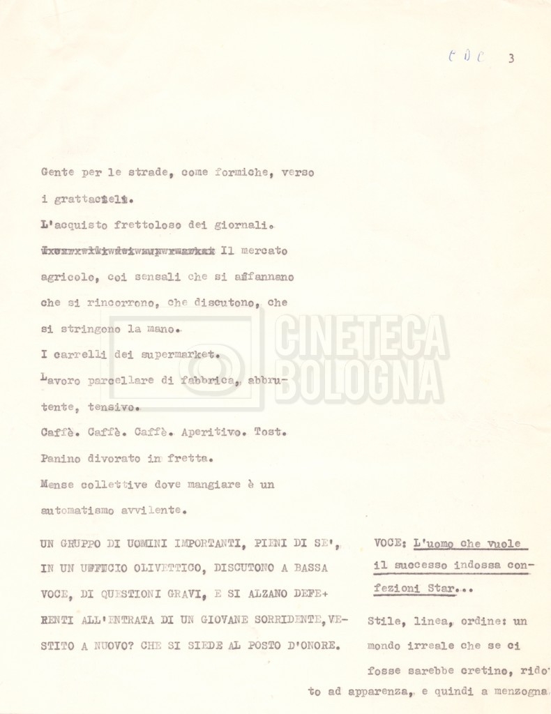 - "Civiltà dei Consumi": contiene una presentazione datt. del progetto, con allegati découpage tecnico e appunti mss. di Lino Del Fra. L'inchiesta pone criticamente in rassegna gli oggetti-simbolo del neocapitalismo occidentale e le sue tecniche di promozione;