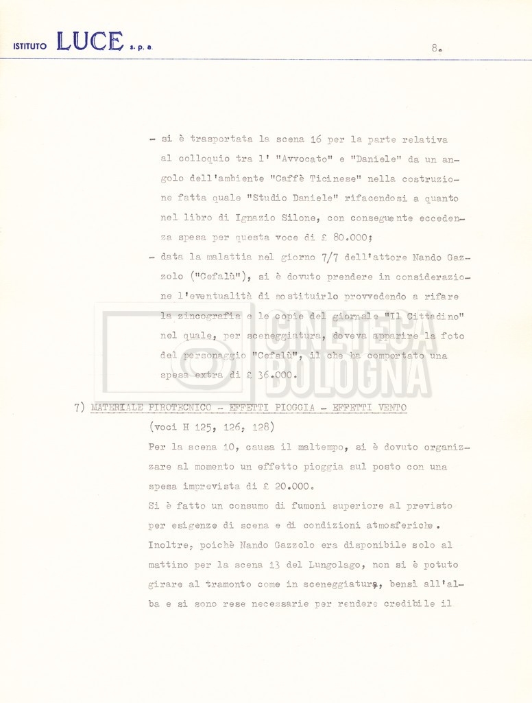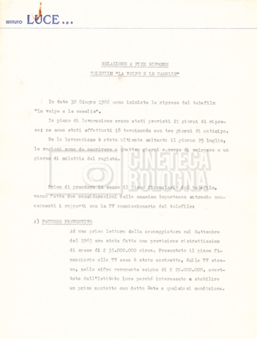 – Una relazione a fine riprese di Mara Blasetti per il direttore dell”Istituto Luce’ (28 luglio 1966).
