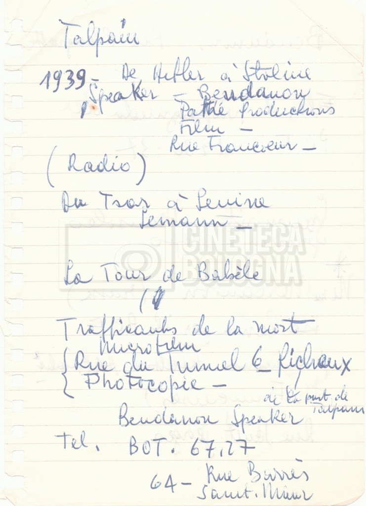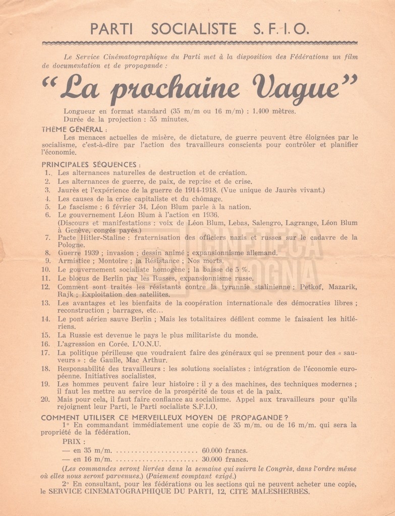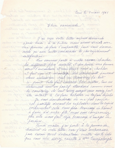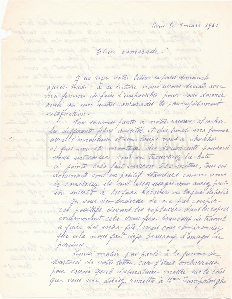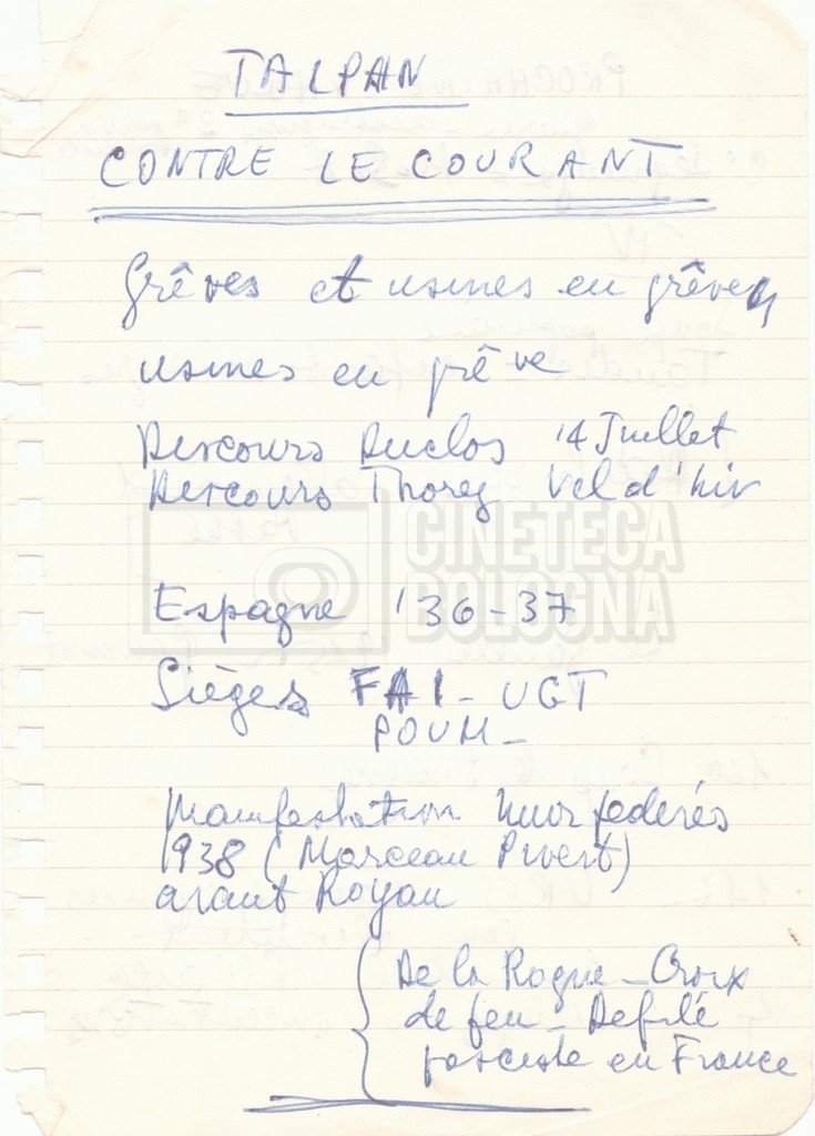 – Una lettera di Lino del Fra, Cecilia Mangini e Lino Micchichè a Roberto Bonchio, rappresentante della casa editrice ‘Editori Riuniti’, in cui rifiutano la proposta per la stampa di un volume tratto dalla pellicola (s.d.);