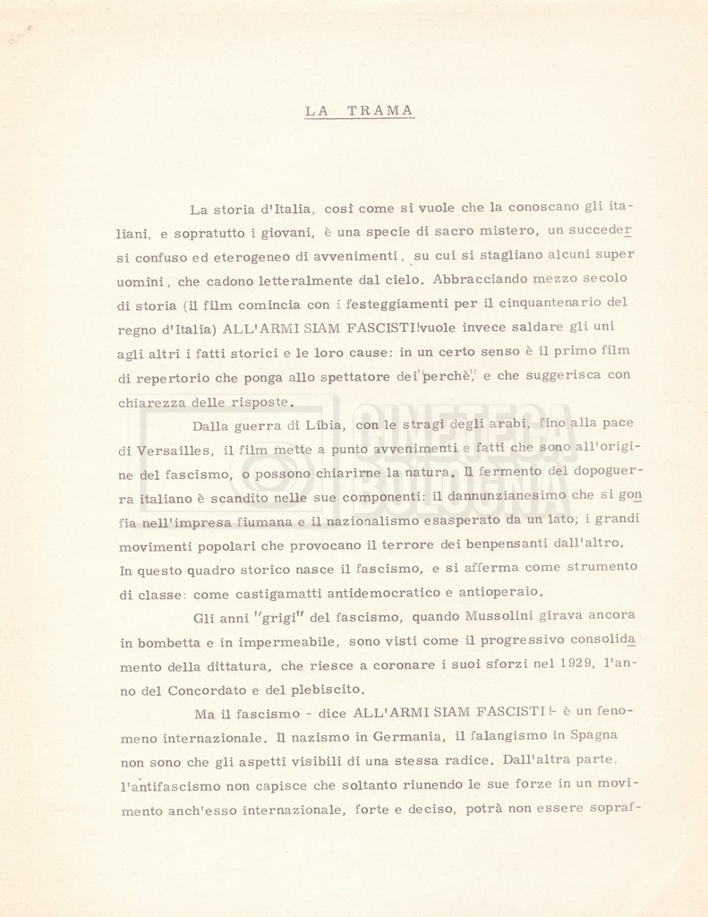 – Un programma del corso di Maria Antonietta Macciocchi, tenuto alla Sorbona, sulla parabola storica del fascismo dalle origini al presente, in cui era prevista la proiezione del film All’armi, siam fascisti!.