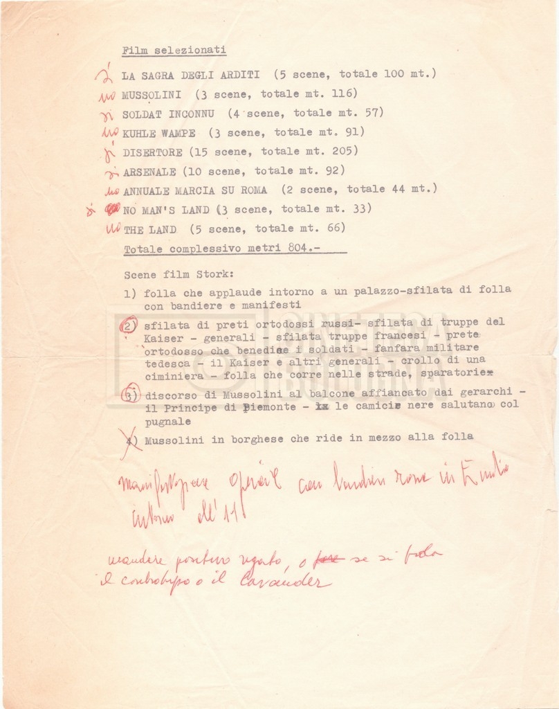 – Due copie della trama del film, introdotta da una recensione di Vittorio Bonicelli tratta dal periodico “Le Ore”;