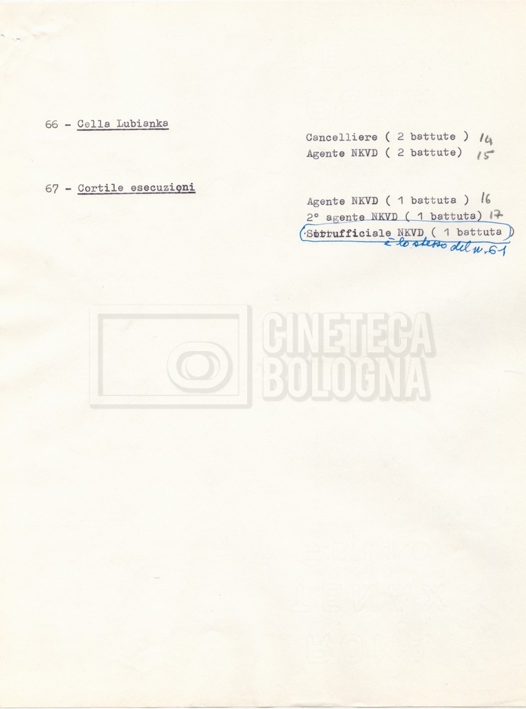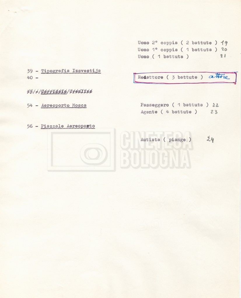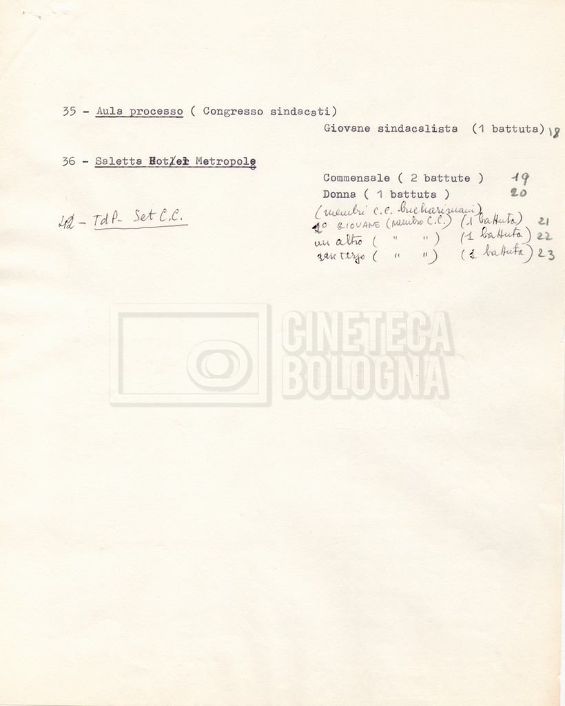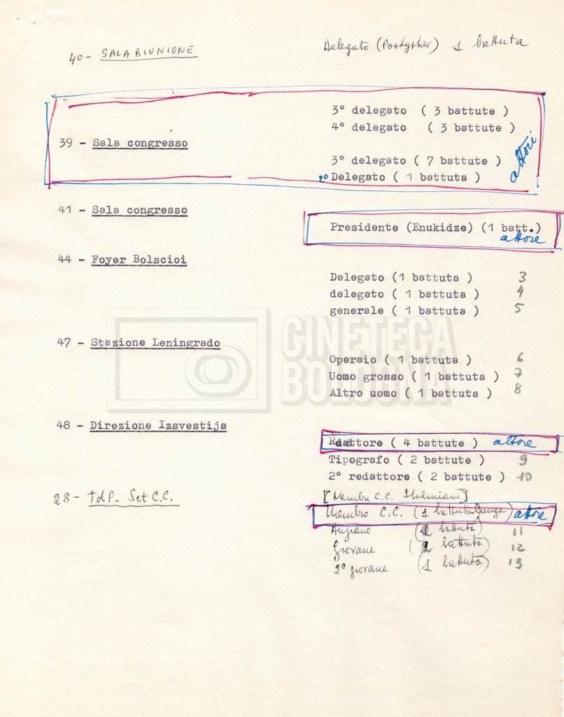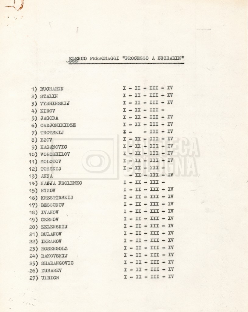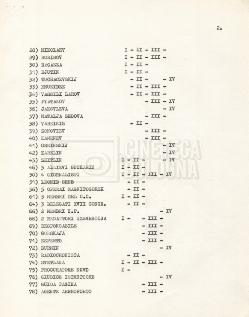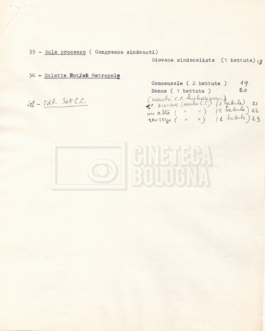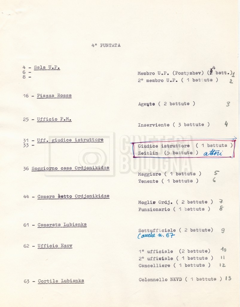 – Un copia per la TV dell’elenco degli ambienti con la distinzione in teatro di posa, ambienti dal vero e ricostruzioni in esterno.