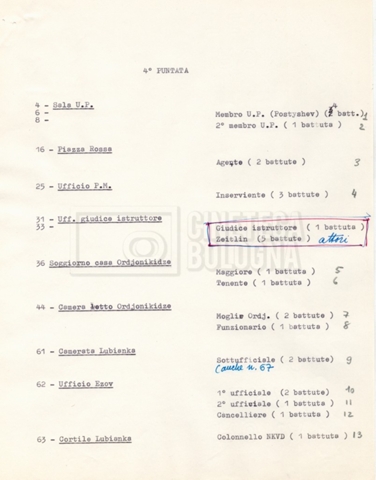 “Elenco personaggi; elenco generici; complesso ambienti; elenco ambienti; elenco ambienti per puntata”