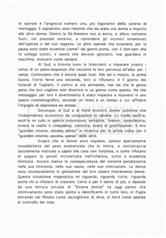 - Materiali prodotti in occasione della proiezione del documentario al 'Cinema Roma d'essai' di Pistoia per il ciclo di incontri "Giovedì, cinema al femminile", tenuto tra il 14 marzo e l'11 aprile 2002, tra cui si segnala una presentazione del film a firma di Cecilia Mangini in cui si sofferma sull'origine del progetto e l'esperienza di ripresa nelle fabbriche e più in generale con le donne del Nord e del Sud coinvolte;