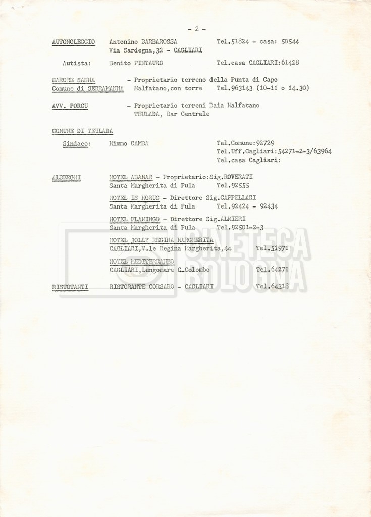– Un elenco datt. di indirizzi utili in Sardegna;
