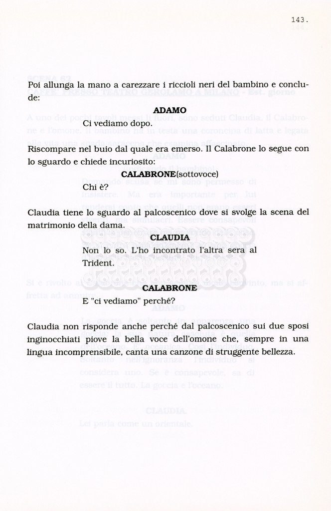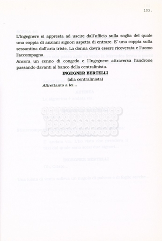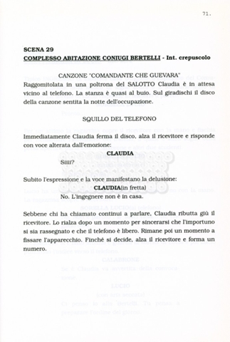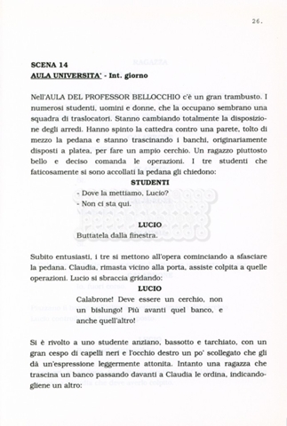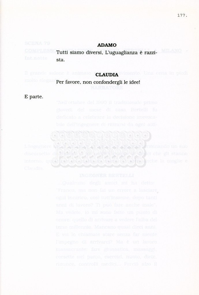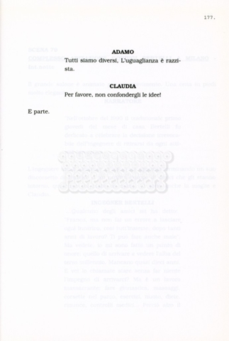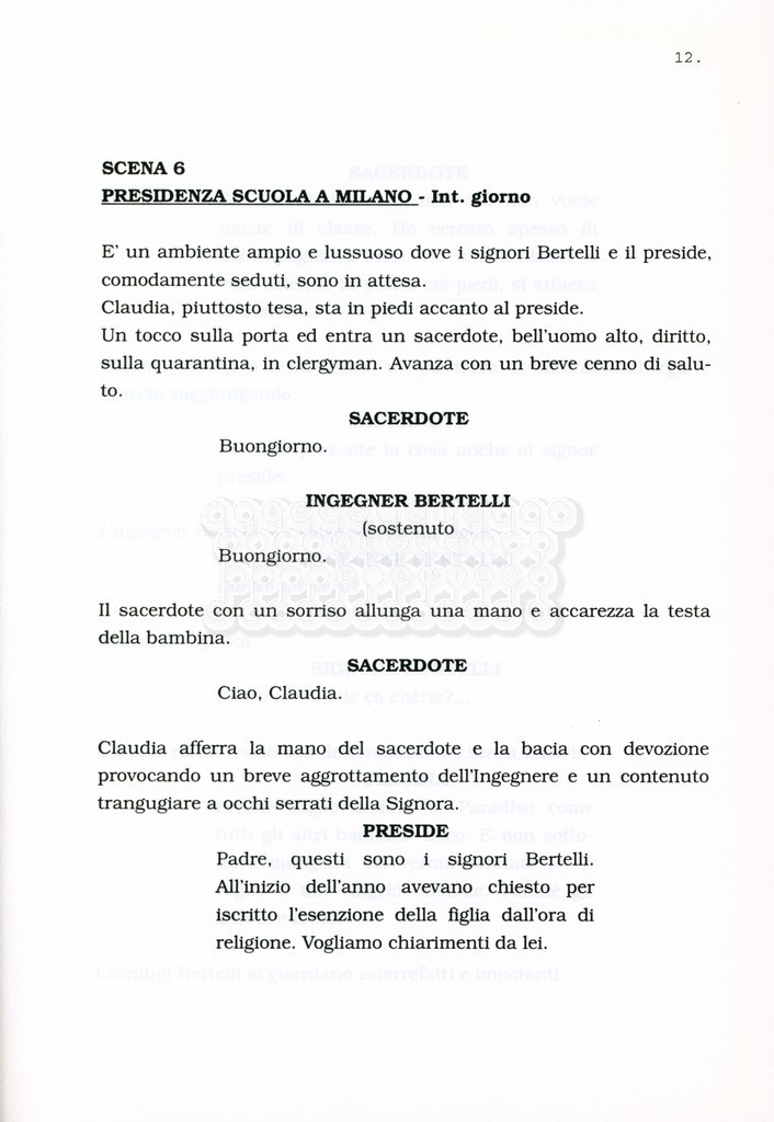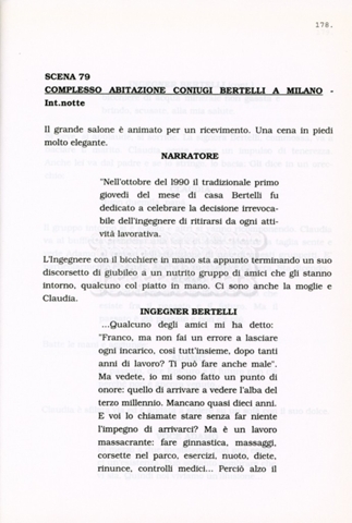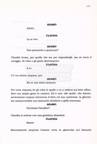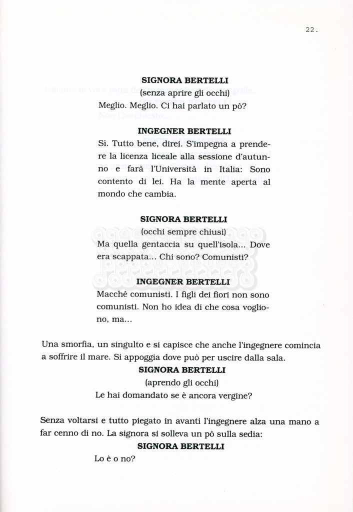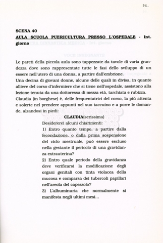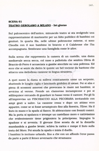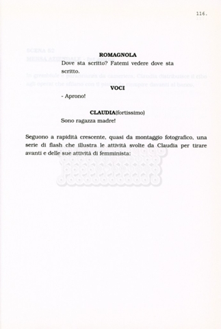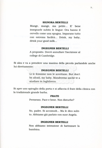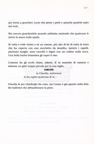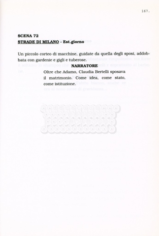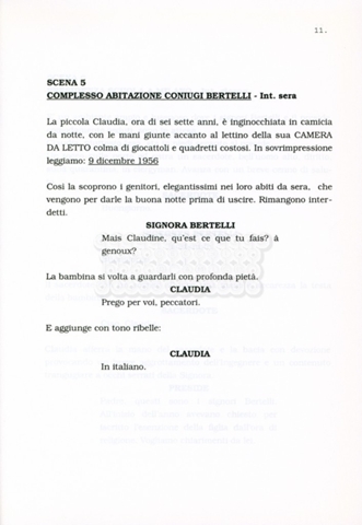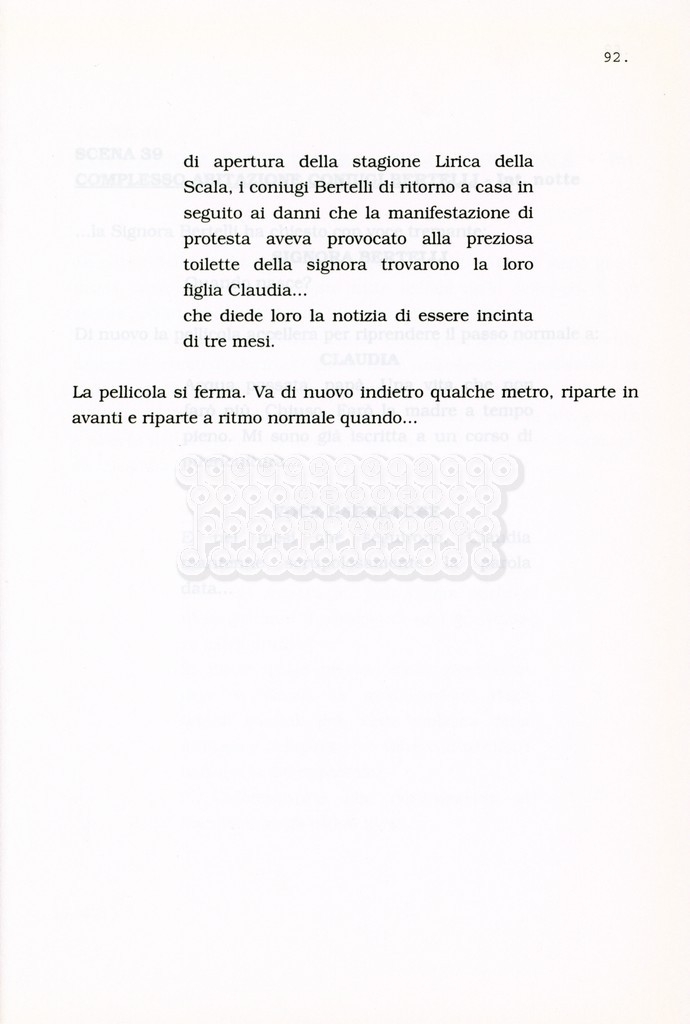 Torna alla banca dati “Facciamo paradiso (titolo provvisorio)” Documento storico Archivio Suso Cecchi d’Amico / Film realizzati / Facciamo Paradiso Ambiti e contenuto Trattasi di una sceneggiatura di Suso Cecchi d'Amico, Leo Benvenuti, Piero De Bernardi e Mario Monicelli. Sul frontespizio compare la dicitura "ultima versione". Informazioni archivistiche Cronologia: maggio 1995 Numero di ordinamento definitivo: 74 Numero di ordinamento provvisorio: 1.18 Descrizione fisica: volume pp. 215 Immagini digitalizzate Informazioni sul film titolo originale: Facciamo paradiso altri titoli: Looking for Paradise regia: Monicelli, Mario anno: 1995 paese di produzione: Italia lingua principale: italiana Documenti correlati Vai alla banca dati
