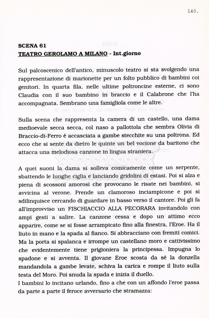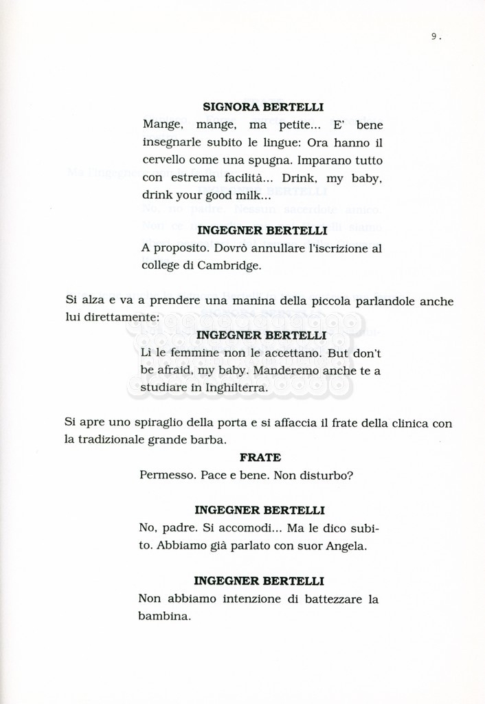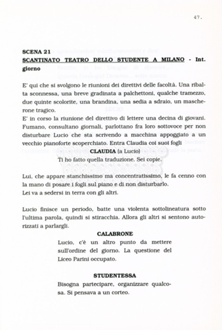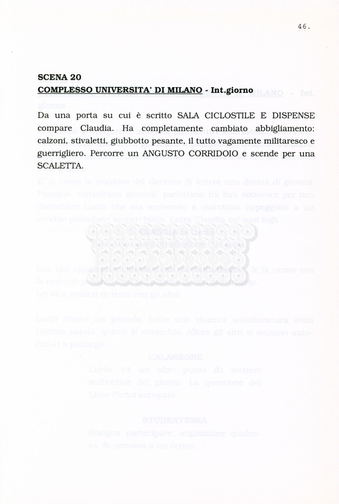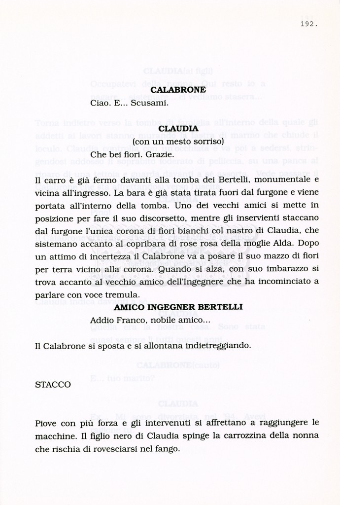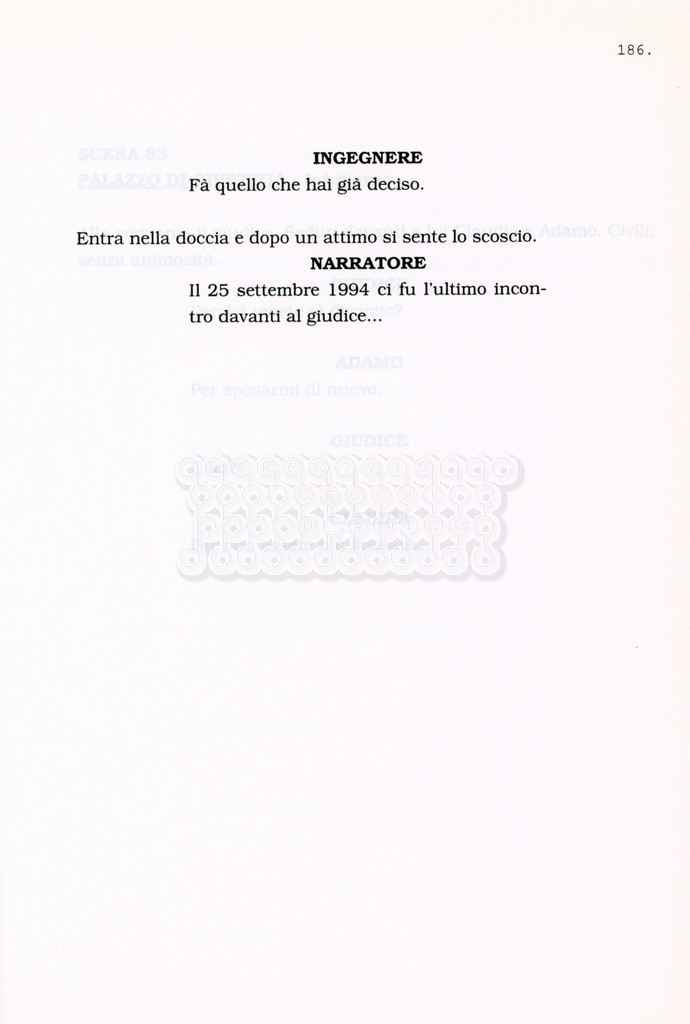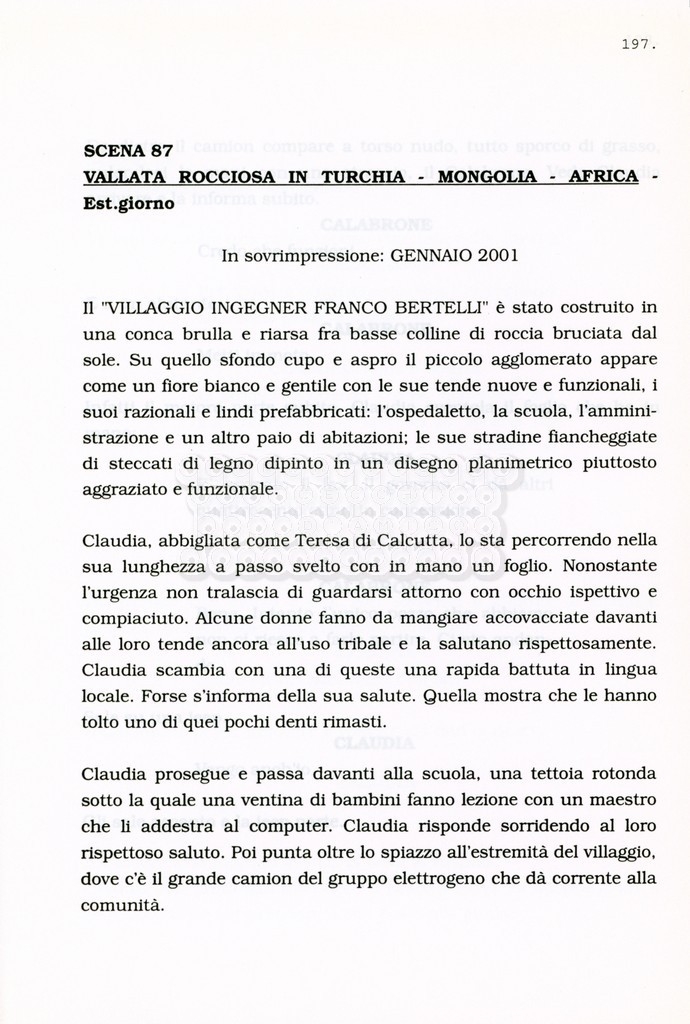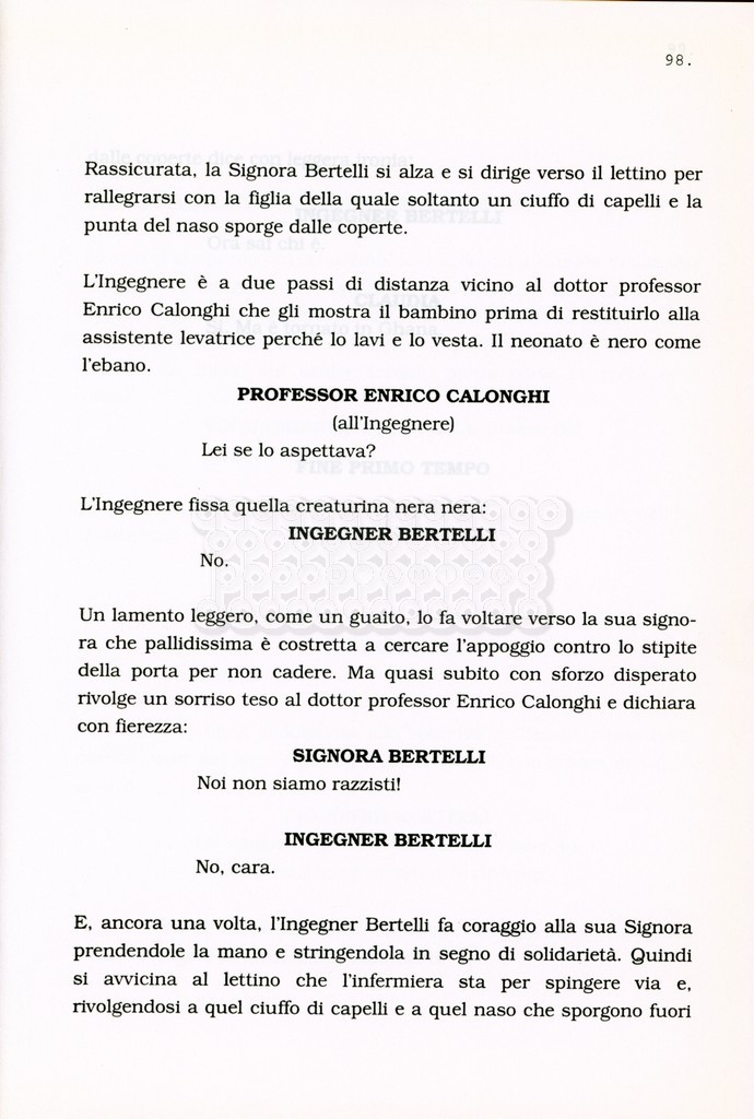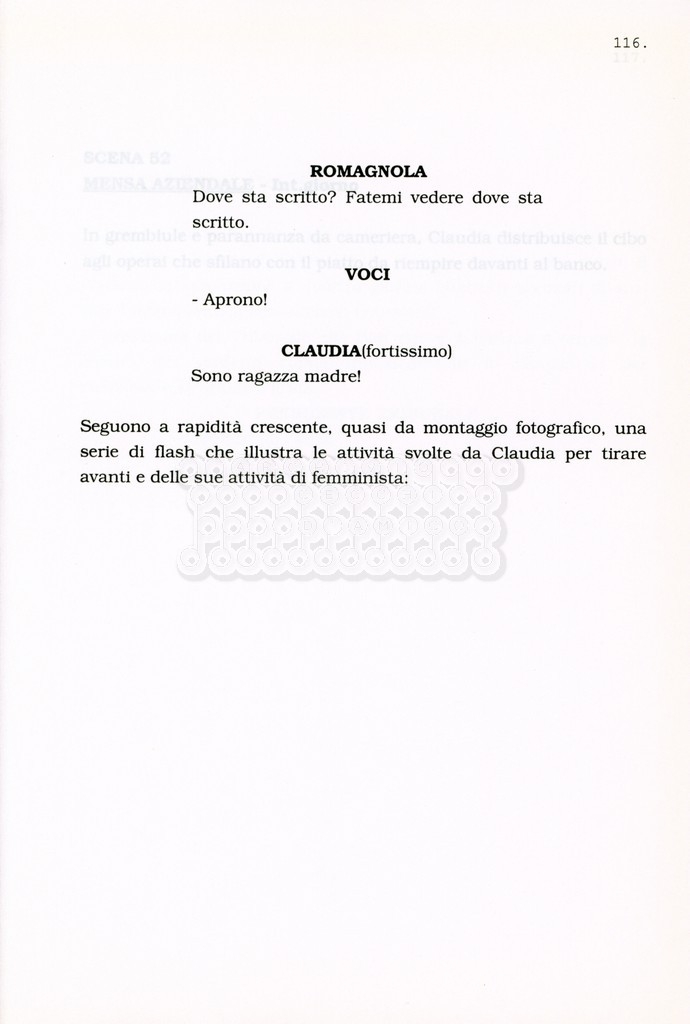 Torna alla banca dati “Facciamo paradiso (titolo provvisorio)” Documento storico Archivio Suso Cecchi d’Amico / Film realizzati / Facciamo Paradiso Ambiti e contenuto Trattasi di una sceneggiatura di Suso Cecchi d'Amico, Leo Benvenuti, Piero De Bernardi e Mario Monicelli. Sul frontespizio compare la dicitura "ultima versione". Informazioni archivistiche Cronologia: maggio 1995 Numero di ordinamento definitivo: 74 Numero di ordinamento provvisorio: 1.18 Descrizione fisica: volume pp. 215 Immagini digitalizzate Informazioni sul film titolo originale: Facciamo paradiso altri titoli: Looking for Paradise regia: Monicelli, Mario anno: 1995 paese di produzione: Italia lingua principale: italiana Documenti correlati Vai alla banca dati