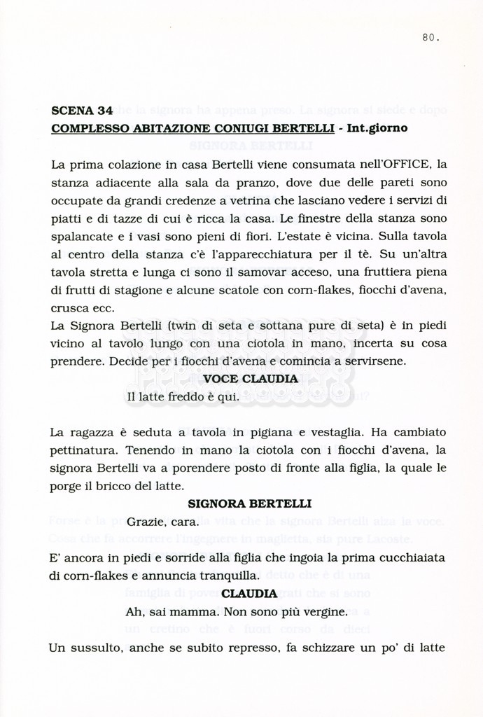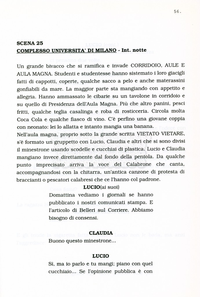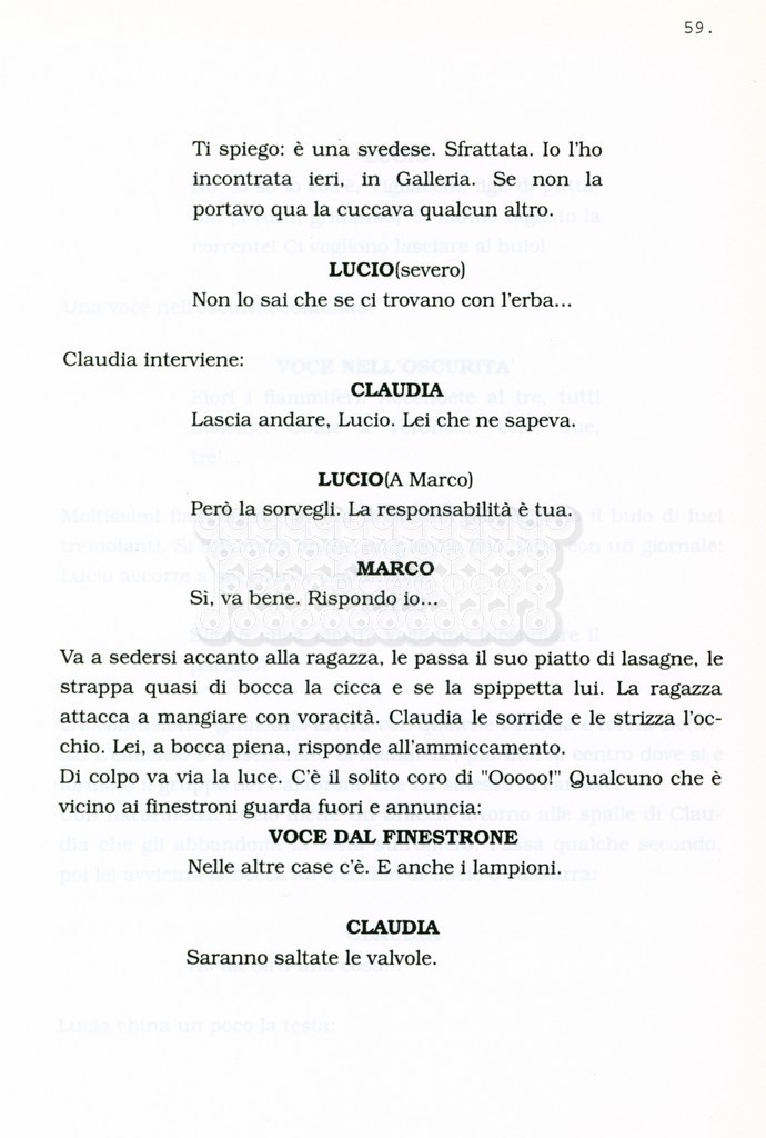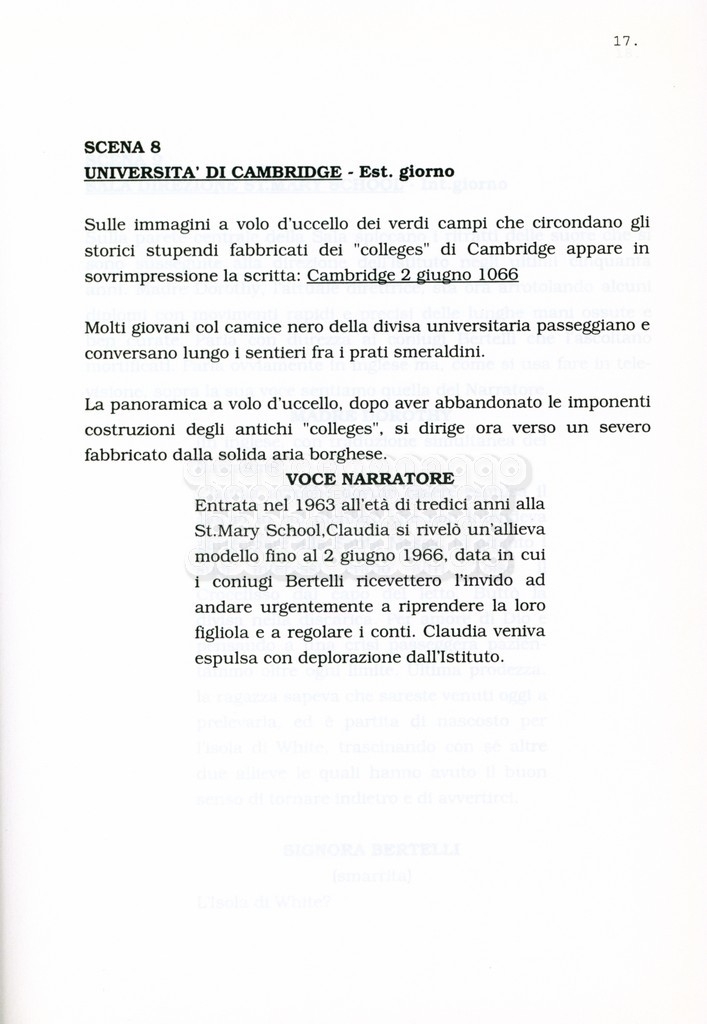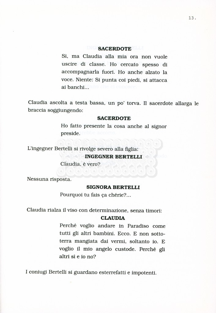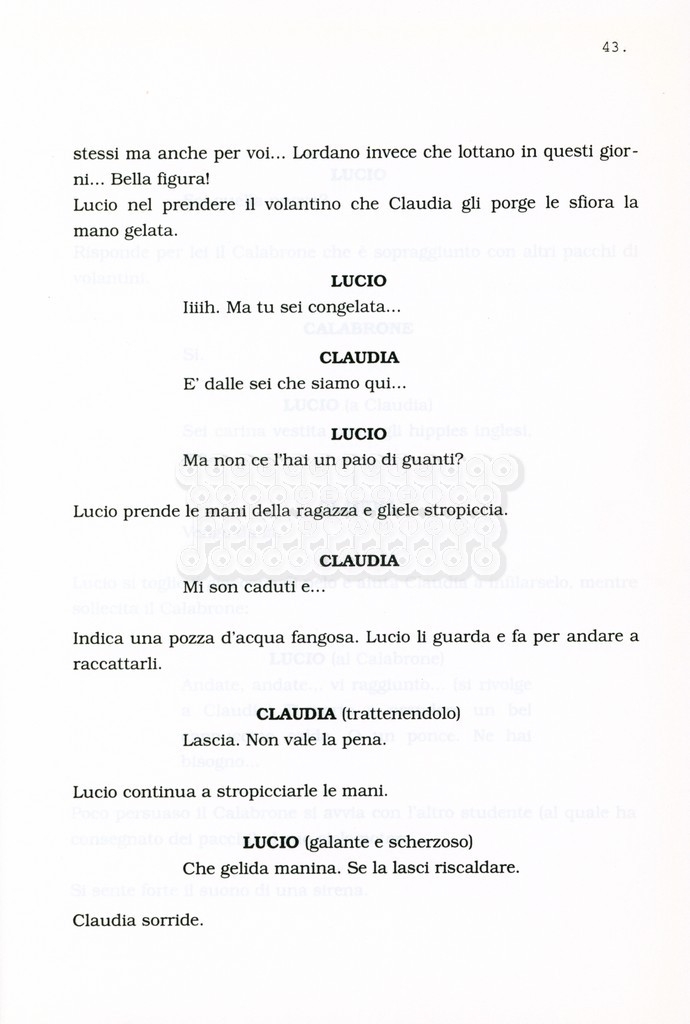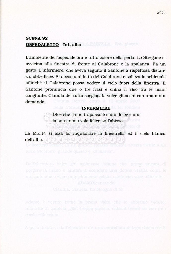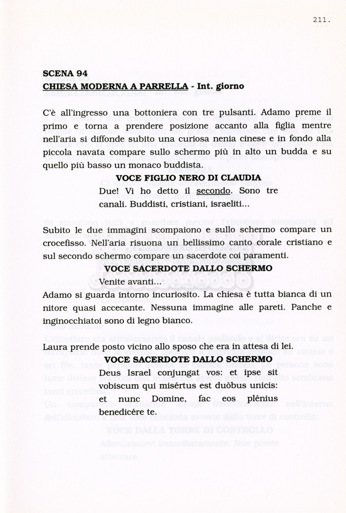 Torna alla banca dati “Facciamo paradiso (titolo provvisorio)” Documento storico Archivio Suso Cecchi d’Amico / Film realizzati / Facciamo Paradiso Ambiti e contenuto Trattasi di una sceneggiatura di Suso Cecchi d'Amico, Leo Benvenuti, Piero De Bernardi e Mario Monicelli. Sul frontespizio compare la dicitura "ultima versione". Informazioni archivistiche Cronologia: maggio 1995 Numero di ordinamento definitivo: 74 Numero di ordinamento provvisorio: 1.18 Descrizione fisica: volume pp. 215 Immagini digitalizzate Informazioni sul film titolo originale: Facciamo paradiso altri titoli: Looking for Paradise regia: Monicelli, Mario anno: 1995 paese di produzione: Italia lingua principale: italiana Documenti correlati Vai alla banca dati