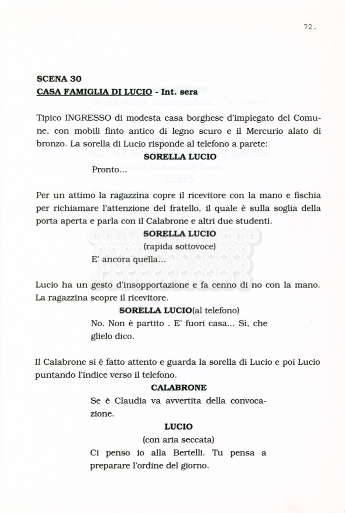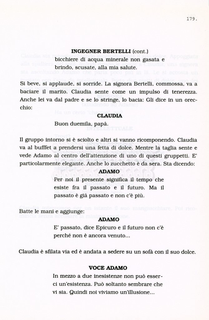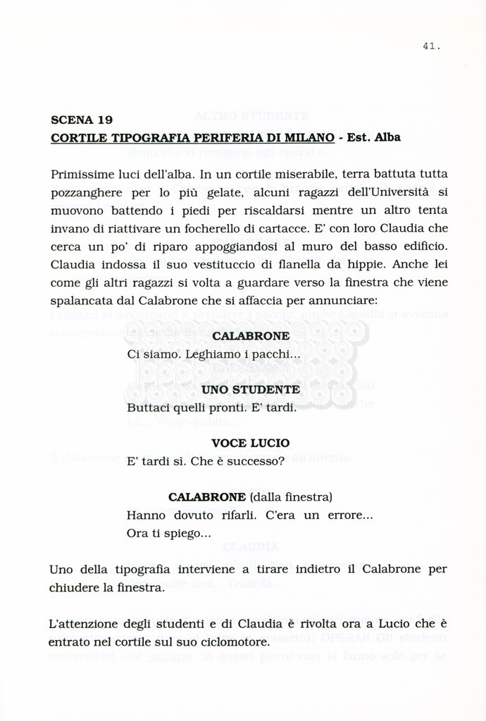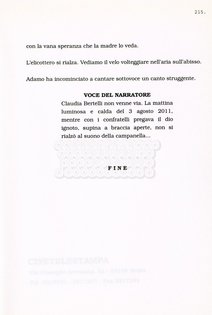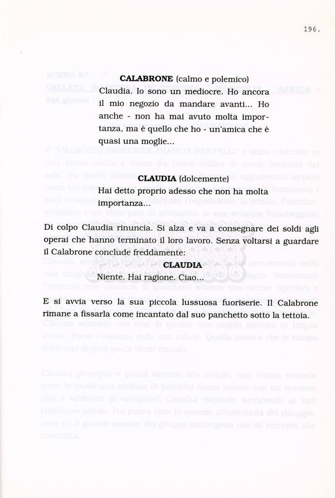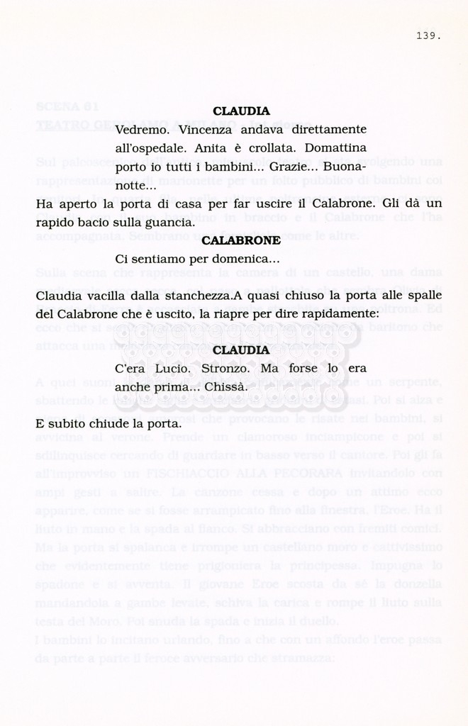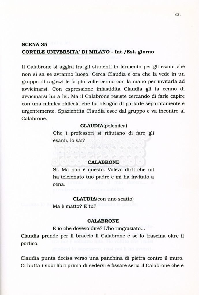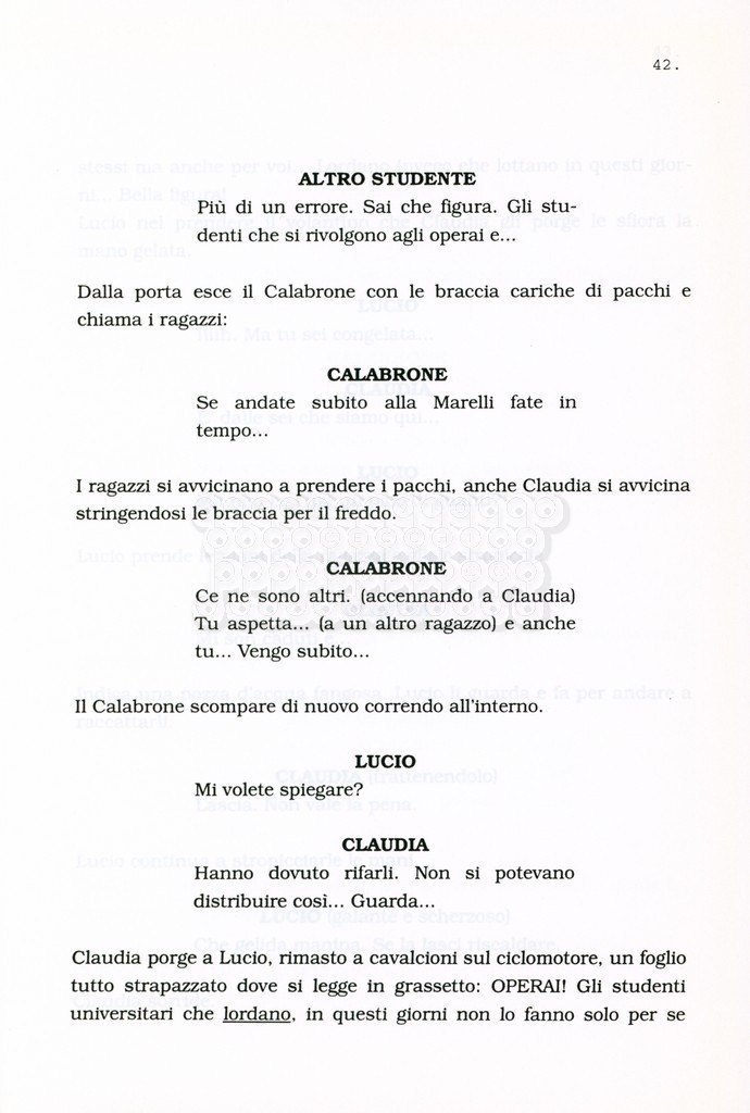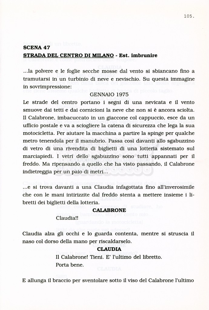 Torna alla banca dati “Facciamo paradiso (titolo provvisorio)” Documento storico Archivio Suso Cecchi d’Amico / Film realizzati / Facciamo Paradiso Ambiti e contenuto Trattasi di una sceneggiatura di Suso Cecchi d'Amico, Leo Benvenuti, Piero De Bernardi e Mario Monicelli. Sul frontespizio compare la dicitura "ultima versione". Informazioni archivistiche Cronologia: maggio 1995 Numero di ordinamento definitivo: 74 Numero di ordinamento provvisorio: 1.18 Descrizione fisica: volume pp. 215 Immagini digitalizzate Informazioni sul film titolo originale: Facciamo paradiso altri titoli: Looking for Paradise regia: Monicelli, Mario anno: 1995 paese di produzione: Italia lingua principale: italiana Documenti correlati Vai alla banca dati