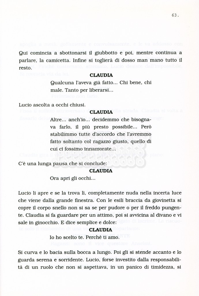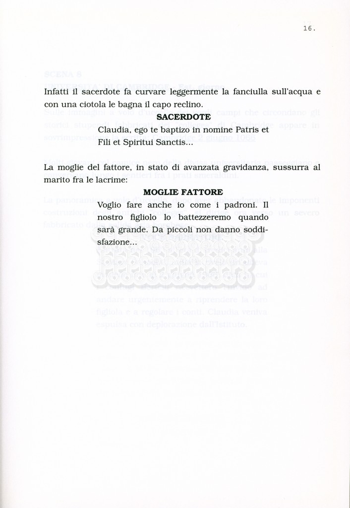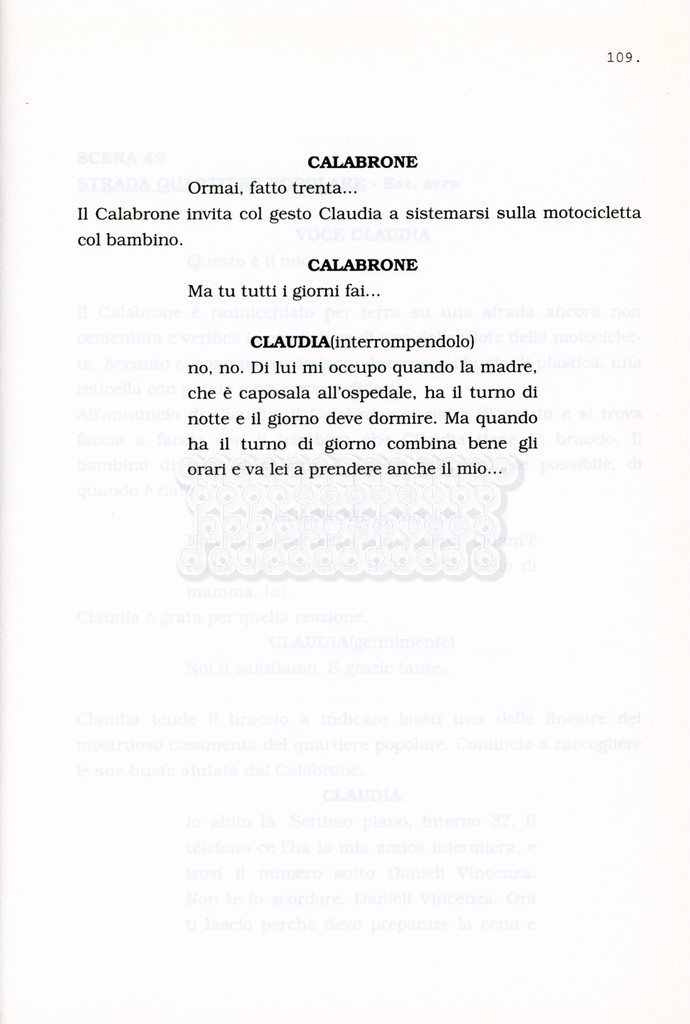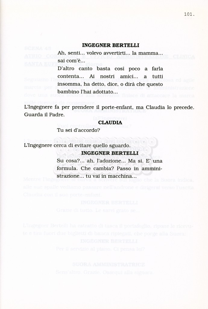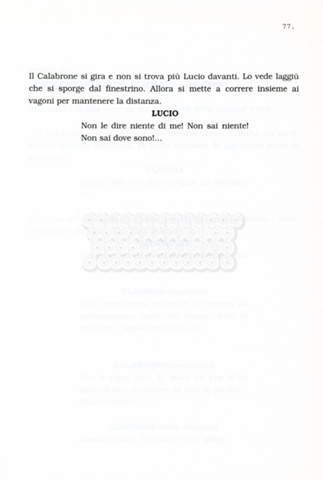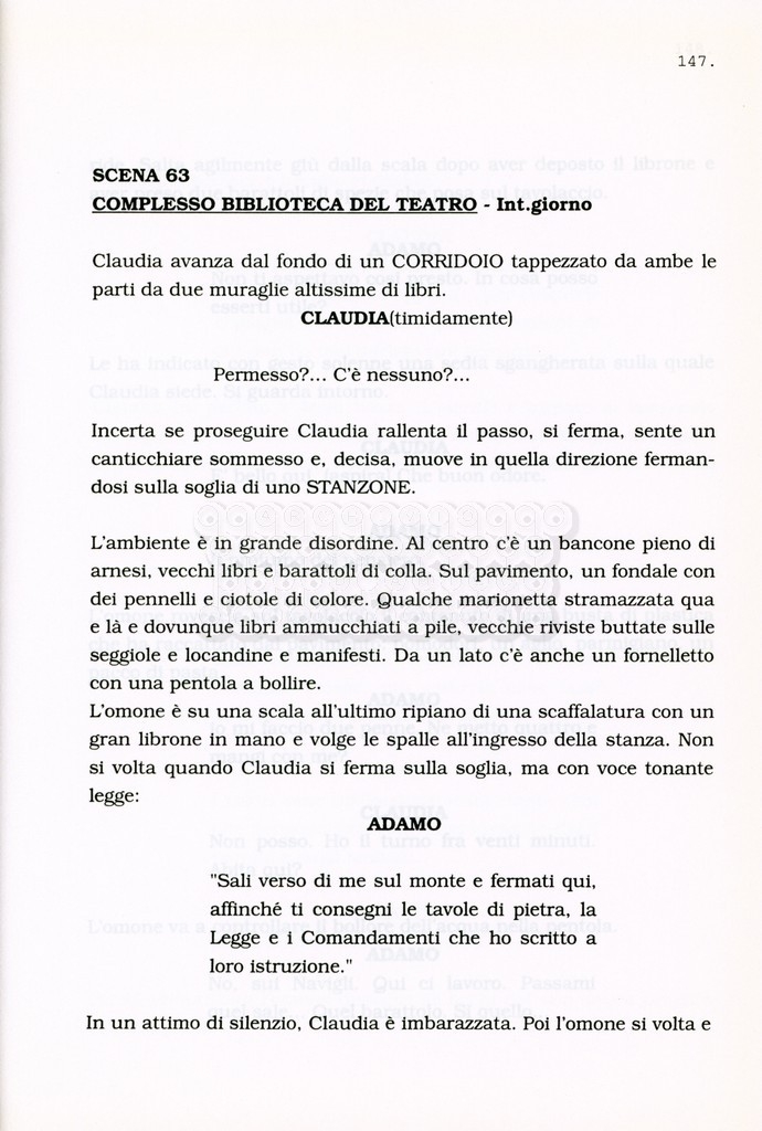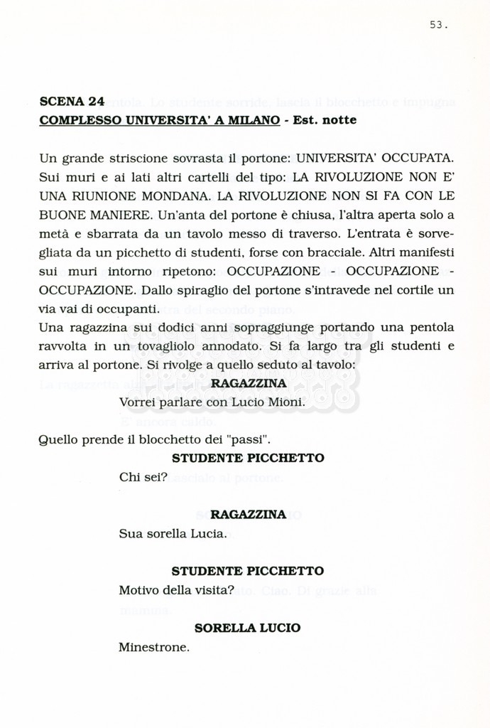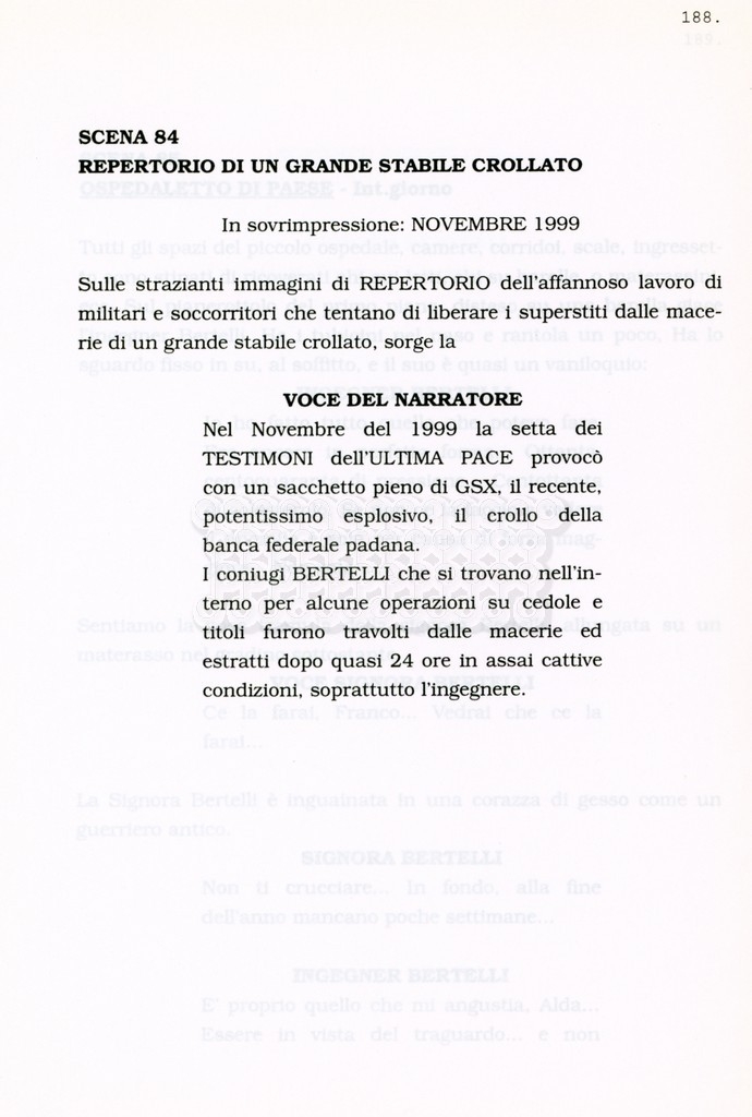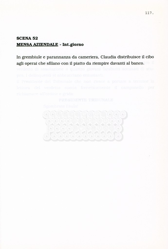 Torna alla banca dati “Facciamo paradiso (titolo provvisorio)” Documento storico Archivio Suso Cecchi d’Amico / Film realizzati / Facciamo Paradiso Ambiti e contenuto Trattasi di una sceneggiatura di Suso Cecchi d'Amico, Leo Benvenuti, Piero De Bernardi e Mario Monicelli. Sul frontespizio compare la dicitura "ultima versione". Informazioni archivistiche Cronologia: maggio 1995 Numero di ordinamento definitivo: 74 Numero di ordinamento provvisorio: 1.18 Descrizione fisica: volume pp. 215 Immagini digitalizzate Informazioni sul film titolo originale: Facciamo paradiso altri titoli: Looking for Paradise regia: Monicelli, Mario anno: 1995 paese di produzione: Italia lingua principale: italiana Documenti correlati Vai alla banca dati