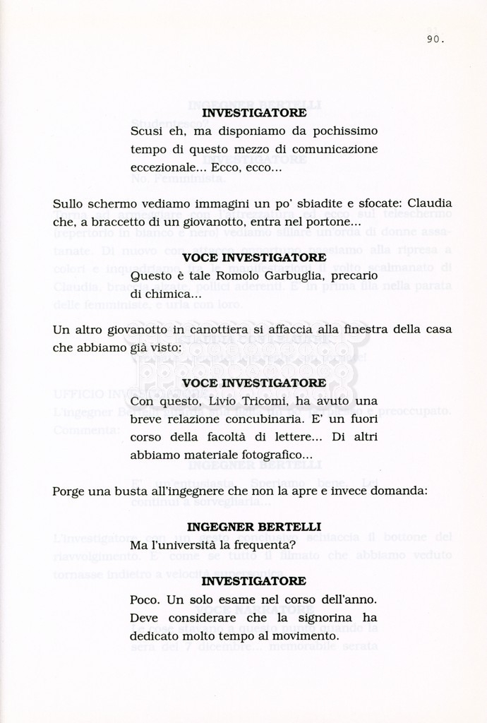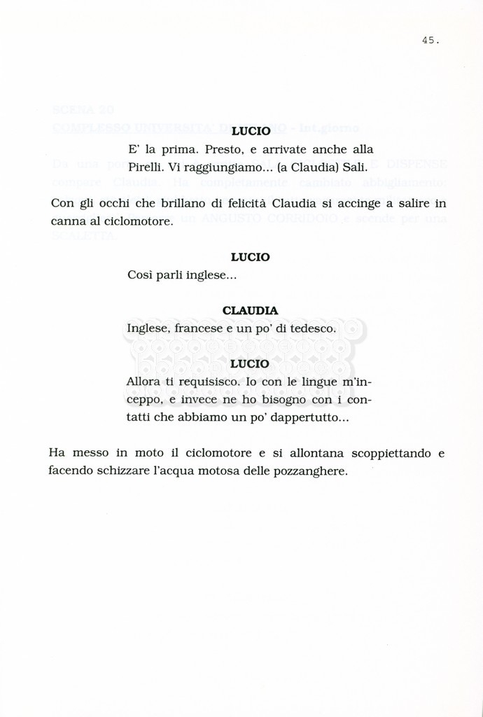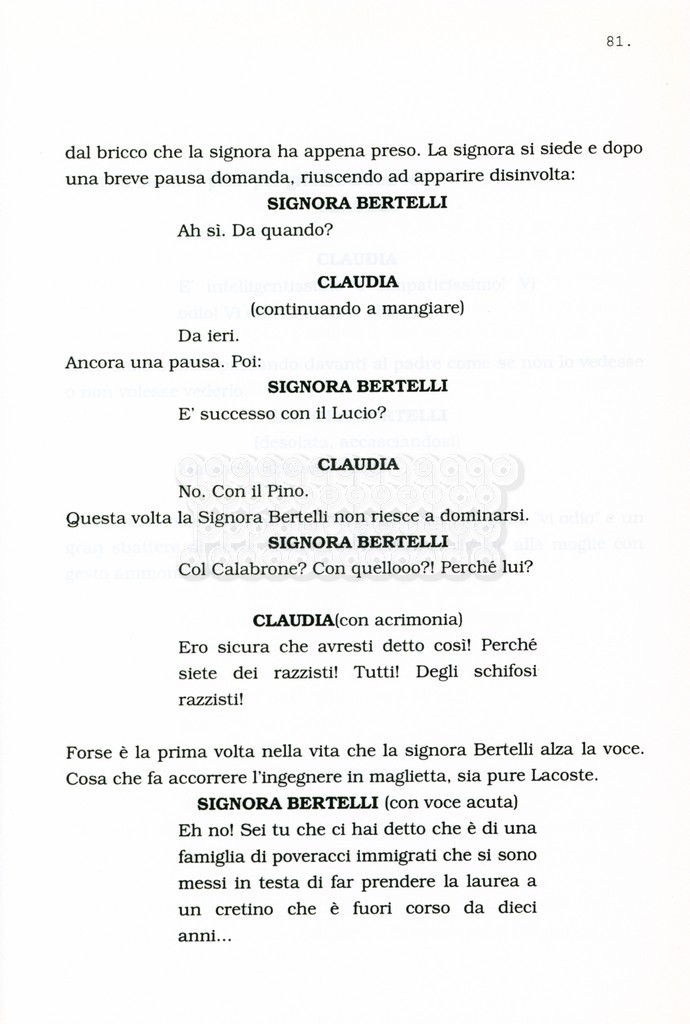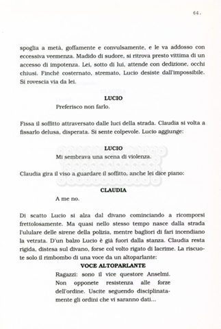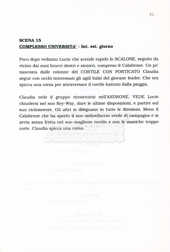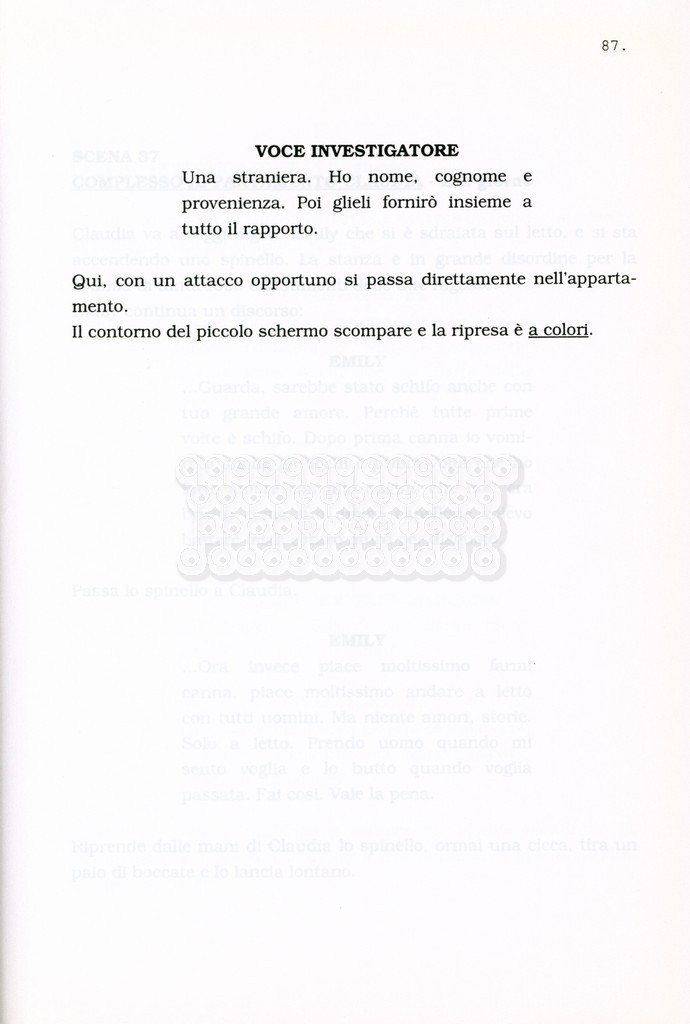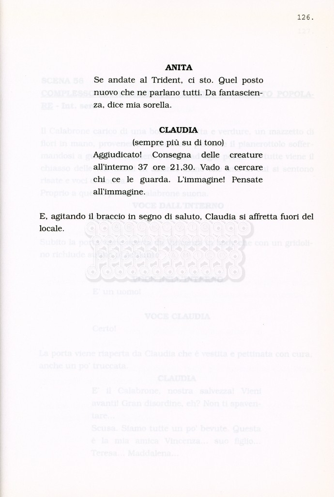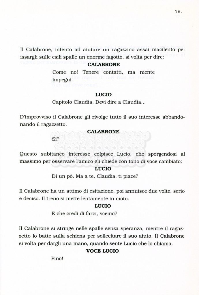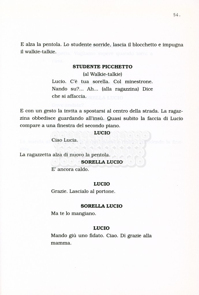 Torna alla banca dati “Facciamo paradiso (titolo provvisorio)” Documento storico Archivio Suso Cecchi d’Amico / Film realizzati / Facciamo Paradiso Ambiti e contenuto Trattasi di una sceneggiatura di Suso Cecchi d'Amico, Leo Benvenuti, Piero De Bernardi e Mario Monicelli. Sul frontespizio compare la dicitura "ultima versione". Informazioni archivistiche Cronologia: maggio 1995 Numero di ordinamento definitivo: 74 Numero di ordinamento provvisorio: 1.18 Descrizione fisica: volume pp. 215 Immagini digitalizzate Informazioni sul film titolo originale: Facciamo paradiso altri titoli: Looking for Paradise regia: Monicelli, Mario anno: 1995 paese di produzione: Italia lingua principale: italiana Documenti correlati Vai alla banca dati
