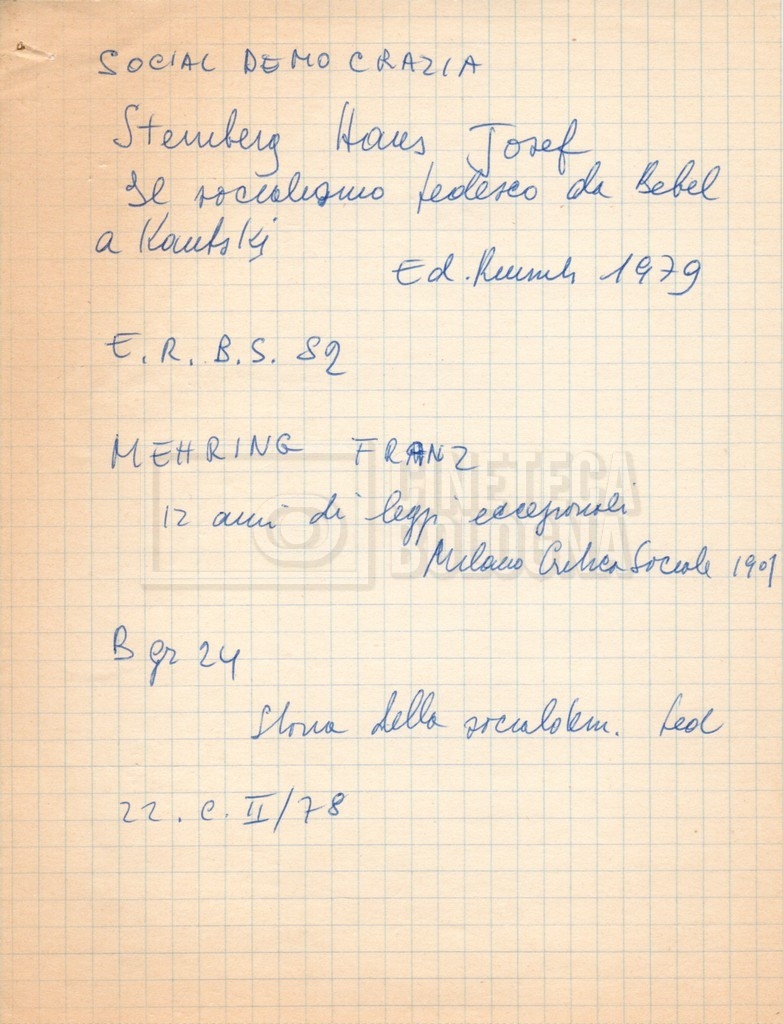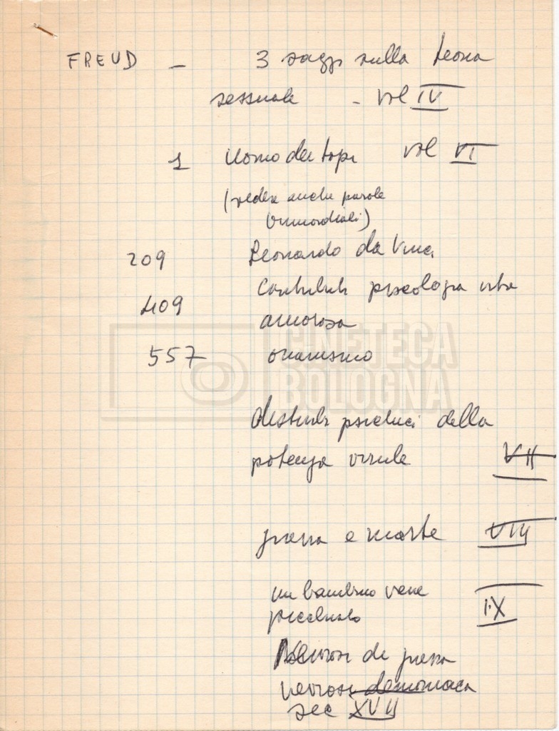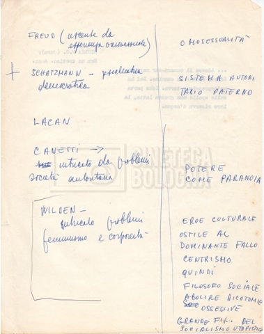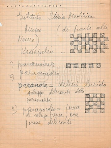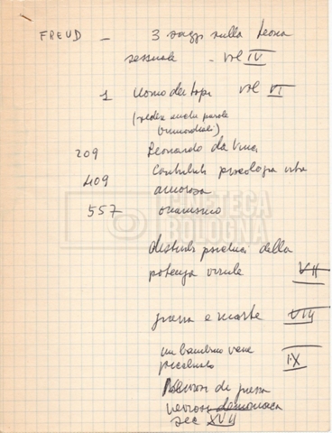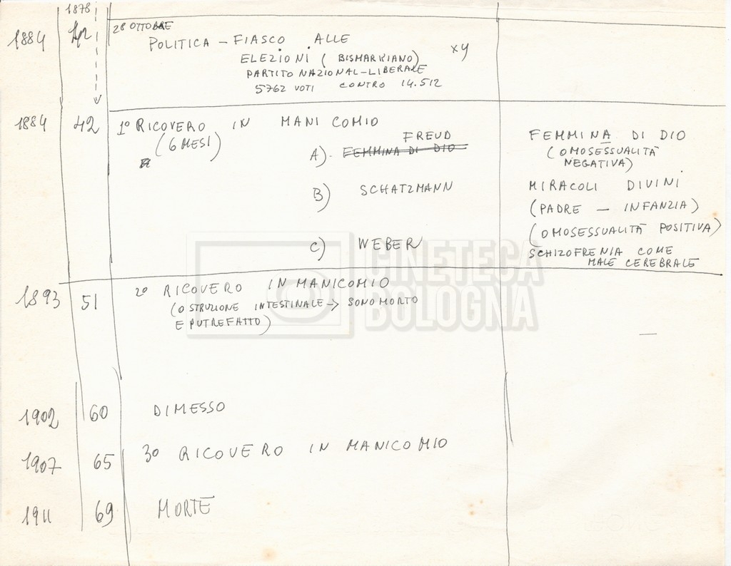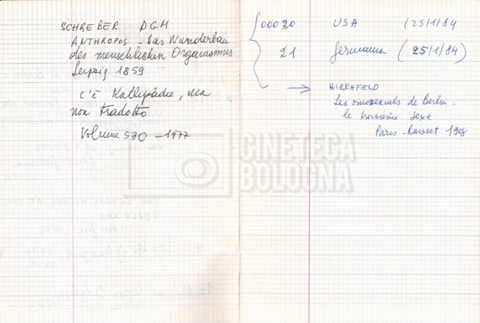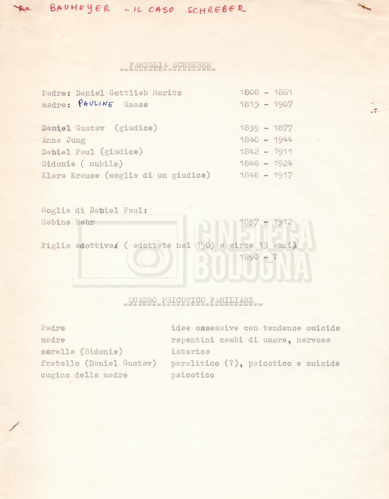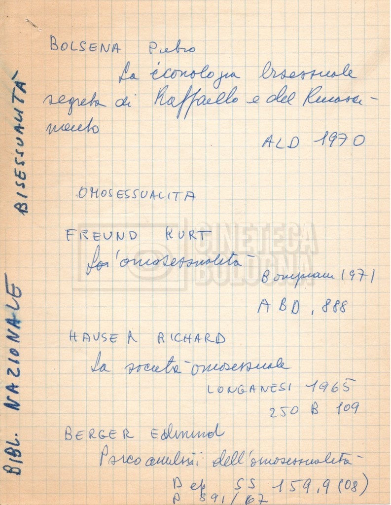 – “Bibliografia”: contiene un catalogo dei periodici della ‘Biblioteca di neurologia neurochirurgia e psichiatria dell’Università di Roma’ (1979), un quaderno sulla catalogazione dei testi riguardanti Schreber nelle biblioteche e appunti mss.