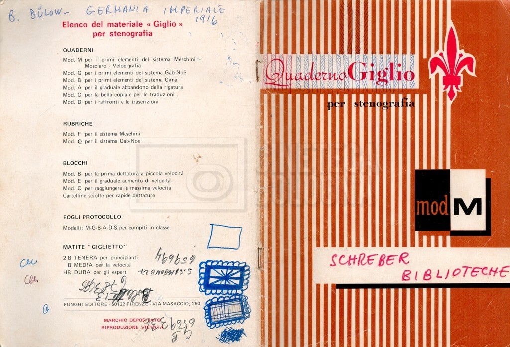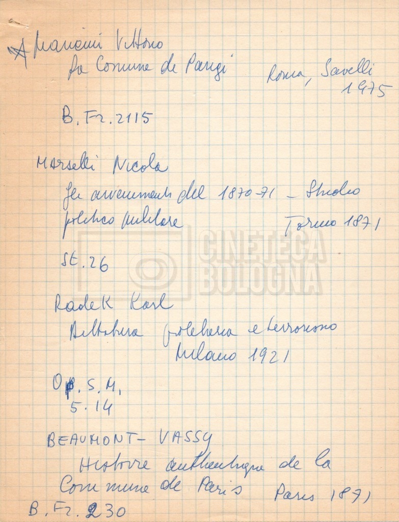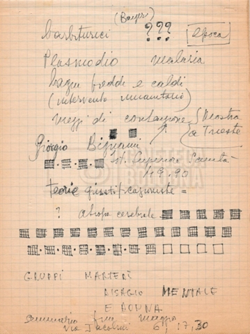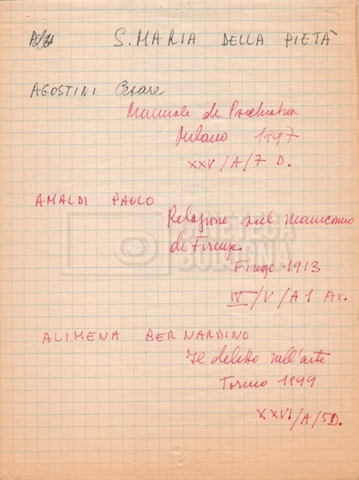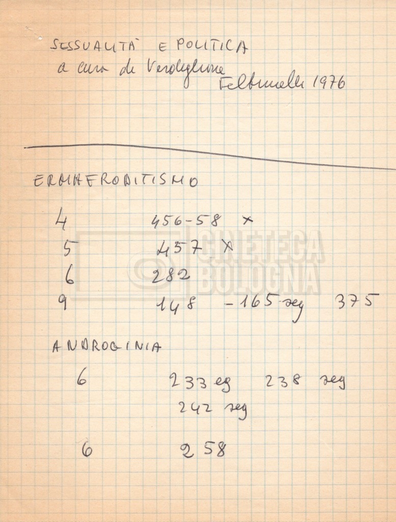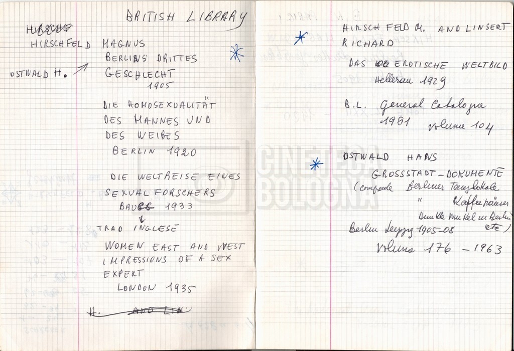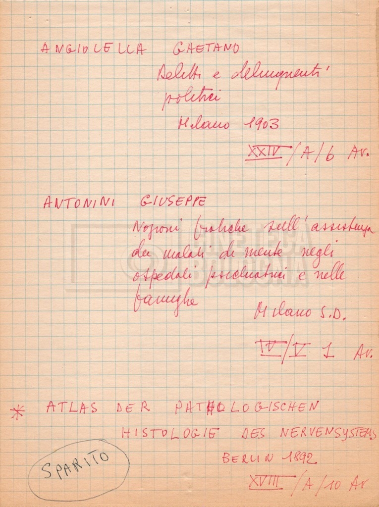 – “Bibliografia”: contiene un catalogo dei periodici della ‘Biblioteca di neurologia neurochirurgia e psichiatria dell’Università di Roma’ (1979), un quaderno sulla catalogazione dei testi riguardanti Schreber nelle biblioteche e appunti mss.