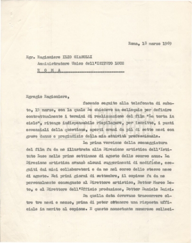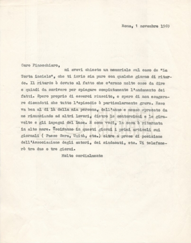 “Corrispondenza con l’Istituto Luce 1969-1973”