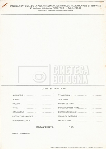 Un’altra parte della documentazione, sempre legata alla produzione cinematografica, ma meno a singole opere e progetti, consiste in modulistica non compilata per preventivi, ordini del giorno, contratti di appalto, listini prezzi e brochures di materiale tecnico, appunti e materiali per la realizzazione di riprese aeree, l’affitto di animali, l’utilizzo di specifiche macchine da presa, i costi di materiali di consumo e di servizi di post produzione. Sono presenti anche alcuni documenti relativi a film a cui Mara Blasetti non ha partecipato, come elenchi del cast tecnico e artistico, budget e preventivi, probabilmente raccolti e conservati per motivi di interesse lavorativo o per conoscenza.