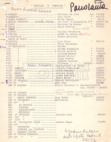 Attraverso l’intervento di riordinamento e inventariazione si è voluto quindi mantenere intatto l’ordinamento storico del fondo, ovvero l’ultimo identificabile, e allo stesso tempo consolidare l’organizzazione delle carte ritenuta preminente, cioè l’aggregazione delle unità archivistiche riguardanti i singoli film. Per fare questo è stato necessario costituire in fascicoli la documentazione relativa alle singole opere, sia quella inizialmente catalogata genericamente come “cast e unit list”, che era già suddivisa con l’utilizzo di graffette, come detto sopra, sia quella conservata nei fascicoli miscellanei. Di questa prima organizzazione del materiale si può ancora trovare traccia nei numeri di ordinamento provvisorio, che proprio per il loro valore di testimonianza sono stati mantenuti a fianco di quelli definitivi (Le “cast e unit list” segnate col numero 4.1.A e 4.1.B, la documentazione miscellanea segnata col numero 6.1.A, 7.1.A, 11.1.A, 11.2.A, 11.2.B); anche l’utilizzo ripetitivo della denominazione dei fascicoli “cast e unit list” vuole essere un rimando alla definizione data da Mara Blasetti nel descrivere le carte. Per illustrare la struttura archivistica sono state perciò utilizzate delle schede sottoserie col titolo dei singoli film o progetti, mantenendo la distinzione tra realizzati e non realizzati. Inoltre, quando presenti, i soggetti e le sceneggiature sono stati fatti confluire nelle sottoserie dedicate ai singoli film a cui Mara Blasetti ha lavorato, mentre tutte le altre sceneggiature rimanenti sono state descritte unitamente come materiali avuti solamente in visione. Anche di questa prima organizzazione del materiale si può ancora trovare traccia nei numeri di ordinamento provvisorio (Le sceneggiature sono segnate con la lettera M a cui segue un numero). Infine, è stato costituito un fascicolo con la corrispondenza trovata nei fascicoli miscellanei, di cui sopra, non attribuibile ad alcun film.