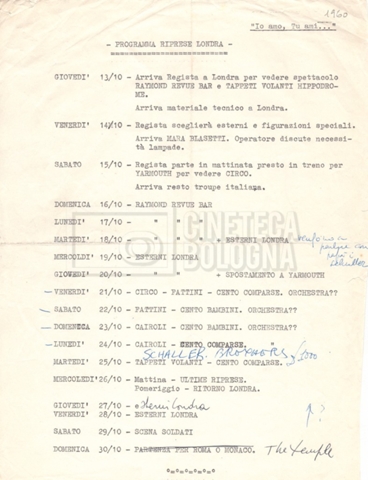 Il complesso lavoro svolto da Mara Blasetti di organizzazione di una produzione cinematografica – in quella miriade di ambiti, ruoli e settori che concorrono nella realizzazione di un film – trova un vivace rispecchiamento nei documenti maggiormente presenti nel fondo: preventivi di spese, budget e rendiconti redatti da Mara Blasetti sono quelli maggiormente relativi all’aspetto contabile di una produzione; elenchi del cast tecnico e artistico, ordini del giorno, programmi delle riprese, relazioni sul girato, raccomandazioni per il viaggio, storyboard, elenchi di strutture ricettive e di servizi sui luoghi delle riprese, riguardano invece l’organizzazione più concreta e giornaliera delle riprese; elenchi di location, appunti sui sopralluoghi, contratti di attori e comparse, elenchi di materiale tecnico necessario per riprese ed illuminazione, preventivi di spesa per pellicole e lavori di post produzione, relazioni e resoconti sulla costruzione della scenografia, sono legati invece ad un aspetto organizzativo complessivo, a tutto ciò che è necessario valutare e scegliere per riuscire a girare e a quello che serve successivamente alle riprese; sceneggiature e trattamenti possono essere visti, infine, come veri e propri strumenti di lavoro dato che sono solitamente appuntati per comprendere cosa serva in ogni scena, dall’abbigliamento, agli oggetti, alla luce necessaria per le riprese. Questa documentazione permette di addentrarsi nelle vicende produttive di numerose pellicole, sia per quelle che sono state realizzate, sia per una parte di queste che o non sono state realizzate o che hanno avuto complicate vicende produttive che hanno portato al cambiamento del progetto e al termine della collaborazione di Mara Blasetti.