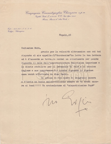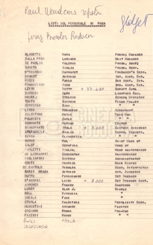 Un’altra parte della documentazione, sempre legata alla produzione cinematografica, ma meno a singole opere e progetti, consiste in modulistica non compilata per preventivi, ordini del giorno, contratti di appalto, listini prezzi e brochures di materiale tecnico, appunti e materiali per la realizzazione di riprese aeree, l’affitto di animali, l’utilizzo di specifiche macchine da presa, i costi di materiali di consumo e di servizi di post produzione. Sono presenti anche alcuni documenti relativi a film a cui Mara Blasetti non ha partecipato, come elenchi del cast tecnico e artistico, budget e preventivi, probabilmente raccolti e conservati per motivi di interesse lavorativo o per conoscenza.