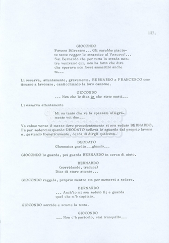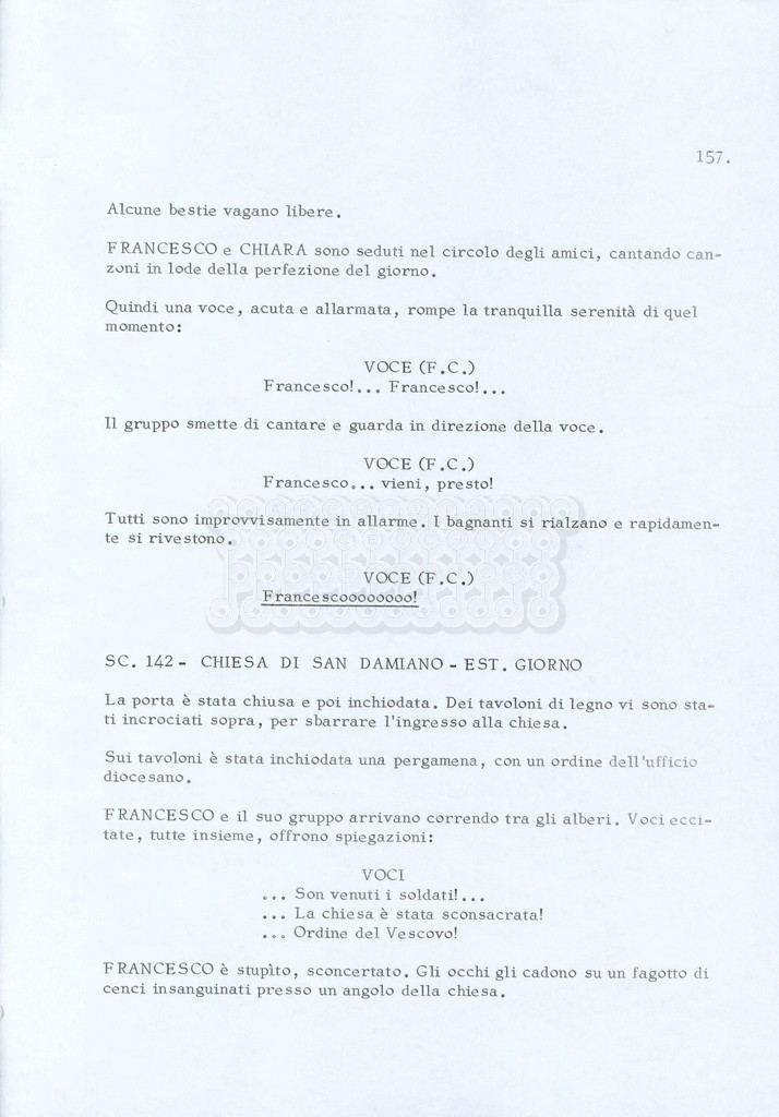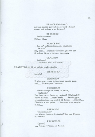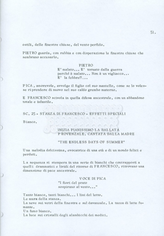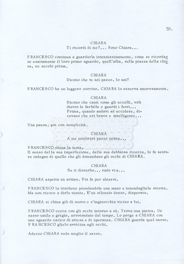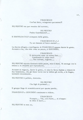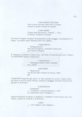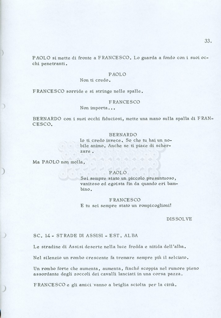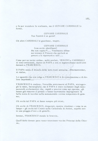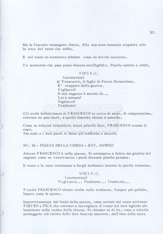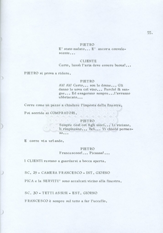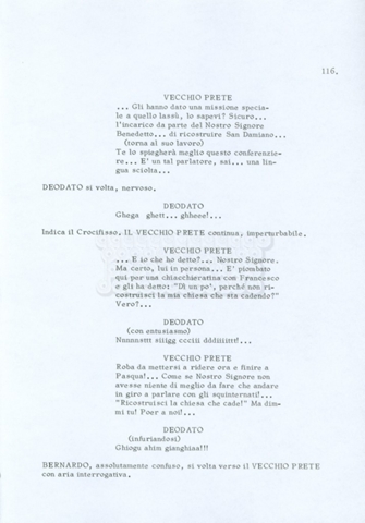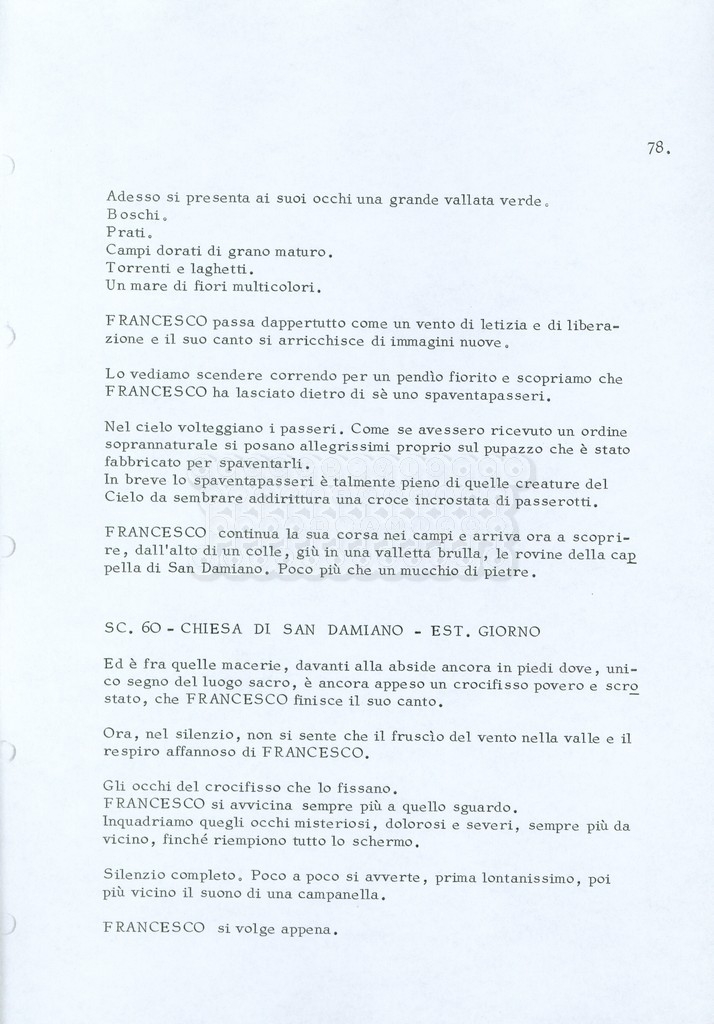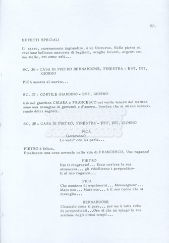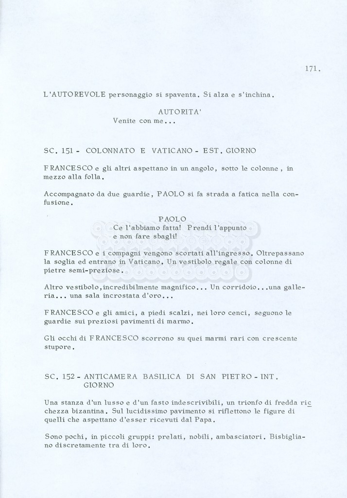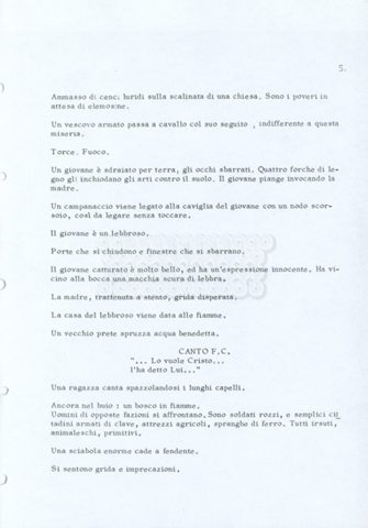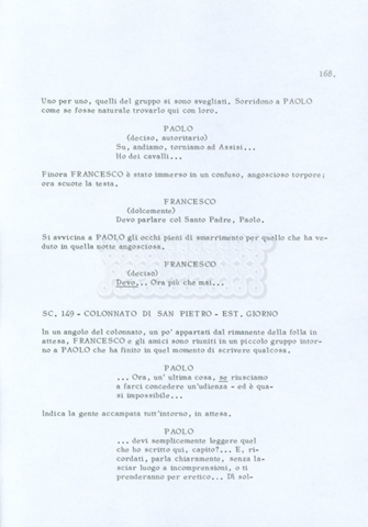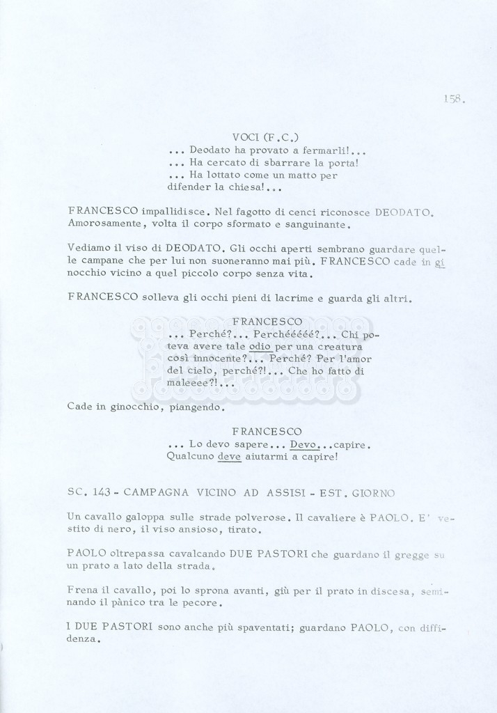 Torna alla banca dati “Fratello sole… sorella luna…” Documento storico Archivio Suso Cecchi d’Amico / Film realizzati / Fratello sole sorella luna Ambiti e contenuto Trattasi di una sceneggiatura di Suso Cecchi d’Amico, Lina Wertmüller, Franco Zeffirelli e i dialoghi di Kenneth Ross. Informazioni archivistiche Cronologia: novembre 1970 Numero di ordinamento definitivo: 23 Numero di ordinamento provvisorio: 1.22 Descrizione fisica: volume pp. 188 Immagini digitalizzate Informazioni sul film titolo originale: Fratello sole, sorella luna altri titoli: Brother Sun, Sister Moon regia: Zeffirelli, Franco (Pseudonimo) anno: 1972 paese di produzione: Italia – Regno Unito lingua principale: italiana altre lingue: inglese Documenti correlati Vai alla banca dati DOCUMENTO STORICO Fratello sole…sorella luna