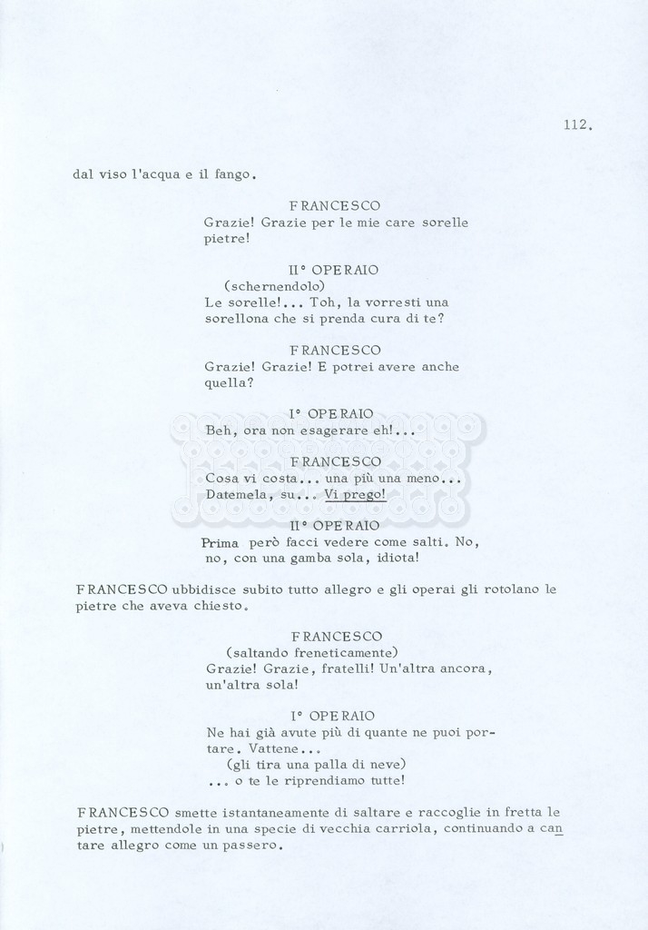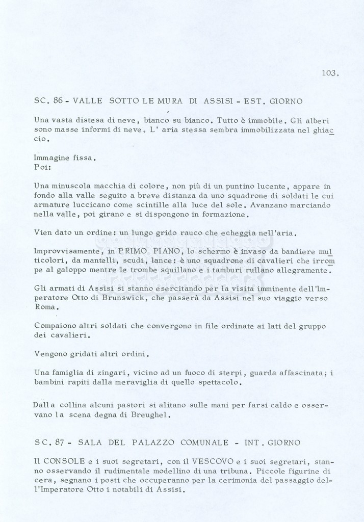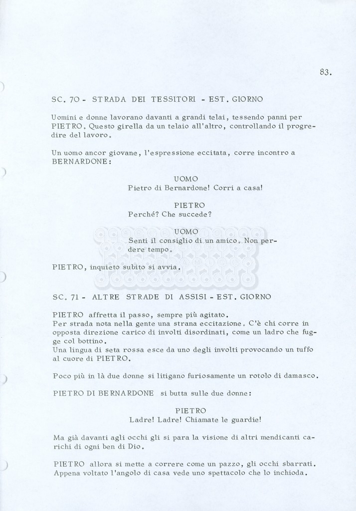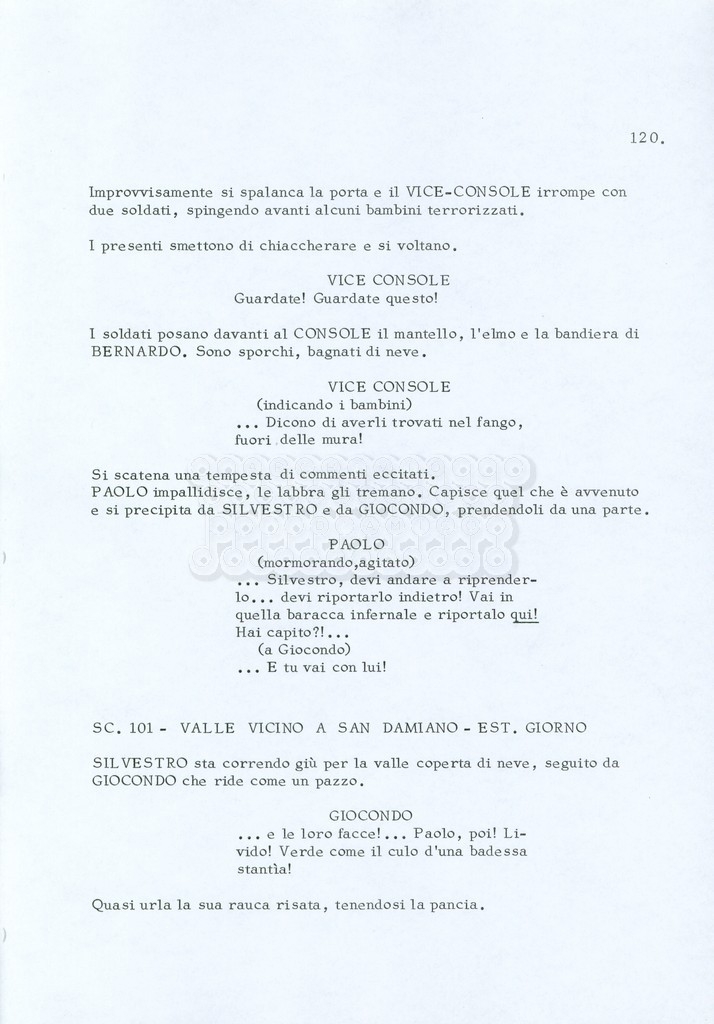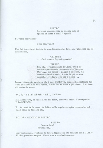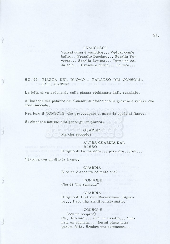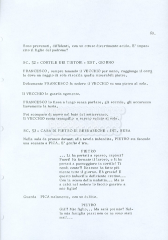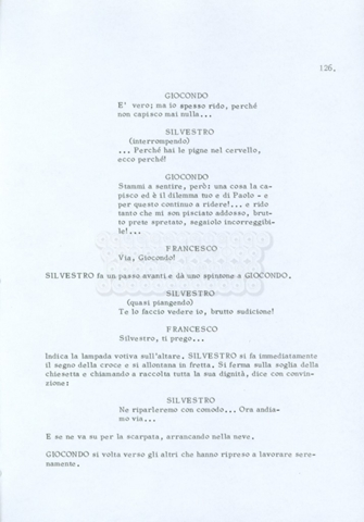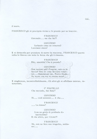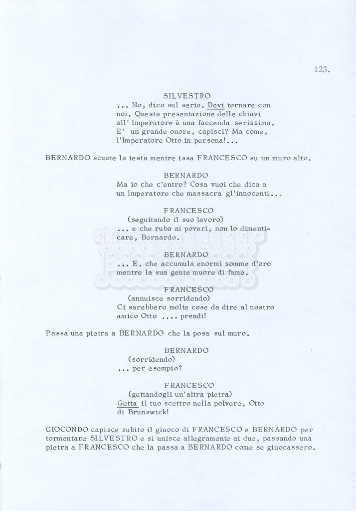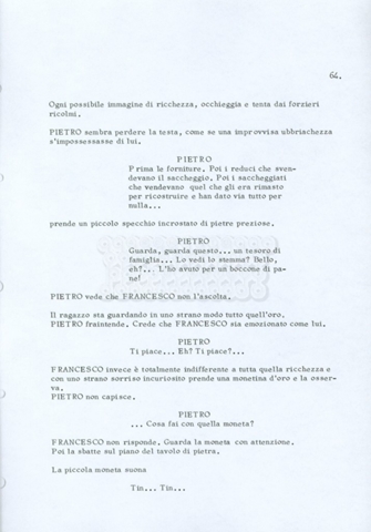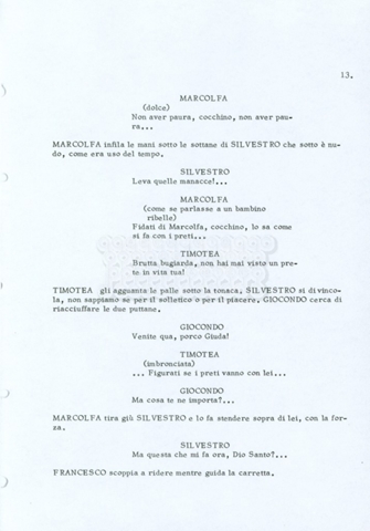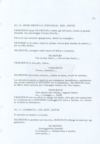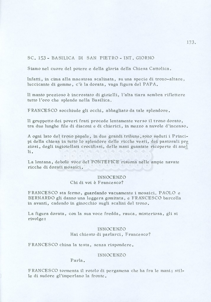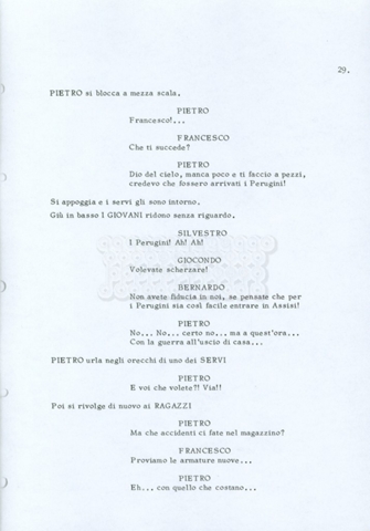 Torna alla banca dati “Fratello sole… sorella luna…” Documento storico Archivio Suso Cecchi d’Amico / Film realizzati / Fratello sole sorella luna Ambiti e contenuto Trattasi di una sceneggiatura di Suso Cecchi d’Amico, Lina Wertmüller, Franco Zeffirelli e i dialoghi di Kenneth Ross. Informazioni archivistiche Cronologia: novembre 1970 Numero di ordinamento definitivo: 23 Numero di ordinamento provvisorio: 1.22 Descrizione fisica: volume pp. 188 Immagini digitalizzate Informazioni sul film titolo originale: Fratello sole, sorella luna altri titoli: Brother Sun, Sister Moon regia: Zeffirelli, Franco (Pseudonimo) anno: 1972 paese di produzione: Italia – Regno Unito lingua principale: italiana altre lingue: inglese Documenti correlati Vai alla banca dati DOCUMENTO STORICO Fratello sole…sorella luna