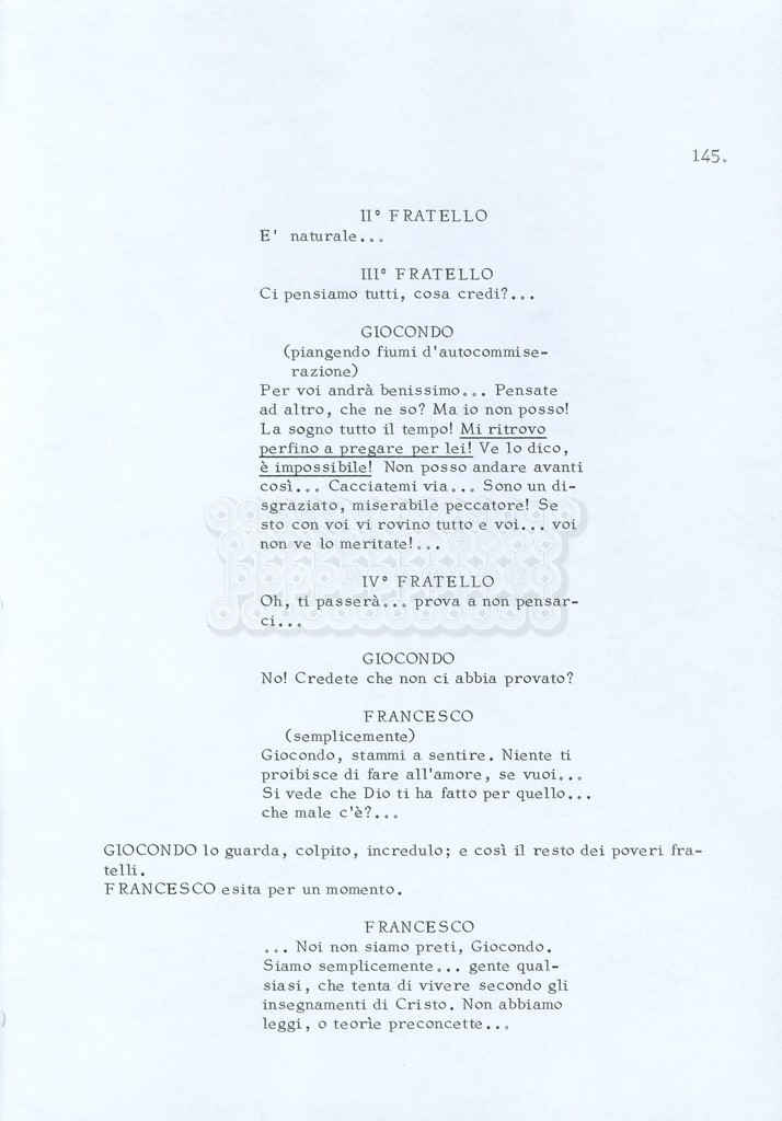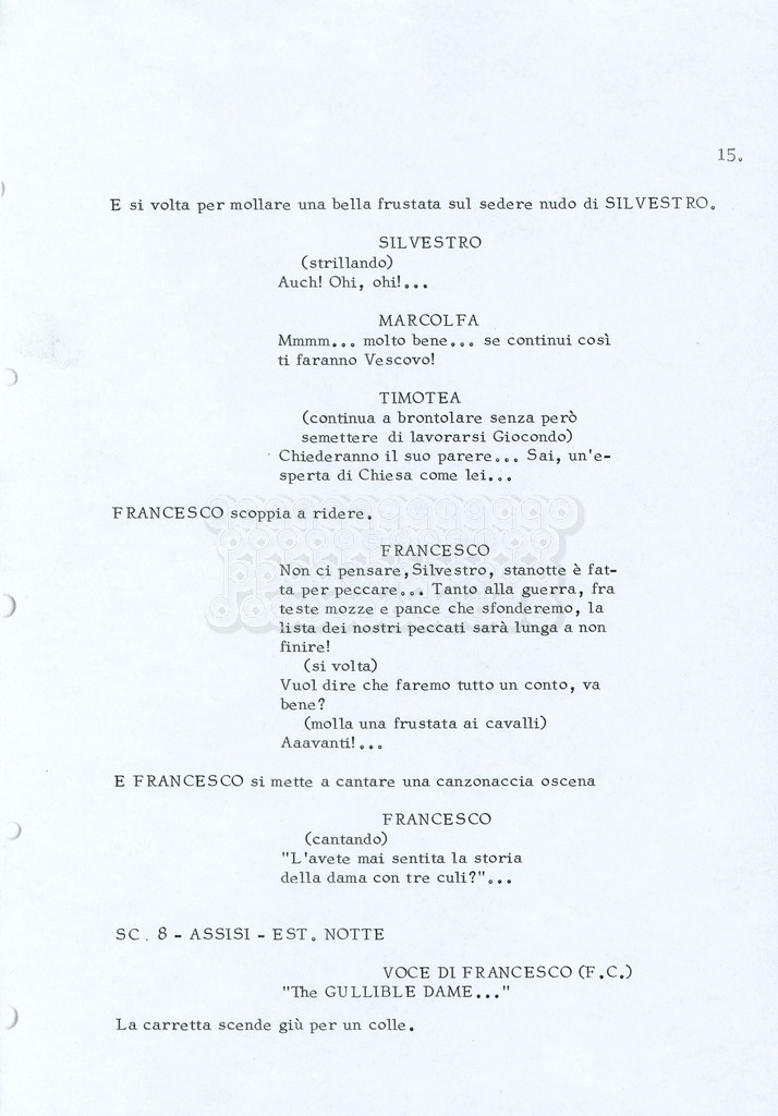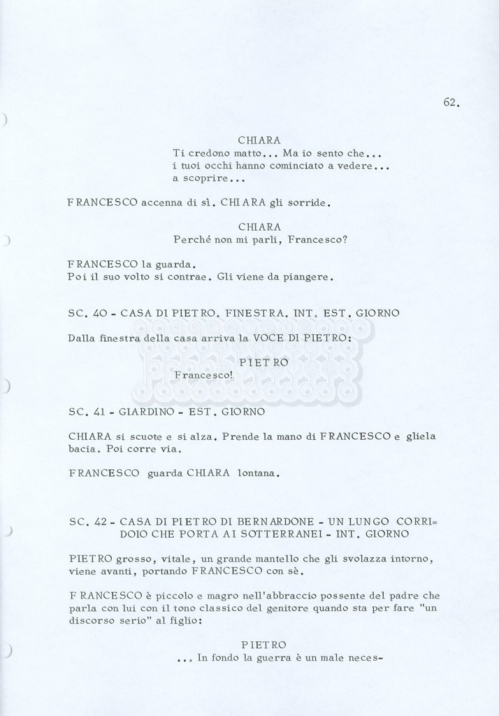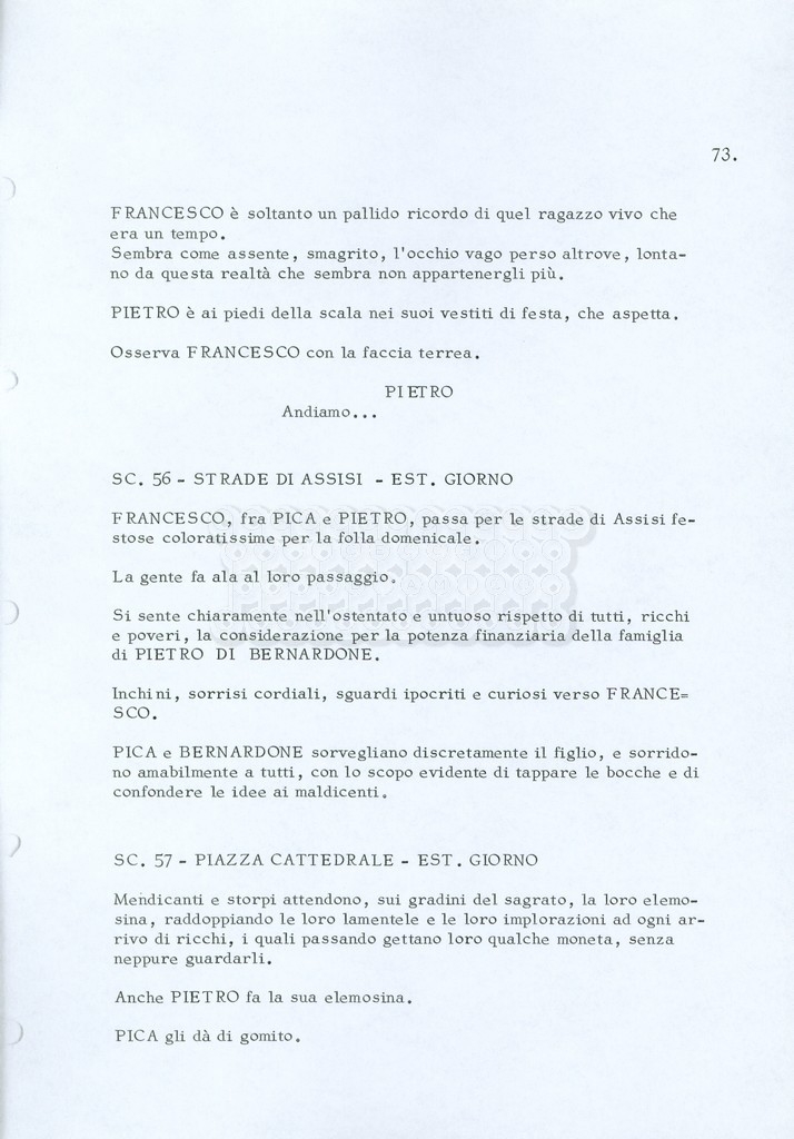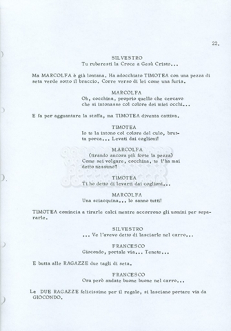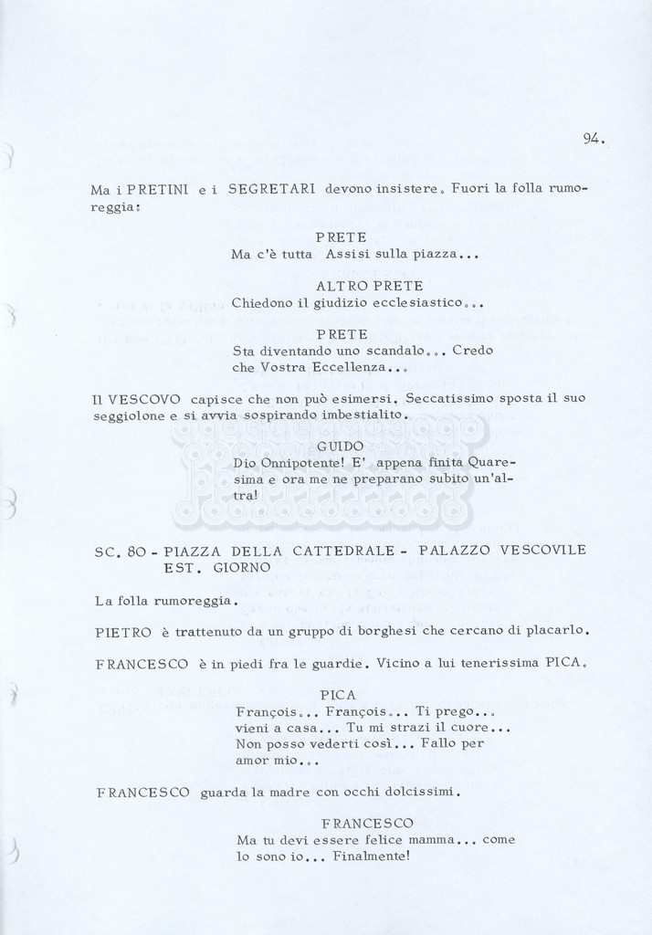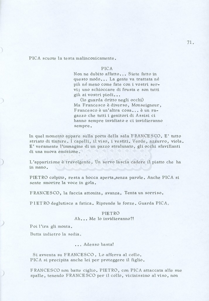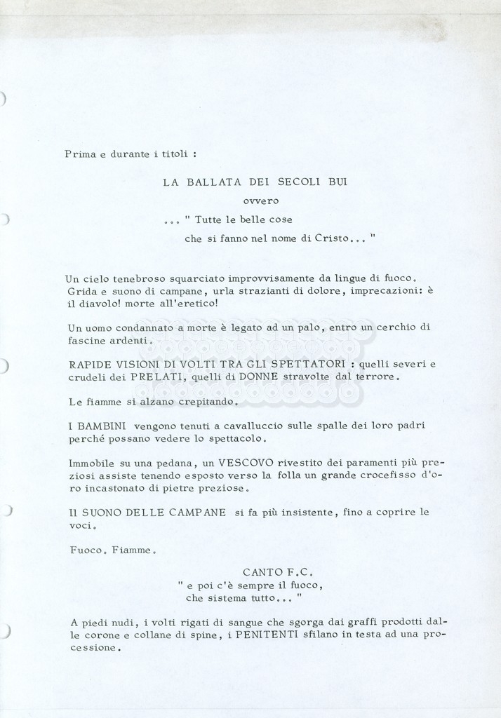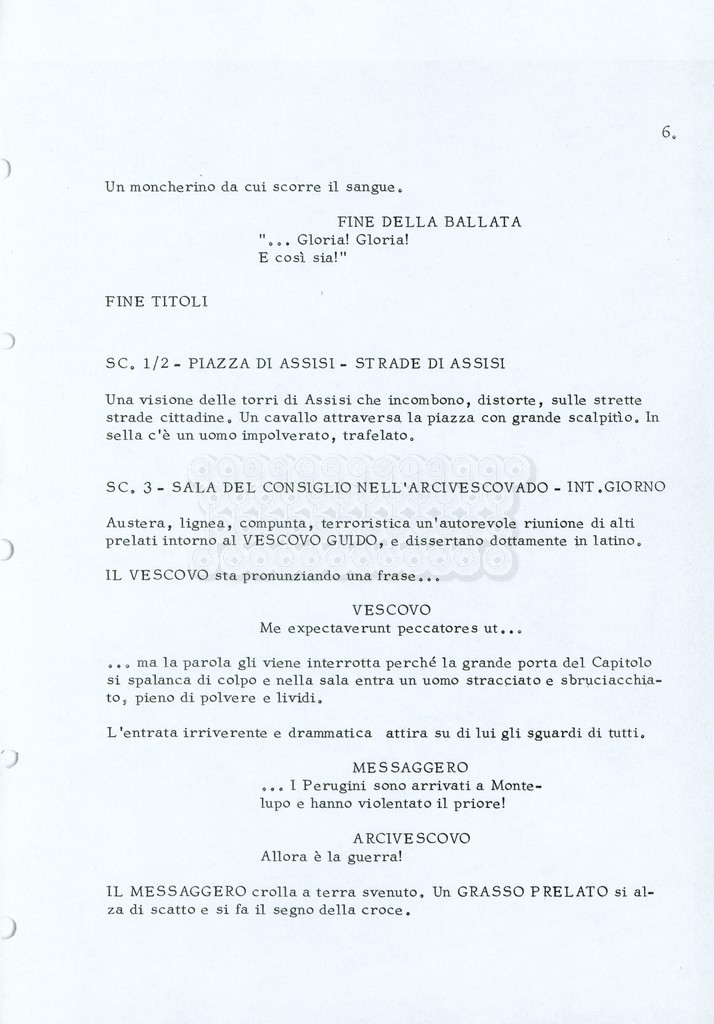 Torna alla banca dati “Fratello sole… sorella luna…” Documento storico Archivio Suso Cecchi d’Amico / Film realizzati / Fratello sole sorella luna Ambiti e contenuto Trattasi di una sceneggiatura di Suso Cecchi d’Amico, Lina Wertmüller, Franco Zeffirelli e i dialoghi di Kenneth Ross. Informazioni archivistiche Cronologia: novembre 1970 Numero di ordinamento definitivo: 23 Numero di ordinamento provvisorio: 1.22 Descrizione fisica: volume pp. 188 Immagini digitalizzate Informazioni sul film titolo originale: Fratello sole, sorella luna altri titoli: Brother Sun, Sister Moon regia: Zeffirelli, Franco (Pseudonimo) anno: 1972 paese di produzione: Italia – Regno Unito lingua principale: italiana altre lingue: inglese Documenti correlati Vai alla banca dati DOCUMENTO STORICO Fratello sole…sorella luna