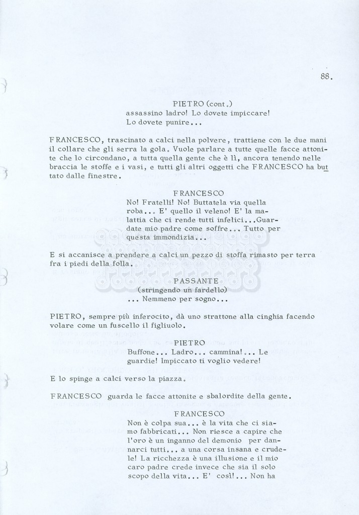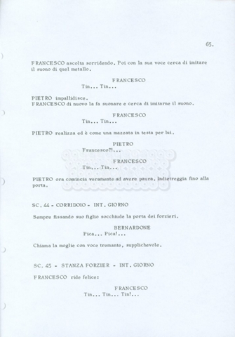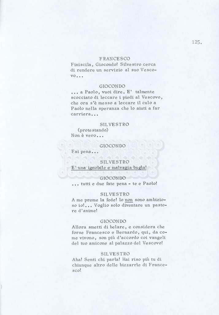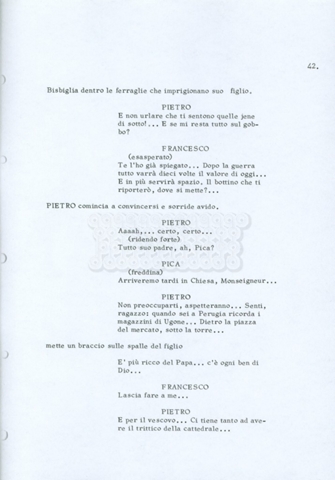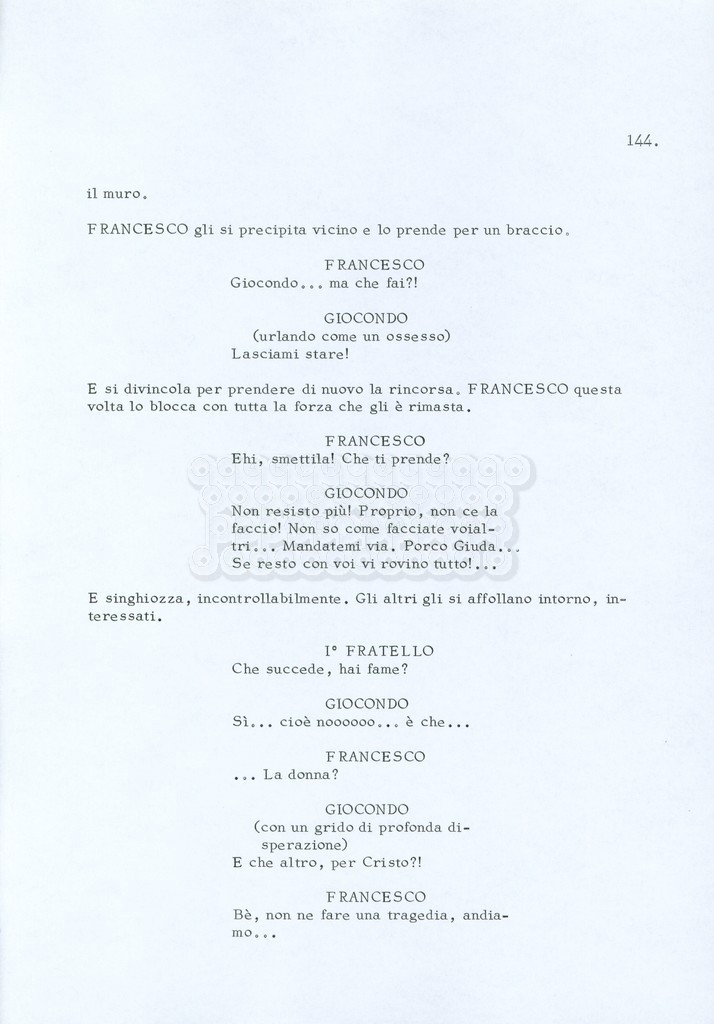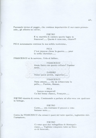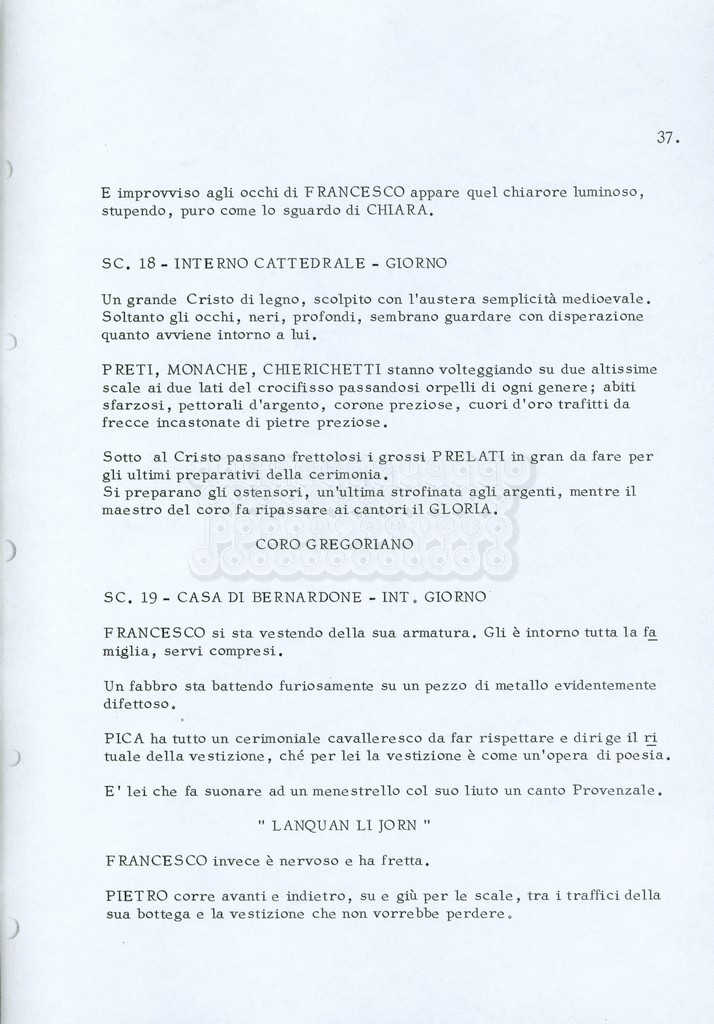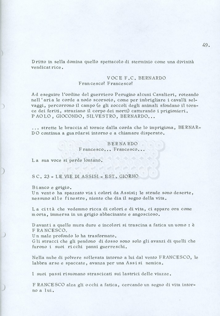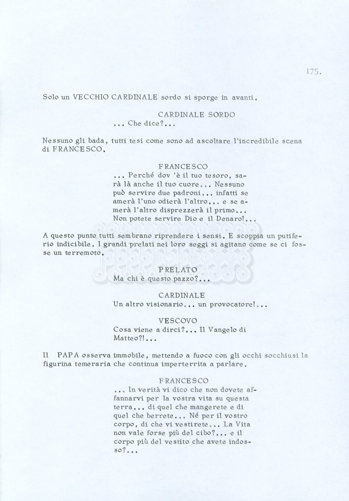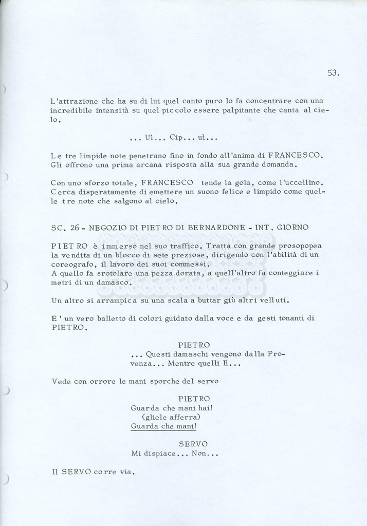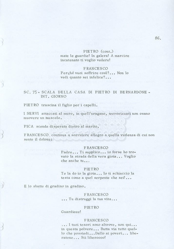 Torna alla banca dati “Fratello sole… sorella luna…” Documento storico Archivio Suso Cecchi d’Amico / Film realizzati / Fratello sole sorella luna Ambiti e contenuto Trattasi di una sceneggiatura di Suso Cecchi d’Amico, Lina Wertmüller, Franco Zeffirelli e i dialoghi di Kenneth Ross. Informazioni archivistiche Cronologia: novembre 1970 Numero di ordinamento definitivo: 23 Numero di ordinamento provvisorio: 1.22 Descrizione fisica: volume pp. 188 Immagini digitalizzate Informazioni sul film titolo originale: Fratello sole, sorella luna altri titoli: Brother Sun, Sister Moon regia: Zeffirelli, Franco (Pseudonimo) anno: 1972 paese di produzione: Italia – Regno Unito lingua principale: italiana altre lingue: inglese Documenti correlati Vai alla banca dati DOCUMENTO STORICO Fratello sole…sorella luna